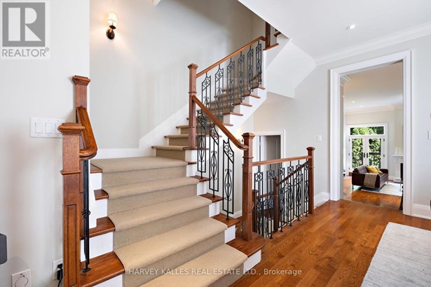 Beautiful, spacious Lorne Rose designed home, 4 Large Bedrooms, 5 Baths, Bsmt on Grade Walk Out , 3 Car Parking on a 219' Deep Lot with spectacular backyard deck & terrace, professionally Landscaped with irrigation sys. Steps from Forest Hill Village and St Clair West subway station. Within close walking distance to the finest schools, Bishop Strachan School, Upper Canada College, Forest Hill Public School, Forest Hill Collegiate & St. Michael's College. Spacious dream sanctuary in the heart of midtown Toronto. Features Include: Large principal Rms w/Great Flow & Areas for Entertaining. On a Lush 219 Ft Lot. Foyer with 13'3 ft ceiling, Double Closet, Stone Floor & Pot Lights. Combined Living & Dining Rms, both with Silk Curtains, Sheers & Oversized Windows, plus classic Crown Mouldings Hrdwd Flooring. Oversized Eat-In Kitchen has a Franke Corner Double sink w/extendable Vegetable Spray, a Large Island w/Granite Countertops, Plenty of Cupboard Space, Plus a Wine Rack. Combined w/Family Rm, the Soaring 12 ft Ceilings. Featuring Hrdwd Floors, Crown Mouldings, Gas Fireplace & double Glass doors opening to a balcony which overlooks the Deep Backyard, w/Stone Terrace & private deck to the East. Powder rm is a few steps off the Ground flr Upstairs, Primary Bdrm is 19 x 19 Feet, w/9 foot Ceilings, a Walk-in Closet, and 2 Picture windows, overlooking the backyard. Second Bdrm is almost 19 ft by over 12 Ft, with Oversized West-facing (sunset) Windows & hardwood Flooring, with a 4 Pc Bath. On the Third Flr, you will find 2 additional Bdrms w/Broadloomed Flrs, one with an East Facing Balcony for Morning Sun, other w/Large Walk-in closet. These bedrooms share a 4 pc bath w/skylight. Lower Level w/Massive Recreation rm On Grade, Walk out from 2 Double Glass Doors to an over-sized Stone Terrace. 3 Wall units, Broadloomed flr, Gas fireplace, Storage, 2 Pc bath & Laundry. Single Garage + 2 car pkg on drive. Across from park & trails, 5 min walk to Subway. Exceptional Opportunity!
