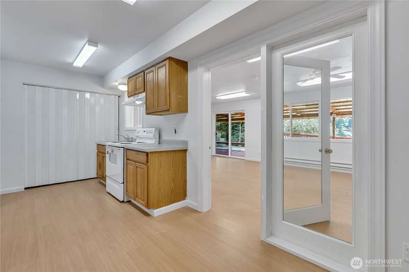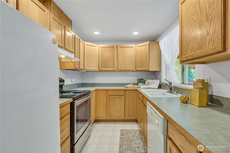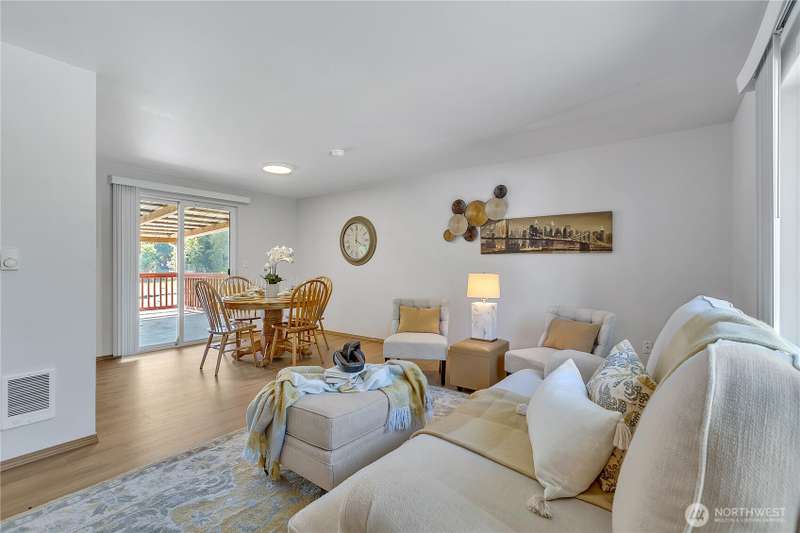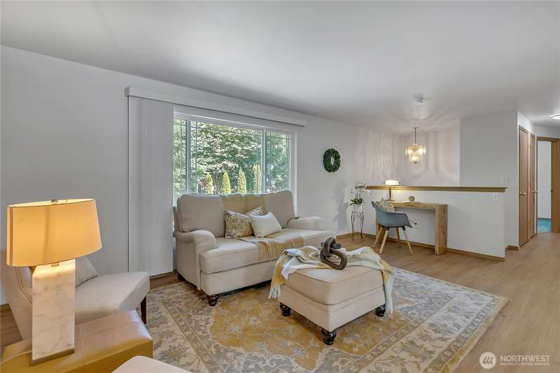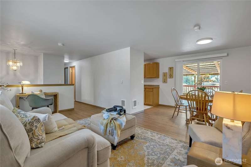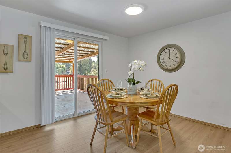This 5bdrm 2bath home is nestled on a private & secluded cul-de-sac. Come sit on the oversized multilevel covered deck & sip your morning coffee while watching wildlife. This home backs to 75ft of waterfront & is one of the best lots on the lake to enjoy, paddle boarding, kayaking & fishing off the dock. Main level offers 2 bdrms & 1 full bath, kitchen, din & liv rm. Lower level features separate living space w/2nd kitchen, family rm, 3 additional bdrms & upgraded bath w/tile floors & shower. Separate entry w/ramp perfect set up for adult family home, multigen liv, small business/day care etc. Newer H20 heater, roof, septic. Great location & easy access to hwy 410. Close to bus lines, dr offices, dining & shopping. Award winning Sumner SD.