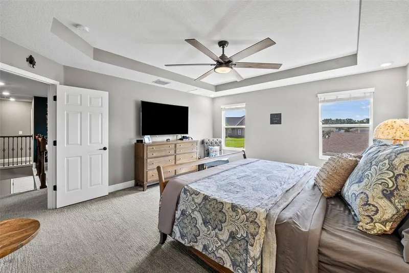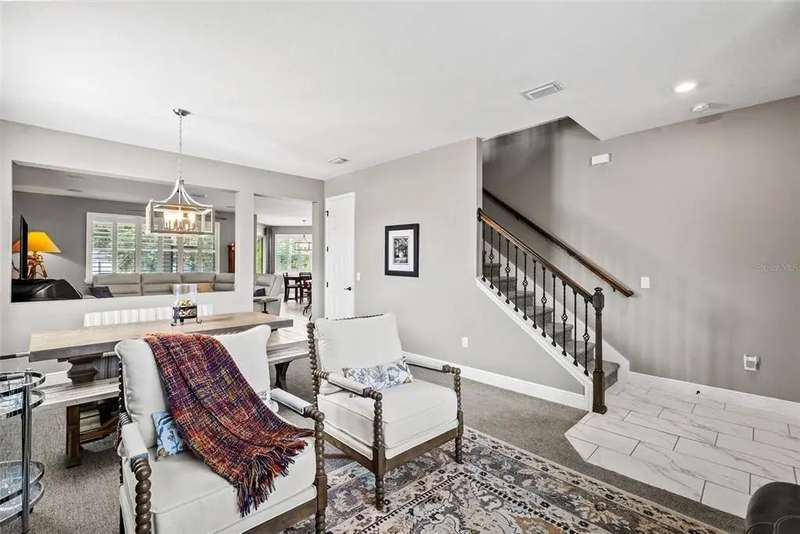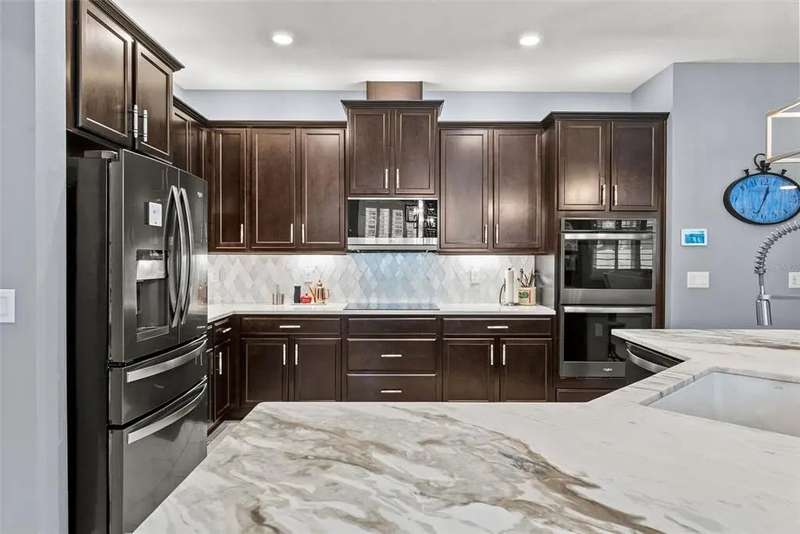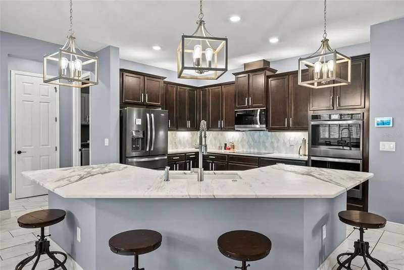 Built in 2021 by KB Homes, this stunning residence in the desirable Valri Park community showcases thoughtful upgrades and modern design. Original owners have meticulously enhanced the home with tasteful touches throughout. Step inside to soaring 9’ ceilings on the first floor, setting the tone for the spacious, open-concept layout. The chef’s kitchen impresses with a custom layout featuring an added nook, striking stone countertops, induction cooktop, double ovens, new backsplash, fireclay farmhouse sink, and Moen touchless faucet. Enjoy built-in pullout drawers for maximum storage and convenience. The family room and loft are equipped with a Klipsch surround sound system—perfect for entertaining or relaxing. The primary suite offers a large walk-in closet and a versatile dressing area that can double as an office or nursery. The en suite bath features dual sinks and elegant finishes. A Level II 240-volt EV charger in the two-car garage makes parking and charging effortless, complemented by a beautiful paver driveway with ample parking. The fully fenced backyard and screened-in porch provide the perfect blend of comfort and privacy. Blending contemporary style, smart home technology, and a functional layout, this exceptional Valri Park home is move-in ready and waiting for its next owner.