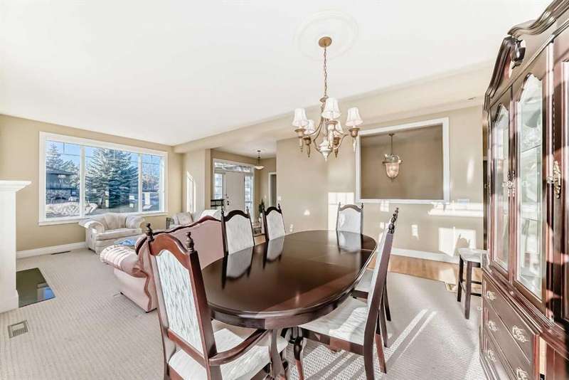 Lovely Detached Bungalow with 1636sq. ft on upper level and 1280 sq.ft. on lower level. Featuring a total of 4 bedrooms plus den, ideally located on a quiet, tree-lined cul-de-sac. Situated on the south side of Elbow Valley, this home is just a short walk to the lake and the residents’ club with a swimmable beach, winter skating, tennis, basketball, and pickle ball. The main level offers an excellent layout for a family or couple, including a formal living and dining room, a comfortable family room off the kitchen, a primary bedroom with a walk-in closet and large 5-piece bathroom, a 2-piece bath, and main-floor laundry. The fully developed lower level includes 3 additional bedrooms, a den/office, spacious games room with large windows, a 4-piece full bathroom, storage room, and a second laundry area. The kitchen is equipped with maple cabinetry, granite countertops, a large island, and a bright, sunny eating nook. Additional features include an oversized dry walled double garage with built in shelving. 2 decks, 2 fireplaces, maple hardwood flooring, and in-floor heating in the basement. Recent updates include a newer heat pump furnace with combined hot & cool air, a newer hot water tank, and a newer sprinkler system. The roof and 2 decks were updated around 8 yrs ago. A fantastic opportunity in one of the Calgary surrounding area’s most desirable neighbourhoods. Enjoy the natural surroundings and exceptional amenities of Elbow Valley Estates. This Home has been well maintained and cared for but it will need some more tender loving care. The property has been listed accordingly to condition of property and it is to be sold as-is. Seller is licensed realtor in Alberta.