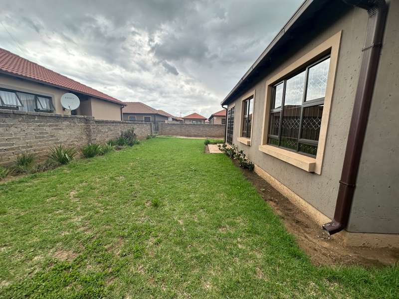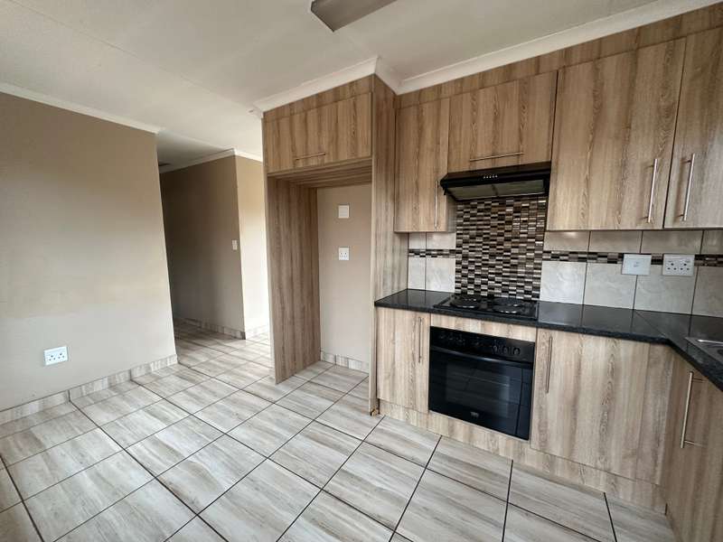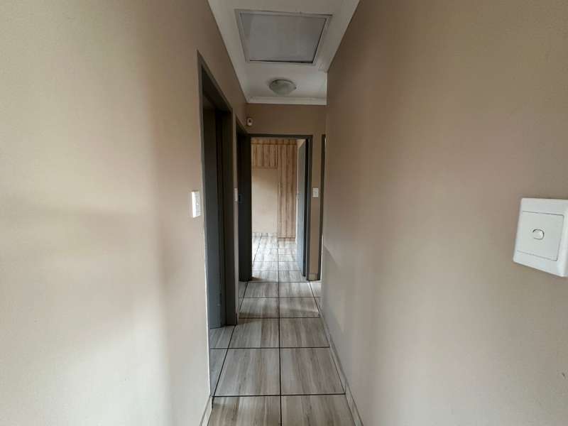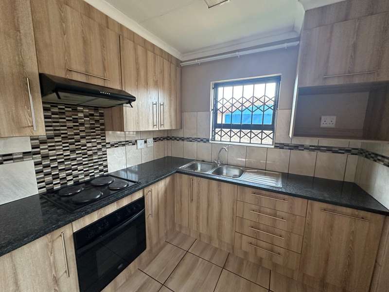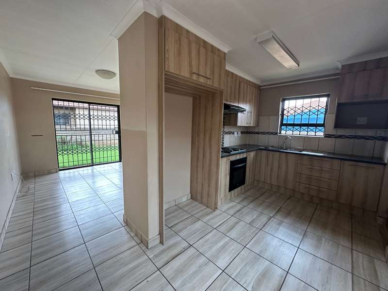 Perfect for those seeking their first home. Ellaton is situated at the southern part of Klerksdorp, alongside Klerksdorp Industrial and main road towards Orkney. Kitchen is filled with ample of cabinetry and working space, along with undercounter oven and hob with extractor. Three bedrooms are down the hallway with built in cupboards. Main has an ensuite bathroom, with a second bathroom across the hallway. Yard is fenced on all sides, with space to expand the home over time.