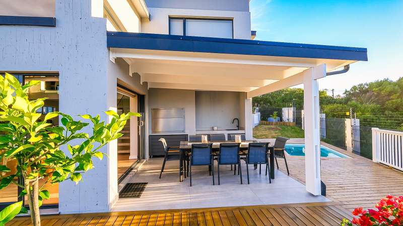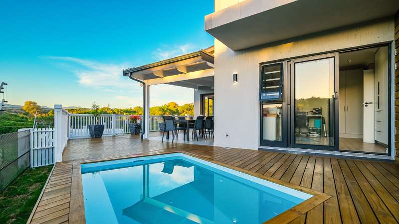 Newly Built Home - Move in Ready This newly built home is ready for you to move in. Situated in a brand new estate, one street away from the ocean, this modern home boasts impeccable, upmarket finishings. It features 4 bedrooms, 3 bathrooms, a study/office and a large double garage. One of the highlights of this property is its separate 1-bedroom flatlet complete with a lounge, kitchen, and bathroom, offering versatile use options such as generating rental income or accommodating extended family members. Enjoy the braai area with a pool and the sustainability benefits of solar power and an inverter system. Security is paramount, with the estate fully fenced and equipped with high tech security including CCTV linked to an outside security provider. Wilderness, a coastal town experiencing significant growth over the past 2 to 3 years, makes this property an excellent investment opportunity. Arrange a viewing today and envision your new lifestyle in this spacious, well-appointed home.