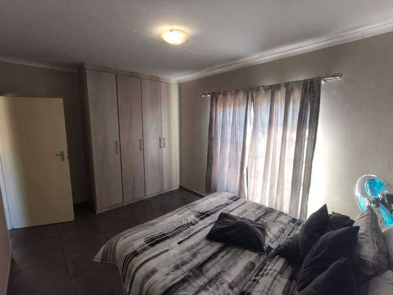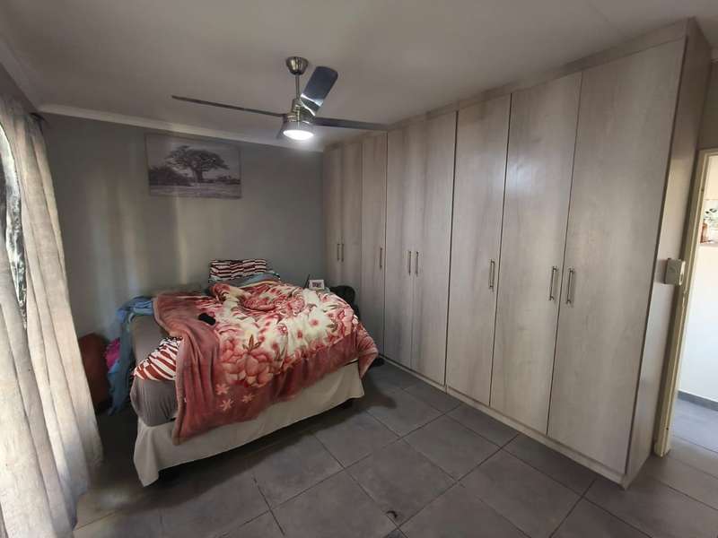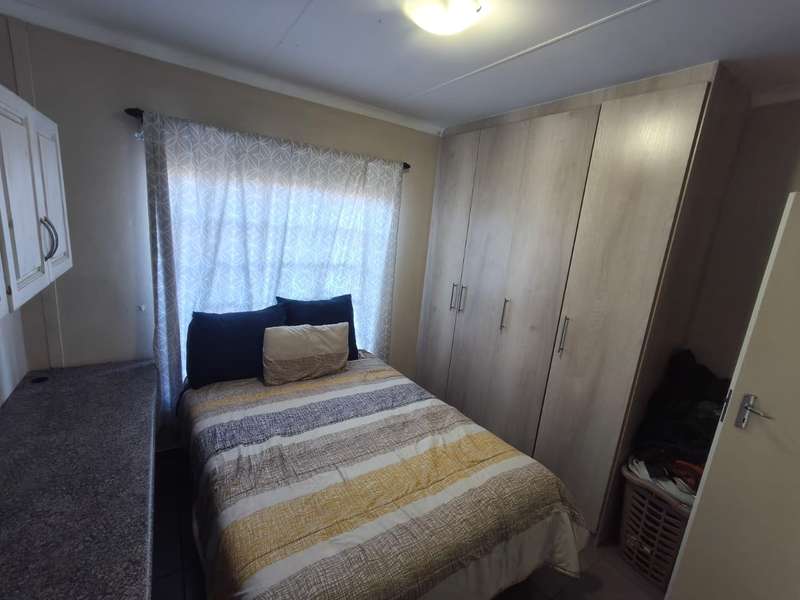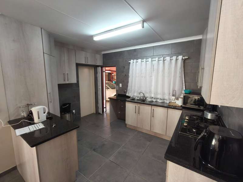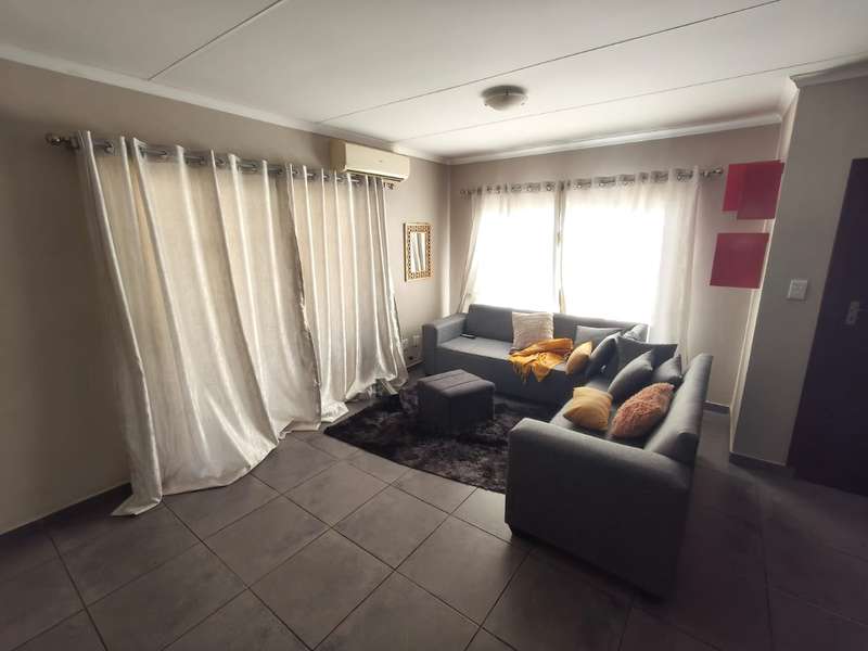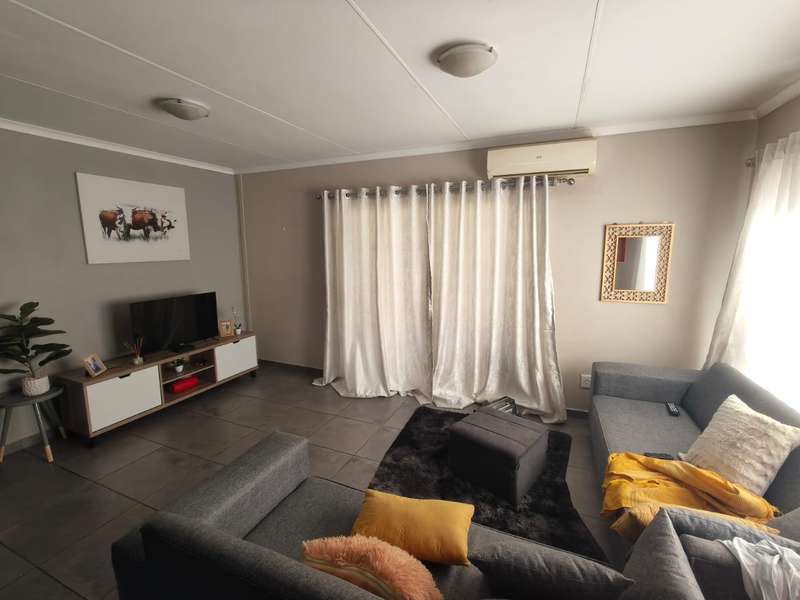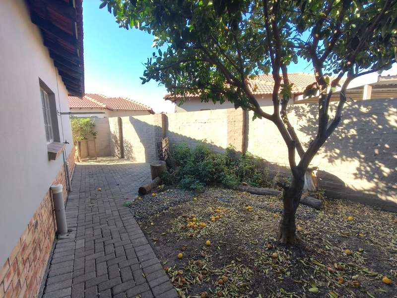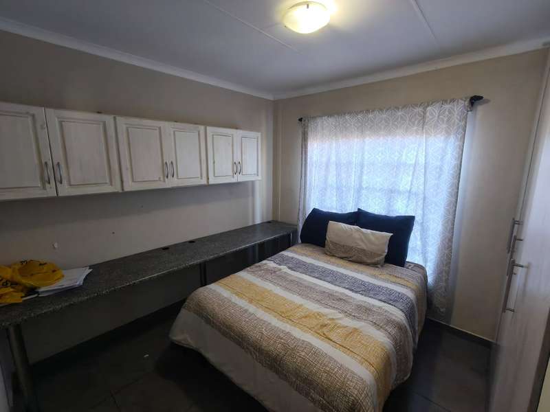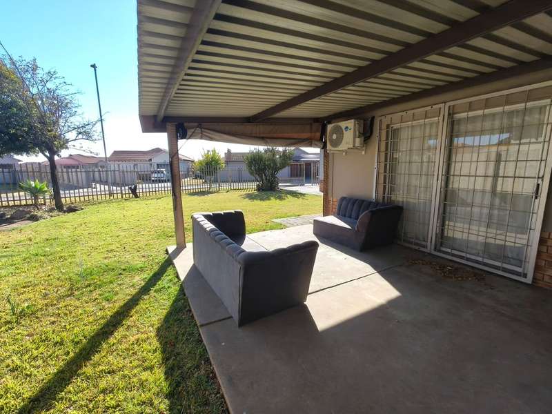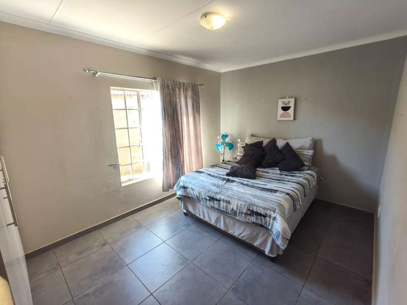 Welcome to your dream home located within a Secure Estate. The House consists of 3 Bedrooms, 2 Bathrooms (1 En-suite), a Kitchen and open Plan Lounge. The Property has a covered patio with built-in braai, perfect for relaxation or entertaining guests. The property has a single Garage and also a large covered enclosed Parking for vehicles. The property is Pet-friendly with a large yard space. There is also a JoJo tank to ensure constant waterflow. Call us today to view this prime property
