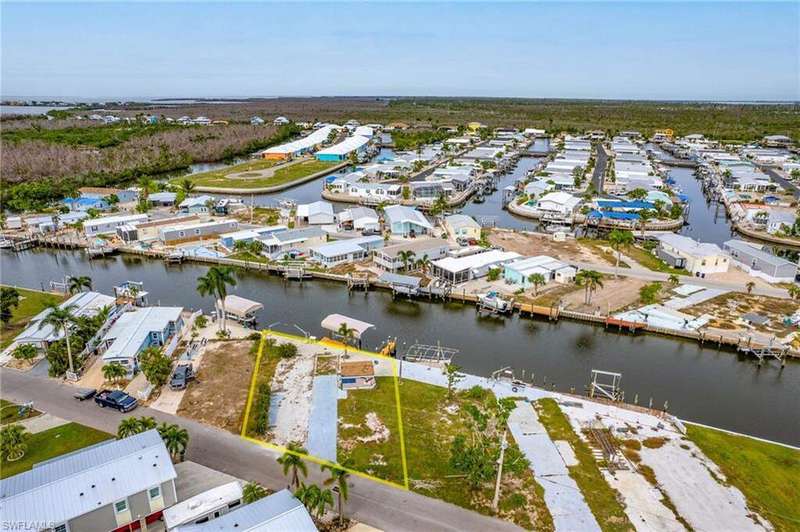 One and a half lots combine to give you options for a new home with 75' of Water-Frontage! There is an 8,000 lb. COVERED Boat-Lift in place, 2 Docks, AND Davits as well! This property is on sewer, giving you even more buildable space than surrounding properties. There is a shed on-site already. The owner was in the process of placing a new manufactured home on the property, gaining you site work, Including a new Electric Service Box, and more. The savings add up quickly with the Impact fee waived on a new manufactured (and only the difference due between manufactured and Single Family). There is even a permit for a new manufactured home that you could capitalize on by submitting your home plans to Lee County. The opportunity to spread out and live the "Island Life" is waiting...