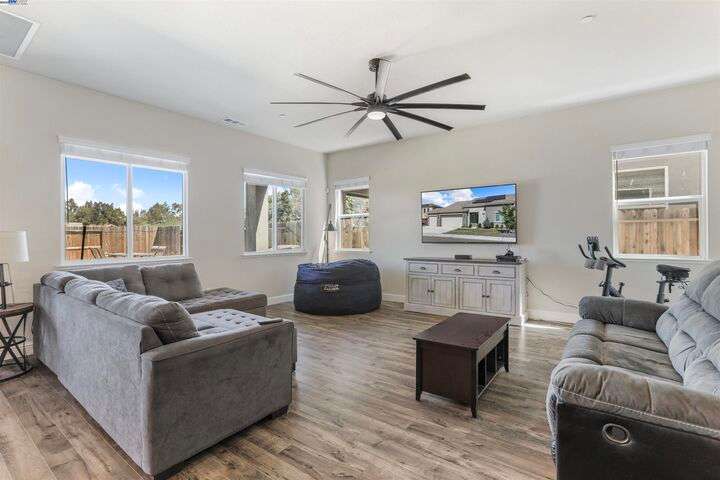 Don't miss your chance to own this exceptional 2021 Raymus-built home—designed for comfort, style, and privacy! With 4 spacious bedrooms and 3.5 baths, this dream layout features 3 bedrooms on the main level, including a private guest suite with a full bath and walk-in closet. Every bedroom has its own walk-in closet—no detail was overlooked! The bright, open living space is perfect for entertaining, with a flowing layout and a kitchen that opens to the dining and living areas, all flooded with natural light. A separate mudroom and laundry room add everyday convenience. Upstairs, a huge 960 sq. ft. loft with a built-in kitchenette offers the ultimate flex space—ideal for movie nights, a home office, or a guest retreat! Step outside to a backyard oasis featuring a covered patio, putting green, and no rear neighbors—offering rare privacy and relaxation. A 3-car garage with drive-through bay adds serious versatility.Attached solar means energy efficiency and long-term savings. Located just 2 minutes from local restaurants, shops, gyms, freeway access, and walking distance to Palmer Park—this home truly has it all. This is the one you've been waiting for
