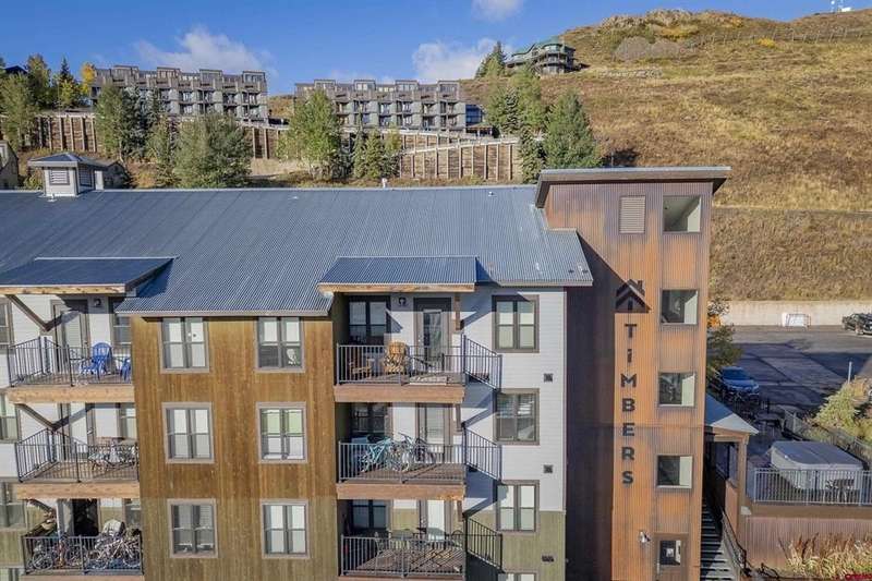 Ross Tunkey, Bluebird Real Estate, LLC, C: 970-209-9046, ross@bbre1.com, www.crenmls.com: Best-in-class offering in the stylish Timbers Condos! Located close to the ski area, this top-floor corner-unit boasts BIG mountain views, tall ceilings, stainless appliances, and open-concept floor plan. Kitchen, living and dining area open out to the private balcony and sweeping vistas. Hop on the free shuttle outside your door or make the short walk across the road to the ski slopes. Enjoy a day on the hill, then come home to relax in the outdoor hot tub. Additional amenities include elevator, bbq deck, large private ski locker, bike storage area, and dog wash station. Timbers 300 is the ideal home base for all your Crested Butte adventures. A mountain retreat for all seasons, perfect for full-time residence and high-performance vacation rental.