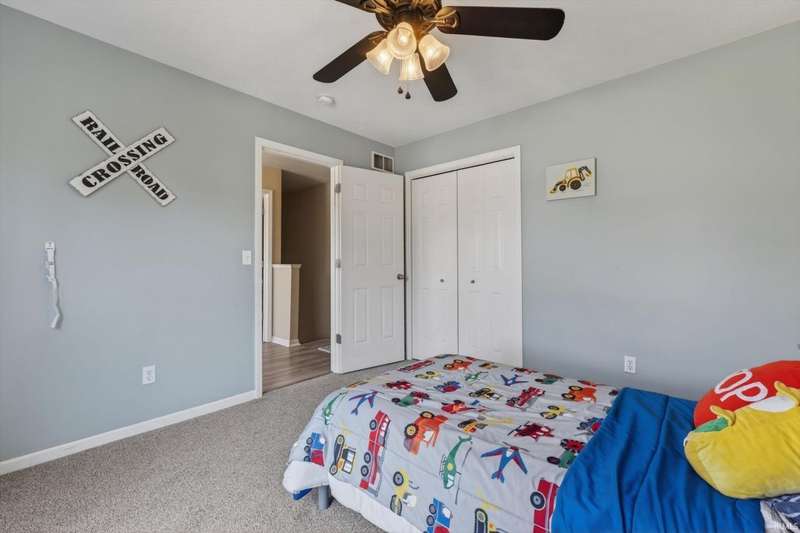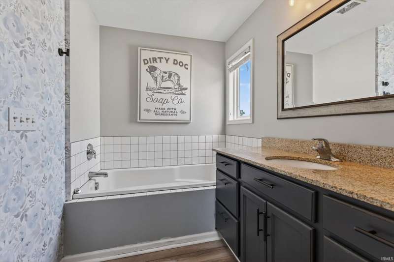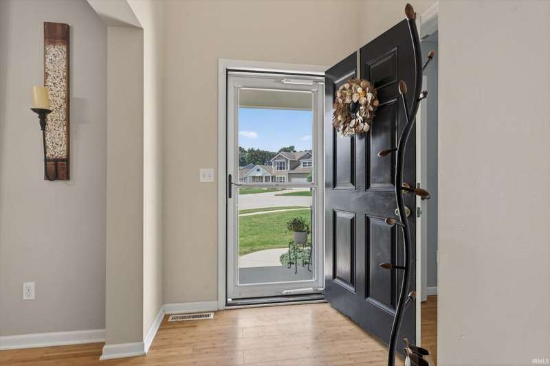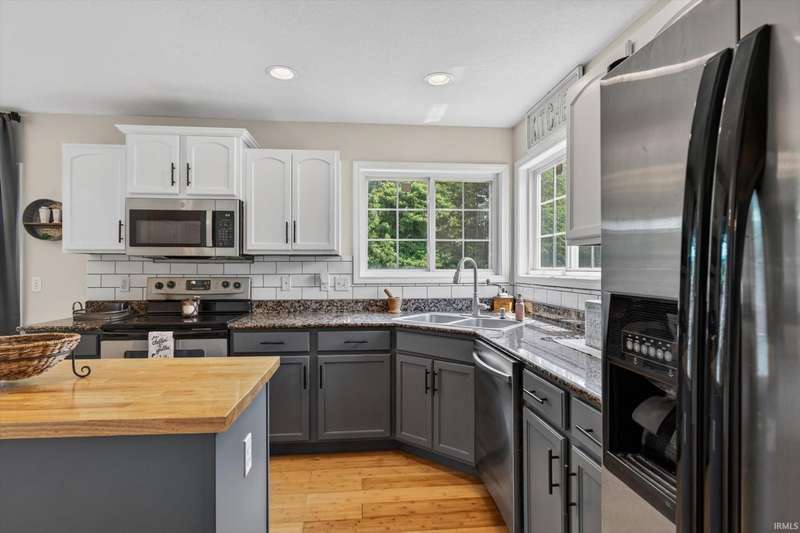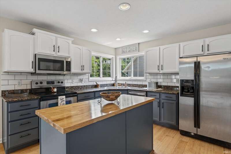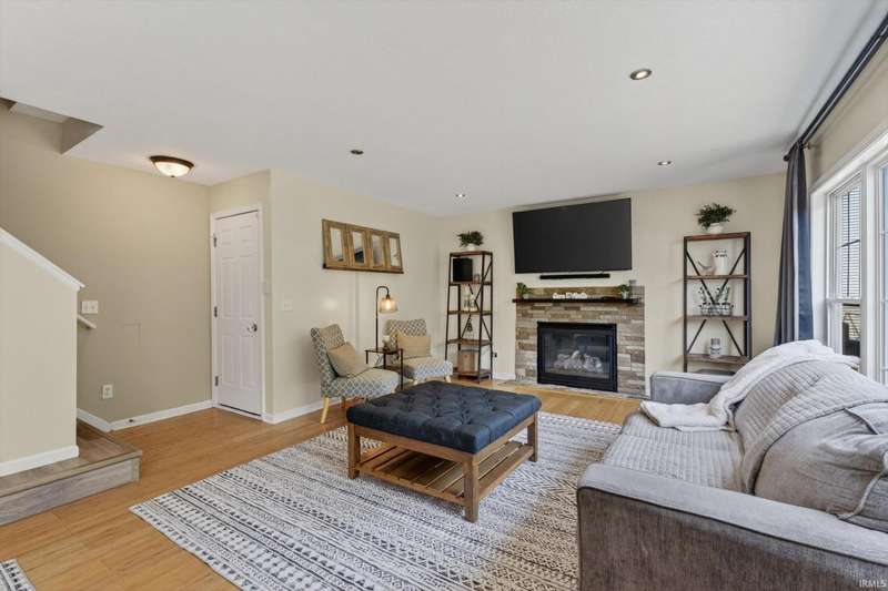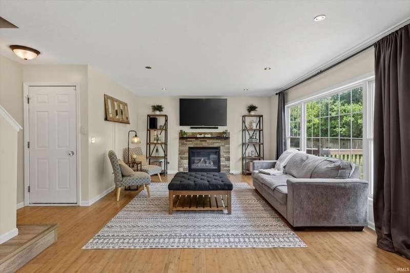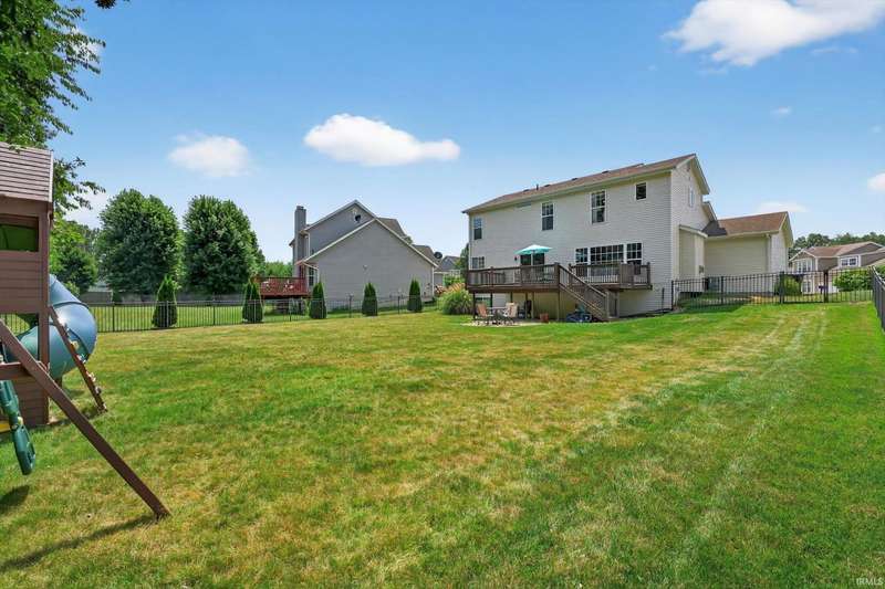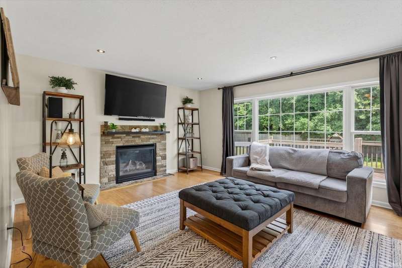 NEW PRICE! Welcome home to: 54866 Springfield Trace Dr.! Beautifully decorated 4-bedroom, 2.5-bath home located in the highly sought-after NORTHBRIDGE VALLEY SUBDIVISION, within the top-rated Penn-Harris Madison School District. Enjoy comfort and style throughout with new carpet in all bedrooms, a large master suite featuring a walk-in closet, stylish barn door, and spa-like privacy. The living room offers warmth and charm with a gas-log fireplace, perfect for cozy evenings. The kitchen is a chef's dream?complete with GRANITE countertops, a butcher block island, and a spacious pantry for ample storage. NEW CARPET IN ALL BEDROOMS! Finished basement with look-out windows for natural lighting! Step outside to a very semi-private backyard with black iron fencing, deck, irrigation system, and professional concrete-curved landscape edging?ideal for entertaining or peaceful retreat. Additional highlights include a newer water heater and tasteful updates throughout. Don't miss the opportunity to own this turn-key home in a prime location!