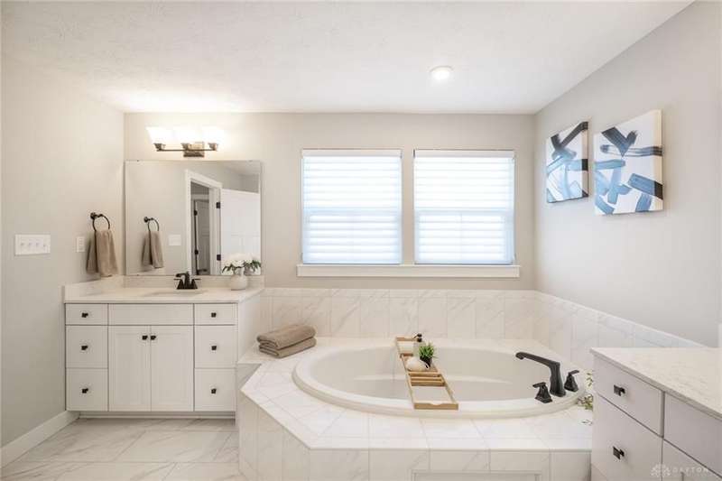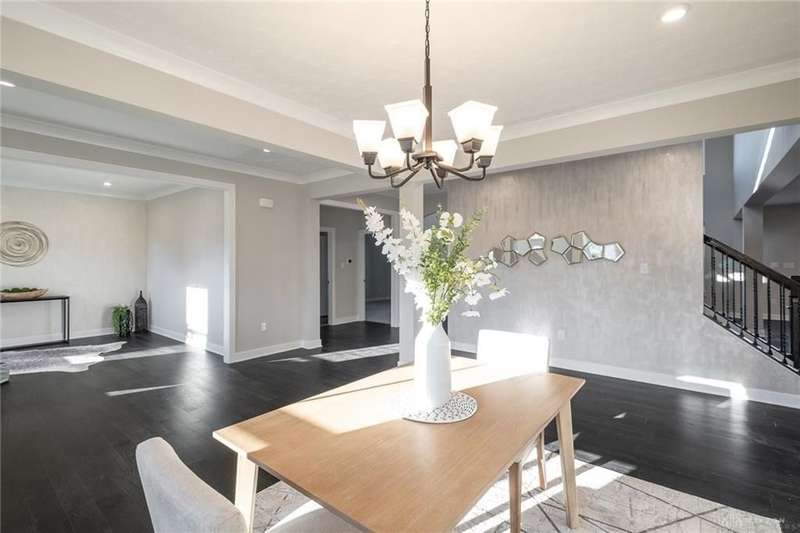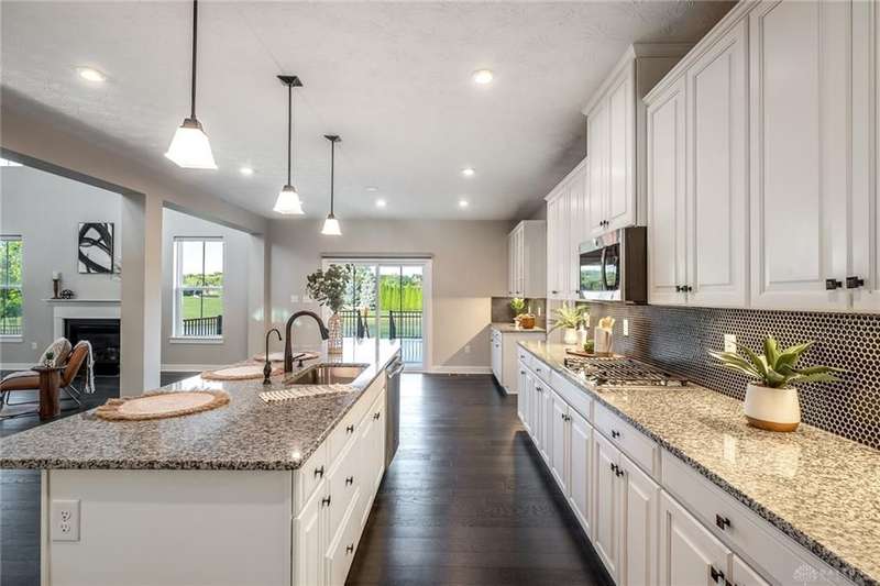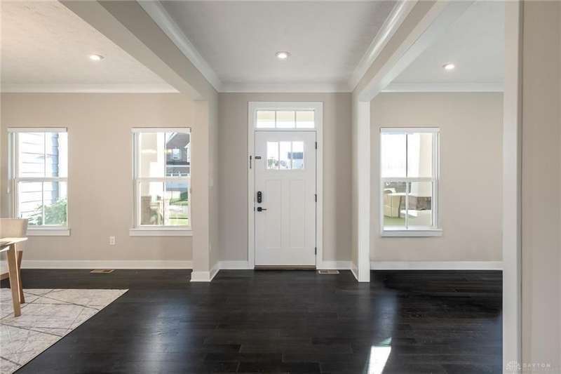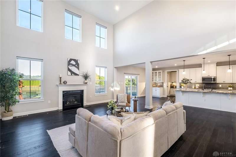 Expansive executive home in the exclusive Oak Brooke community! Inside, a spacious entry is flanked by formal living and dining rooms, ideal for entertaining or hosting holidays! Rich hardwood floors continue throughout the living spaces, and custom-painted accent walls add a touch of sophistication. A grand great room features soaring ceilings, loads of windows with motorized blinds, and a gas fireplace, as well as access to the screened patio! Your family';s aspiring chef will love the gourmet kitchen, complete with a double oven, gas cooktop, granite counters, R/O system, and attractive tile backsplash. A walk-in pantry and hidden work area are unique features for this floorplan! A first-floor bedroom and full bath complete the level. Upstairs, a large loft has myriad uses. For the owner, the primary bedroom offers an en-suite bath with dual-sink vanity, soaking tub, and two walk-in closets. Three other bedrooms (one with an en-suite bath), a hall bath, and convenient laundry round out the second floor! Downstairs, the finished basement provides rec space, a wet bar, sixth bedroom, full bath, and theater with surround sound! Outside, enjoy the composite deck (perfect for enjoying the pond view), irrigated yard, fence, oversized 3-car garage, professionally installed playset with rubber mulch, and exterior security cameras. Just minutes from shopping and dining at Cornerstone of Centerville, as well as I-675!