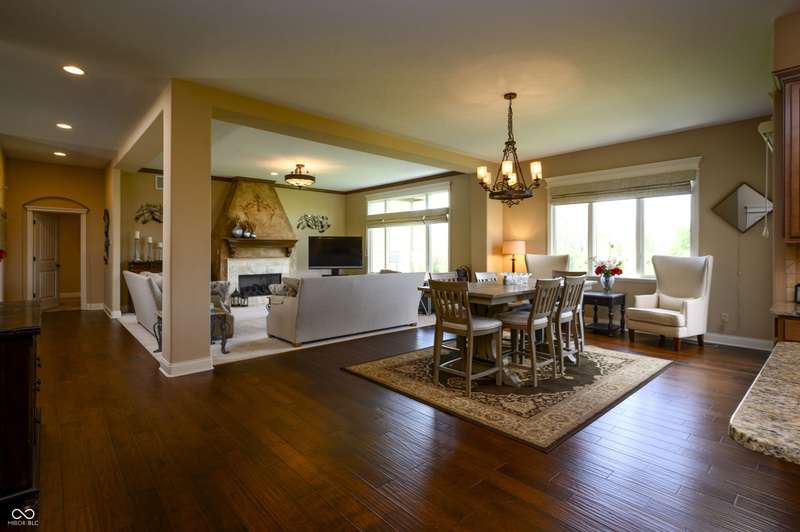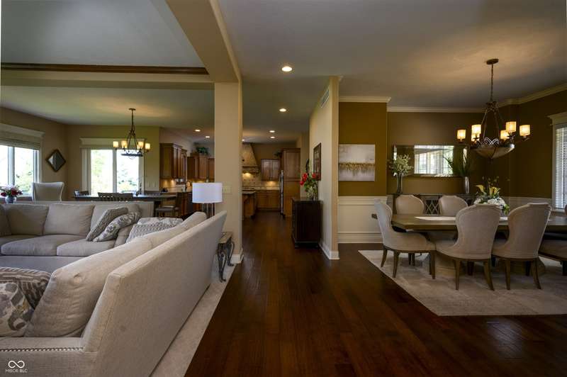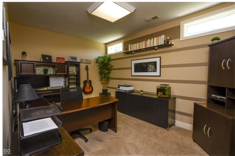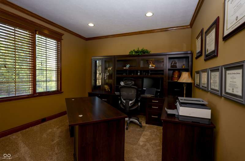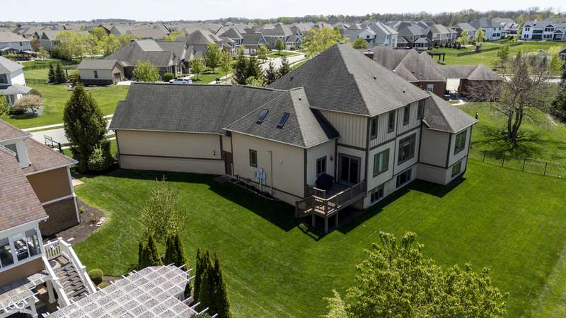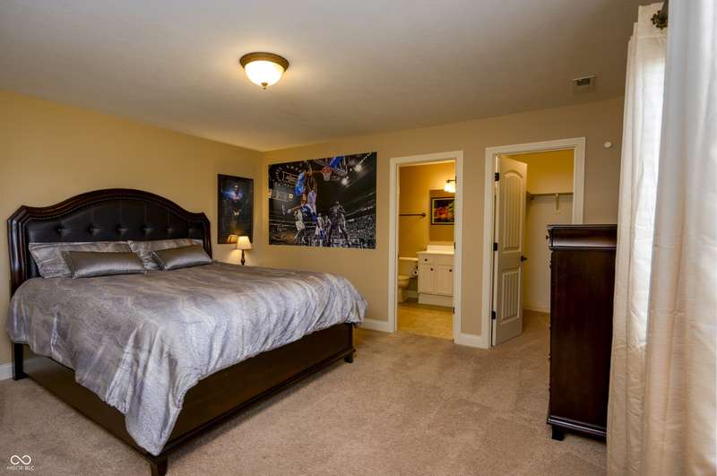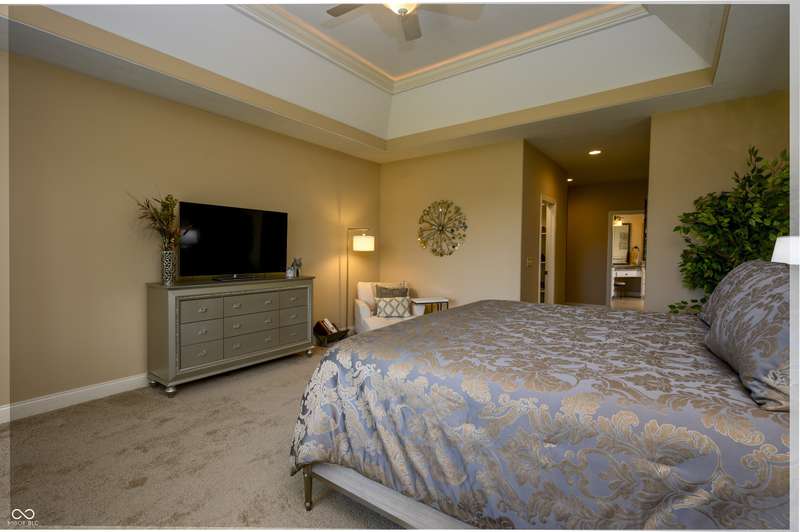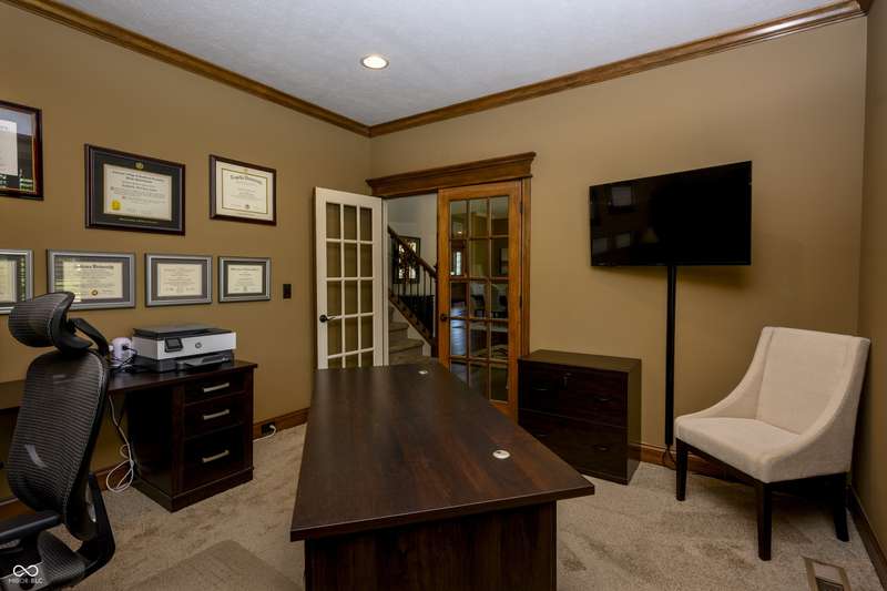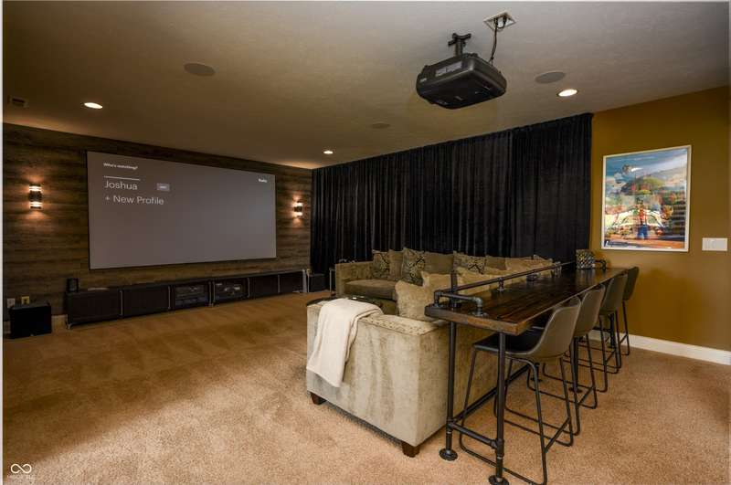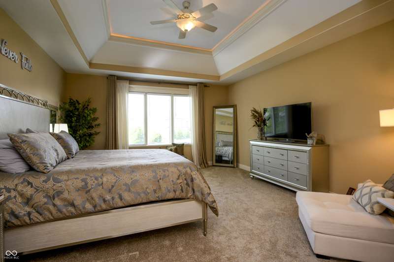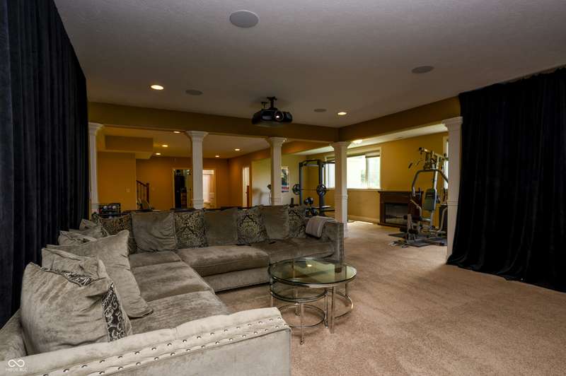 Nestled on a generous lot in prestigious Brooks Park in Fishers, Indiana, the single family residence at 10138 Backstretch Row presents an attractive property in excellent condition. This home offers a perfect blend of luxury, functionality and comfort. Newly painted exterior, with updated new carpet in the home. The kitchen serves as a culinary centerpiece, showcasing stone countertops that provide an elegant and durable workspace, while shaker cabinets offer ample storage, enhancing the room's sophisticated aesthetic, and a custom range hood makes a statement above the stovetop. A large kitchen island anchors the space, providing a gathering spot and additional prep area, complemented by a kitchen bar for casual dining or entertaining. The double oven caters to ambitious culinary endeavors, and a backsplash adds a touch of artistry, protecting the walls and enhancing the room's character. The main-level, primary bedroom offer a private retreat distinguished by a tray ceiling and crown molding, creating an atmosphere of refined elegance, and this bedroom includes an ensuite bathroom for added convenience and privacy. The bathroom provides a spa-like experience, featuring a tiled walk in shower that invites relaxation and rejuvenation, and a double vanity that offers ample space for personal care. Each additional bedroom offers spacious functionality. This home offers a cinema room and provides a dedicated space for immersive entertainment experiences. All items for the theatre stay. The property sits within a residential area and offers a porch for enjoying the outdoors. Five bedrooms and four full bathrooms, along with one half bathroom, ensure ample space for all. The walk-in closets provide generous storage for an organized wardrobe. With over 6600 square feet of living area, this three-story home, constructed in 2010, provides both space and modern comfort. This thoughtfully designed floor plan offers exceptional spaces for entertaining and everyday living.