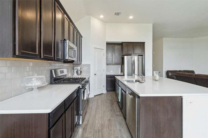 Familial Relationship to Seller Amazing location! Forget the headache of Highway 290 in Manor. This upscale four-bedroom, three-bathroom house sitting on a quiet cul-de-sac in the 1st phase of the Wildhorse Ranch subdivision is close to Tesla and Samsung with easy access to both State Highways 290 and the 130. Walk into the newly repainted all brick one-story home and marvel at the grand entrance with its 11-foot ceilings that run throughout. Beautiful and attractive ceramic tile flooring and large bay windows that let in an abundance of natural light. A sizeable gas-fitted kitchen features stunning quartz countertops on the island and surrounding workspaces, a neutral backsplash, stainless steel appliances and a roomy walk-in pantry. Just off the kitchen you will find the formal dining room which provides ample room for guests and receives great light from another large bay window. The luxe continues into the bedrooms with custom blinds, carpeting and walk-in closets with double hanging racks ensuring plenty of space for clothes and storage. The customized laundry room that offers shelving for folding and stacking clothes easily. Keeping organization and storage in mind, the home offers a tankless water heater and two heavy-duty adjustable overhead ceiling mounted garage shelves. Relax at the end of the day in your SPACIOUS backyard outdoor entertainment area with its decorative extended 10’ x 23’ custom-stamped patio. Invite friends because as many as six cars can park in your extra-long driveway. Front and back yard sprinkler systems and seamless gutters complete the ease of yard care at this home. Owner is open to negotiate incentives for rate buy down, closing cost, or others.