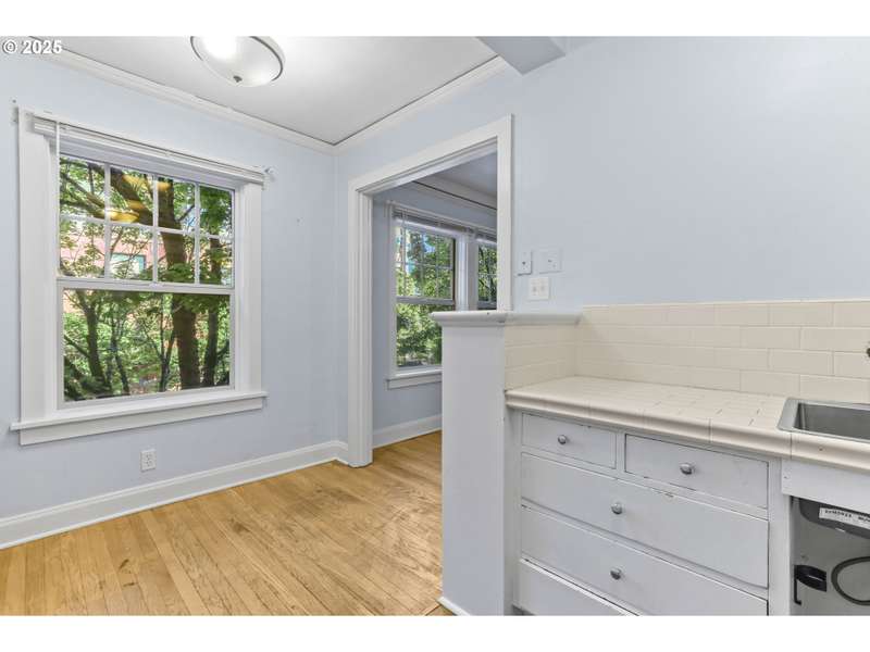 Nestled in the charming Goose Hollow neighborhood the historic Hamilton Arms offers a timeless charm! A welcoming lobby greets you en route to this 3rd floor studio featuring beautiful hardwood flooring, high ceilings, leaded glass built-ins, ample storage, picture rail crown molding, and a vintage kitchen that adds character to the space. Convenience is key - just 2 blocks to Providence Park, 3 blocks to the MAC Club, MAX stop around the corner, Portland Streetcar a few blocks away and bus stop across the street. Oh, and a quick stroll over to the vibrant NW 23rd shopping & dining area, Zupans, Freddy's, Washington Park, downtown and I-405. Multiple parking options nearby! Wisely, the entire building has been recently repiped with PEX plumbing. Basement area features bike storage, 4 complimentary washers & dryers, and the shared elevator provides access to all floors. Utilities are included (!!) and the building has no rental cap making it an ideal choice. What's the catch on price? Welp, bring your hammer and your paintbrush, roll up those sleeves and save tens of thousands vs. other units in the building! Welcome home!