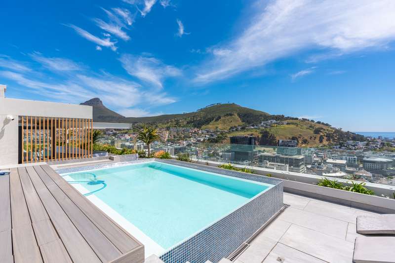 Experience luxury city living at its finest in one of Cape Town’s most prestigious new developments. Key Features: • Brand New – Direct from the Developer, with no transfer costs • High-quality finishes throughout • Three Levels of sophisticated design o Lower Level: Tiled open-plan living area with a modern kitchen. Guest toilet. Kitchen includes integrated appliances. o Second Level: Two luxury carpeted, en-suite bedrooms. o Third Level: Private terrace with direct access to the spectacular rooftop pool and braai area, boasting panoramic mountain, city, and harbour views. • Two basement parking bays • 24-hour security with on-site guards • Airbnb-friendly building — perfect for investment or personal use • Option to purchase fully furnished Prime Location: Conveniently situated close to the Cape Town International Convention Centre, Bree Street restaurants, and The V&A Waterfront. Easy access to major highways, the Atlantic Seaboard, and Southern & Northern Suburbs. This penthouse combines modern elegance, convenience, and investment value. VAT inclusive of selling price.