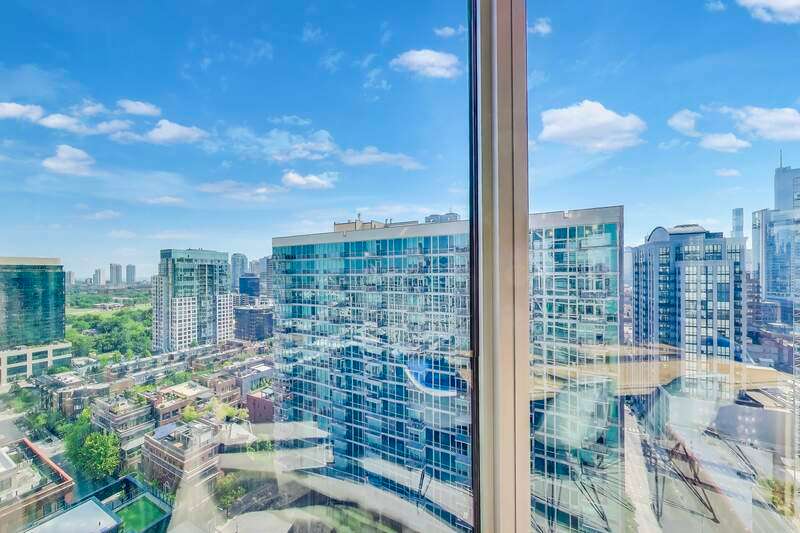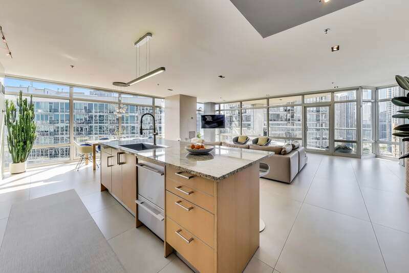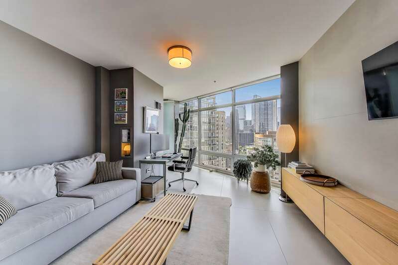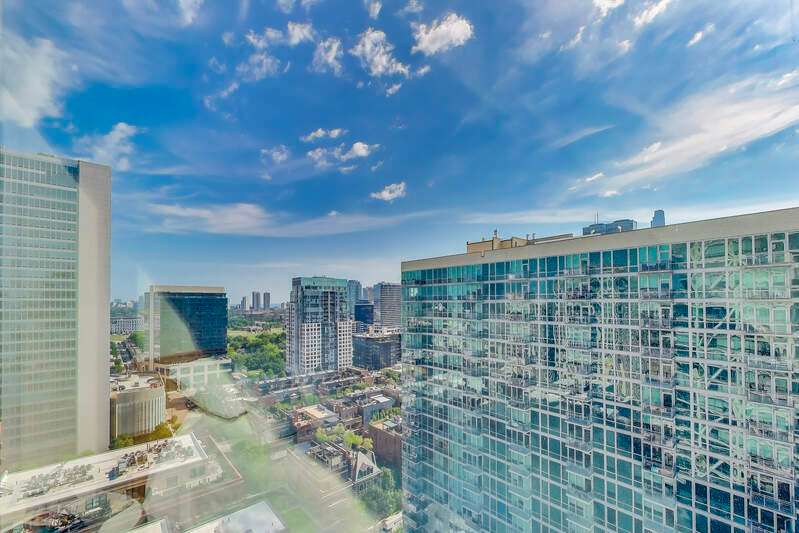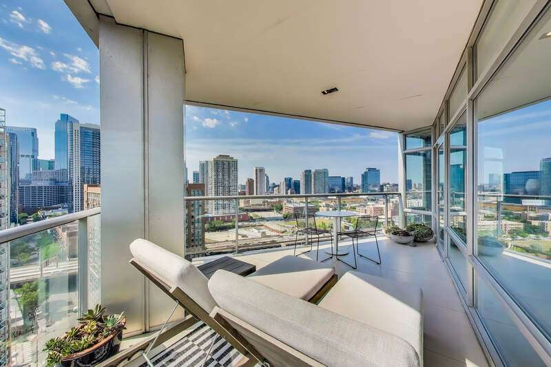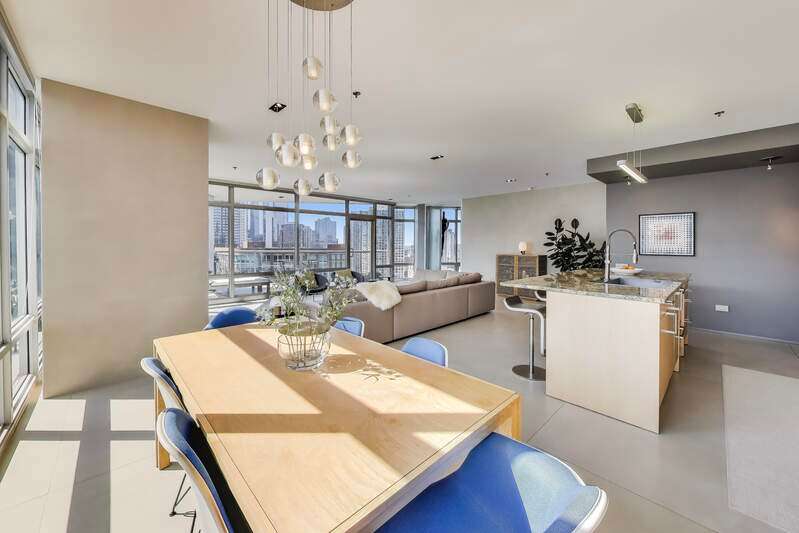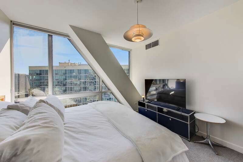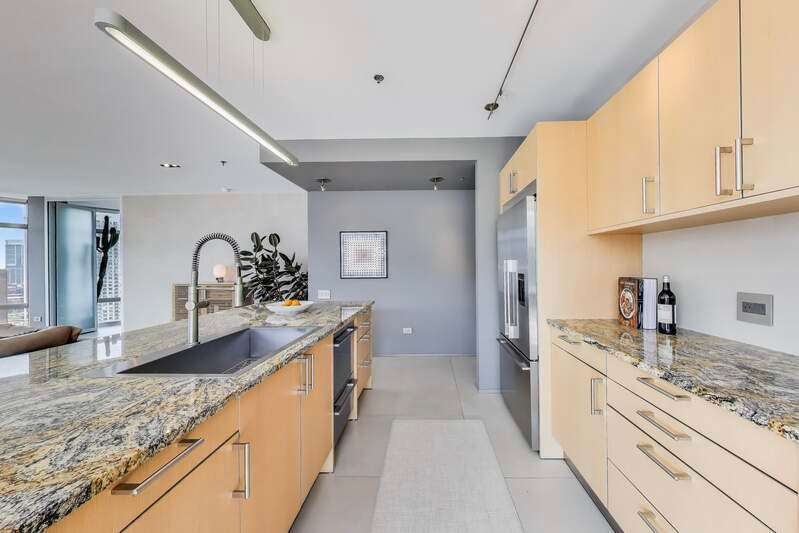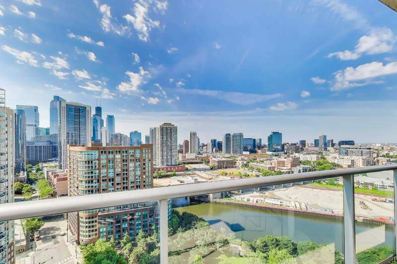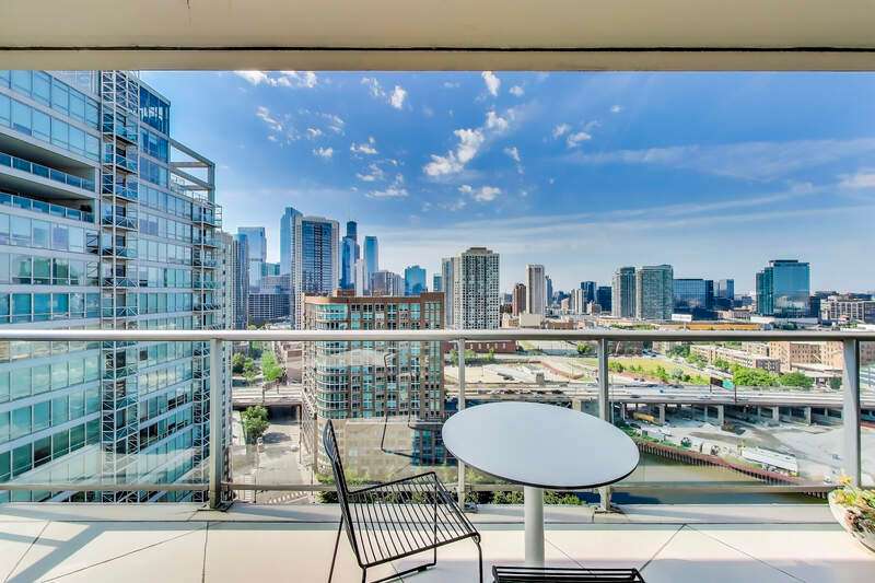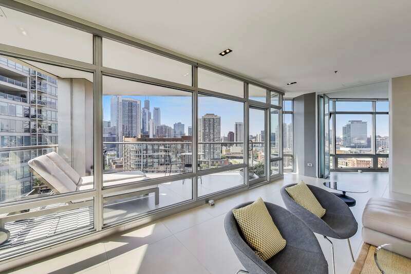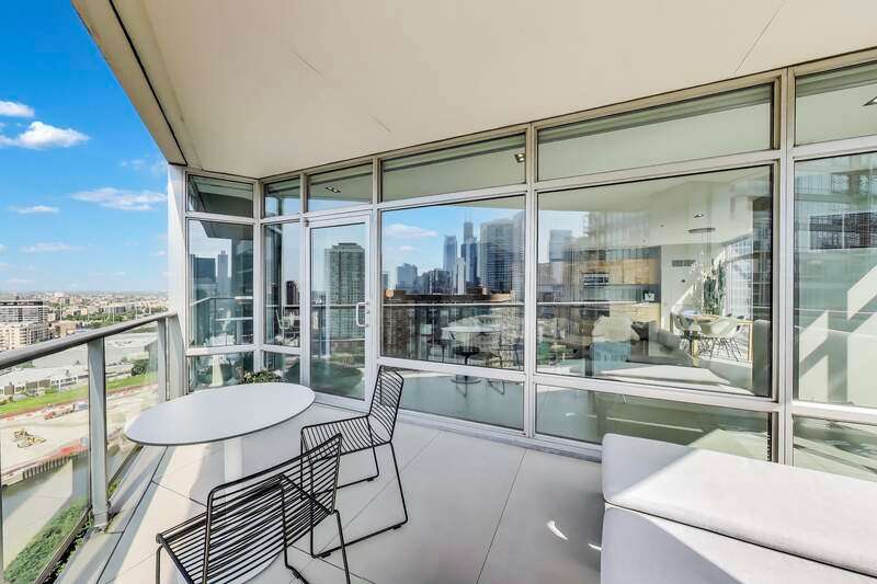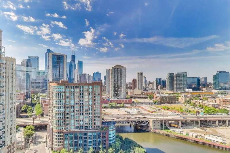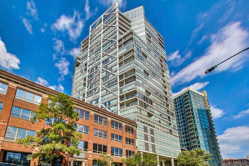 Experience the best of city living in this 18th-floor corner unit inside an AIA award-winning Lucien Lagrange building. Located in the sought-after Montgomery Park neighborhood of River North, just steps from West Loop, Fulton Market, and two blocks from The East Bank Club. This one off design, 1677sf, 2-bedroom home spans a quarter of the floor, offering 270 skyline views of Montgomery Park, the Chicago River, Sears Tower, and Lake Michigan. Highlights include: Sleek Balthaup kitchen cabinets with granite countertops and Fisher Paykel Appliances. Designer finishes include: Italian tile, marble & slate baths, Custom closets for effortless organization. Private 156 sq ft terrace. A rare blend of location, design, and views. Deeded parking available for $25K.