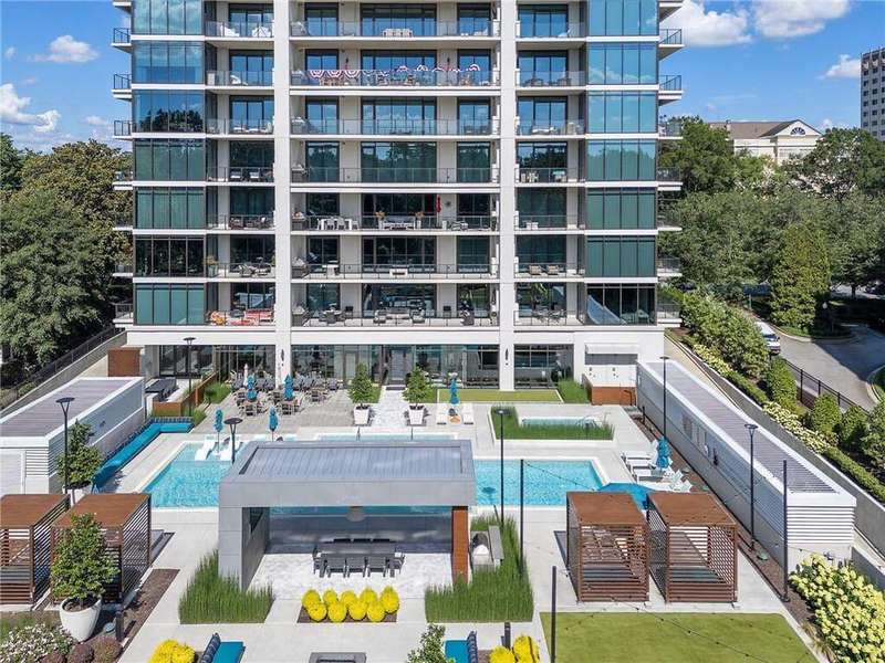 GORGEOUS Southside residence available in sought after Graydon Buckhead. This luxury residence located in Buckhead, Atlanta's most sought-after neighborhood. The Graydon stands tall in this state-of-the-art boutique building boasting exquisite design, meticulous finishes, and resort-style amenities. As you enter, you will notice the expansive light filled floor plan for the perfect blend of form and function. Upon entry, the foyer welcomes you with its high ceilings and downtown Atlanta views from the private den. The open floor plan seamlessly combines the living, dining, and kitchen areas, creating a spacious and inviting atmosphere. 10' floor-to-ceiling windows allow natural light to flood the space, offering breathtaking views of the cityscape, surrounding greenery, and amenity plaza. The gourmet kitchen is a chef's dream, equipped with SUB-ZERO, ASCO and WOLF stainless steel appliances, including a professional-grade gas cooktop, double ovens, SUB ZERO refrigerator and freezer columns, and under counter SUB ZERO beverage cooler. Custom cabinetry, quartz countertops, WATERWORKS custom backsplash and a large center island with seating for four to complete the luxurious aesthetic. Whether you're a culinary enthusiast or simply enjoy hosting gatherings, this kitchen offers everything you need to create culinary masterpieces. The first of three terraces, features a built-in Al Fresco Grill with powder-coated cabinets and Dekton countertops. At 33' in length and overlooking southern Buckhead views, this area makes for the quintessential outdoor dining experience. The owner's suite exudes tranquility and sophistication. Its spacious layout accommodates large scale furniture /art and features the second covered private balcony space complete with FRANCOIS fireplace and television set up for the perfect outdoor getaway. The en-suite bathroom boasts a spa-like ambiance, featuring a soaking tub, a zero-entry glass-enclosed shower, dual vanities with sleek fixtures, and a spa glass water closet with Toto fixtures. His/ her walk-in closet with custom built-ins provides ample space for all your wardrobe needs. The secondary bedroom is equally well-appointed, with the third private terrace space and modern finishes. The ensuite bath is equipped with Grohe fixtures, zero-entry floor-to-ceiling tile, and quartz counters. Beyond the interior, this luxury condo offers a range of amenities that enhance the residents' lifestyle. A fully equipped fitness center, private spa room, infrared sauna, full-size swimming pool with lap lanes, jacuzzi spa, club room, private dining area, and two furnished guest suites. The building also features valet, and 24/7 concierge service, ensuring the utmost convenience and security for its residents. For our furry friends, the private pet park is a haven for our four-legged friends and their owners. Dog Park Area is secure with double gates for the little buddies that are running free but still secure from others. One of the most enticing features of this location is the proximity to the best restaurants and shopping destinations. Just steps away residents can explore a variety of world-class dining options ranging from top-rated restaurants to trendy cafes and bistros. Additionally, renowned shopping at The Shops of Buckhead, ADAC, and Peachtree Battle are within walking distance offering an array of high-end boutiques, department stores, and specialty shops. The Graydon represents the epitome of refined living and offers an extraordinary living experience that combines sophistication, comfort, and convenience. UNIT INCLUDES TWO PARKING SPACES, LEASE PERMIT AND 1 LARGE STORAGE UNIT.