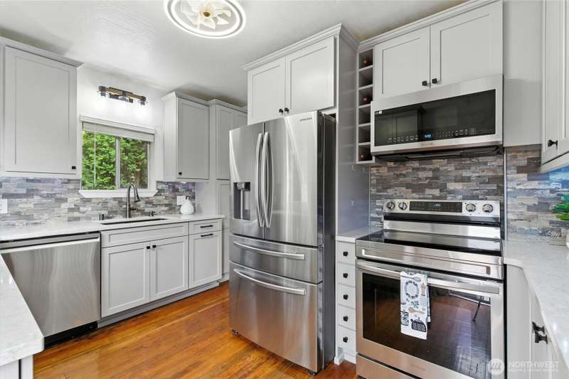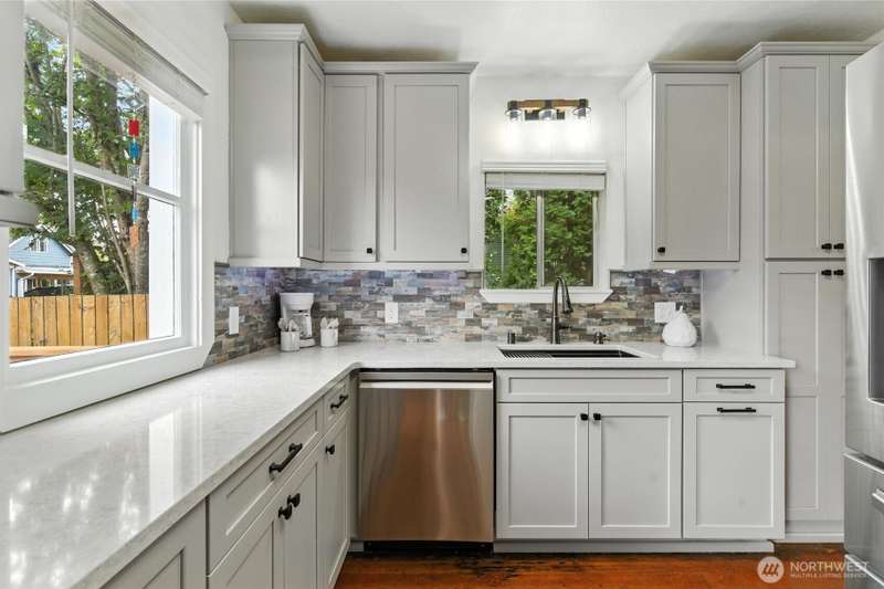 Charming 1918 Craftsman in Tacoma's sought after Proctor neighborhood! This beautifully maintained 4 bed, 2 bath home features hardwood floors throughout, a cozy living room with gas fireplace, dining area with classic built-ins. The spacious brand new kitchen and bathrooms blend modern comfort with timeless style. Two bedrooms on the main floor and two upstairs offer flexible living.Enjoy the fully fenced backyard with new deck, plus a 576 SQ ft garage with shop. Hardwired cat 6 ethernet throughout, including the garage. Updated wiring and plumbing, new gas furnace and tankless water heater complete this move in ready gem.Situated close to restaurants, shopping, school, and farmers market. A must see!