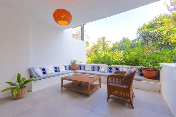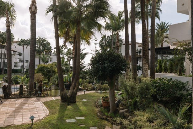 This beautiful apartment located in the heart of Puente Romano has been renovated and is completely fresh and modern. It offers a spacious living room with a comfortable sofa and fireplace; a fully equipped open-plan kitchen with breakfast area; a master bedroom, bathroom and another bedroom with separate bathroom. The apartment has a large private terrace, with direct access from the living room and the master bedroom, offering a splendid outdoor living area to enjoy the Mediterranean evenings. It overlooks the communal gardens and pool. Puente Romano Phase II is a private apartment complex ideally located and offers fabulous communal subtropical gardens and two swimming pools. It also includes a designated parking space.