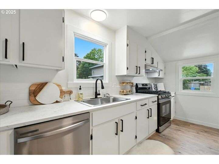 Charming Remodeled bungalow- MOVE in READY! Step into this beautifully remodeled Rose village bungalow, perfectly blended classic charm with modern updates. From top to bottom, no detail has been overlooked-NEW paint in and out, NEW luxury vinyl plank flooring, NEW carpet. Cozy living room features a gas fireplace and built in bookcases. Formal dining space, Remodeled kitchen with NEW stainless appliances, gas stove, Bedroom on main, Finished basement with outside entrance, family room. Across from Washington elementary. Detached garage, spacious fenced yard. Convenient location close to freeway access.
