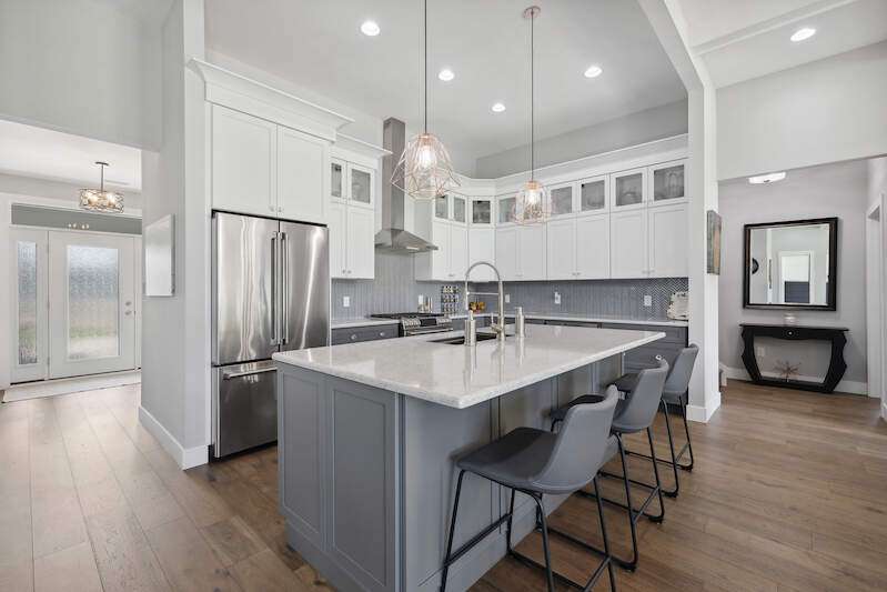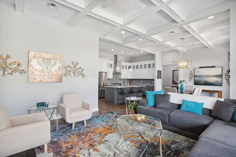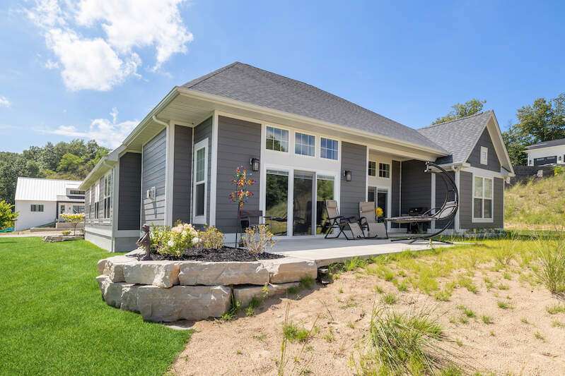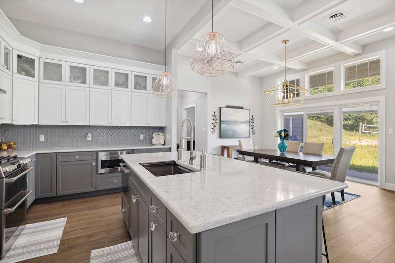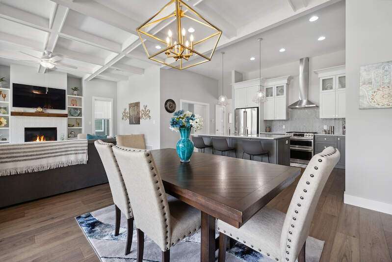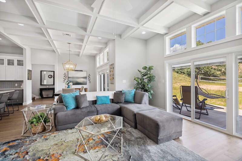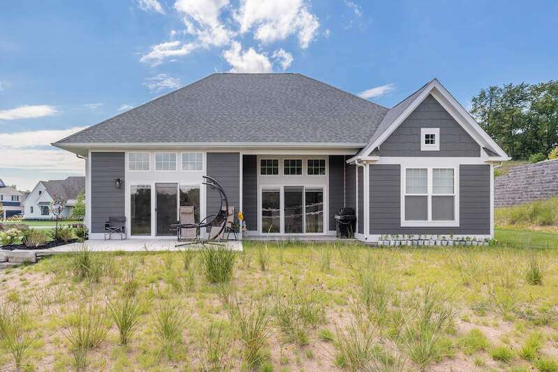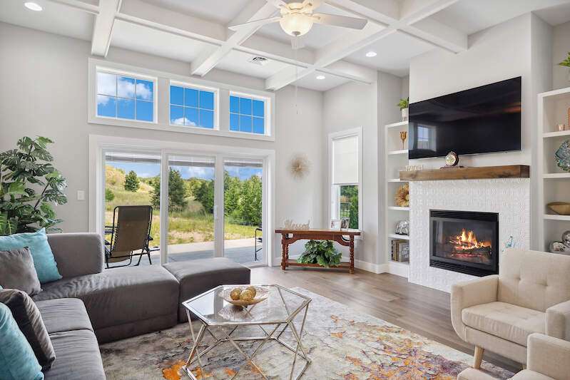 Your ease of living just steps from Lake Michigan awaits! This stunning 4 Bedroom, 3 Bath coastal beauty is ready to be your dream retreat. Nestled on a gorgeous 3/4-acre lot in the sought-after Whisper Dunes community, this 2021 custom-built home offers a flawless blend of modern design, beach-town charm, and main level living convenience. Step inside to soaring vaulted coffered ceilings and a bright, airy open-concept layout where sunlight streams through every window. Transitional living, dining, and kitchen areas are perfect for entertaining or cozy nights in, all framed by breathtaking views of Indiana's iconic protected dunes. Kitchen includes beautiful countertops, stainless steel built-in appliances, stainless steel range hood, large island with storage, high end cabinets w/ built-in lighting, and herringbone tile backsplash. Main level Home Office with French Doors lead out to the living space and could be converted to an additional Bedroom. Spacious Primary Suite is pure luxury, featuring a walk-in closet and direct access to the finished Laundry Room/Mud Room, adding to the ultimate convenience of this home that is designed to relax and recharge. After a sun-soaked day on the beach, relax on your private back patio and soak in unique views with newly installed sod, irrigation, and a new spacious paver patio. Oversized 2-car garage with bonus flex space above has you covered for additional sleeping space for guests. Minutes from dining, shopping, and all the fun that Lake Michigan living offers, this is the one you've been waiting for. Don't miss out on this rare opportunity to live where others vacation, schedule your showing today and experience Whisper Dunes living at its finest!