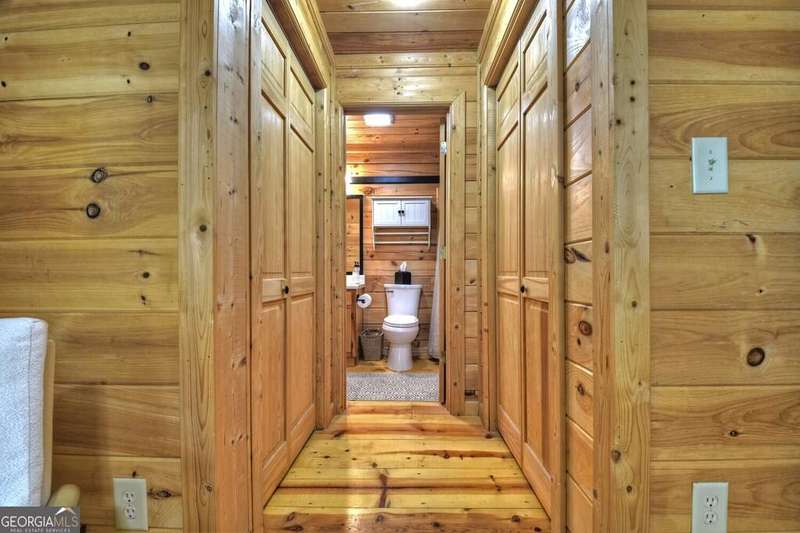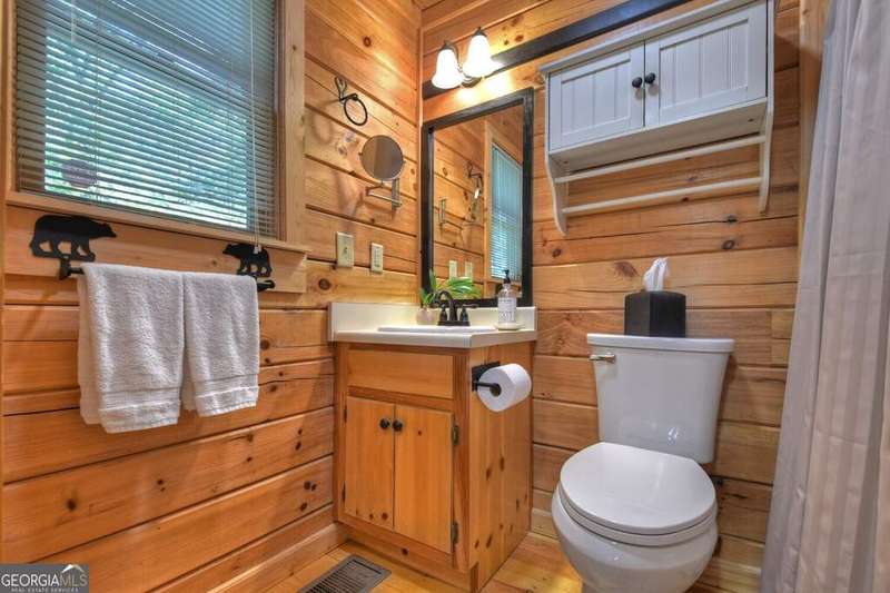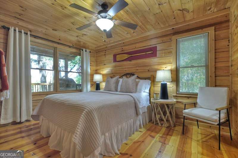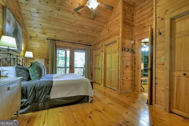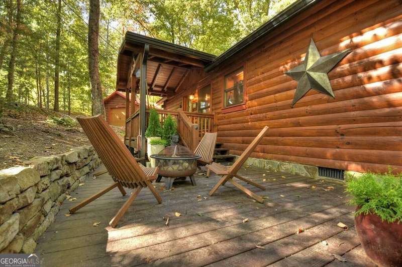 Nestled in the peaceful wooded setting of Cherry Log, this charming, cozy cabin offers the perfect retreat for nature lovers and those seeking tranquility. With its warm, rustic interior featuring all wood interior, a stone fireplace, and soft ambient lighting, the cabin exudes a welcoming, homely atmosphere. The open-concept living area connects seamlessly with a fully equipped kitchen with granite and stainless appliances, making it easy to relax and unwind after a day of exploring. The primary suite is a luxurious haven designed for comfort with high volume ceilings, large windows and 2 closets. Outside, a spacious and expansive deck overlooks the surrounding forest, providing the ideal spot for morning coffee or evening stargazing and features stepless entries and 1- car detached garage. Whether it's for a weekend getaway or a longer stay, this cabin promises comfort, serenity, and a true connection to nature.
