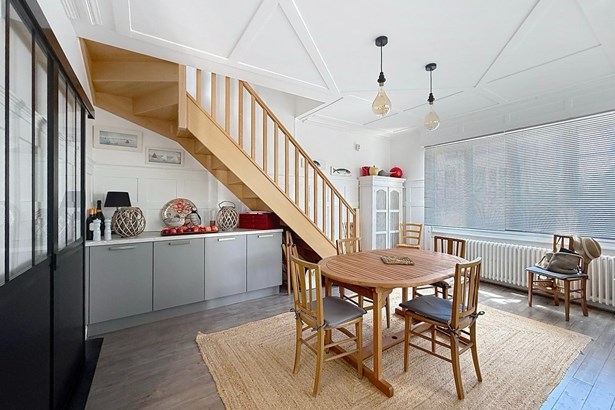 Ideally located close to shops and the beach, this carefully renovated character house spreads its bright and functional spaces over two levels. It offers a privileged living environment in the heart of Arcachon, combining modern comfort and authenticity.