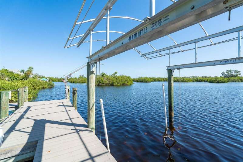 One or more photo(s) has been virtually staged. Welcome to coastal living at its finest. This beautiful 3-bedroom, 3-bath waterfront home is nestled on an oversized lot along scenic Godfrey Creek, offering serene views, exceptional privacy, and direct access to open water with just one fixed bridge. Boaters will appreciate the private dock, perfect for launching sunset cruises or day trips to the Gulf. Step into your private oasis featuring a oversized in-ground pool and a spacious screened lanai with a full pool bath, ideal for outdoor entertaining. The durable metal roof adds peace of mind, while the open floor plan effortlessly blends indoor and outdoor living. Located just minutes from Manasota Key and all three of its pristine beaches-Englewood Beach, Blind Pass Beach, and Stump Pass Beach, this home delivers the best of the Florida lifestyle. Whether you're enjoying a quiet morning on the water or entertaining guests in your tropical backyard retreat, 150 Crestview Dr offers the perfect blend of elegance, comfort, and coastal charm.