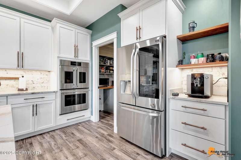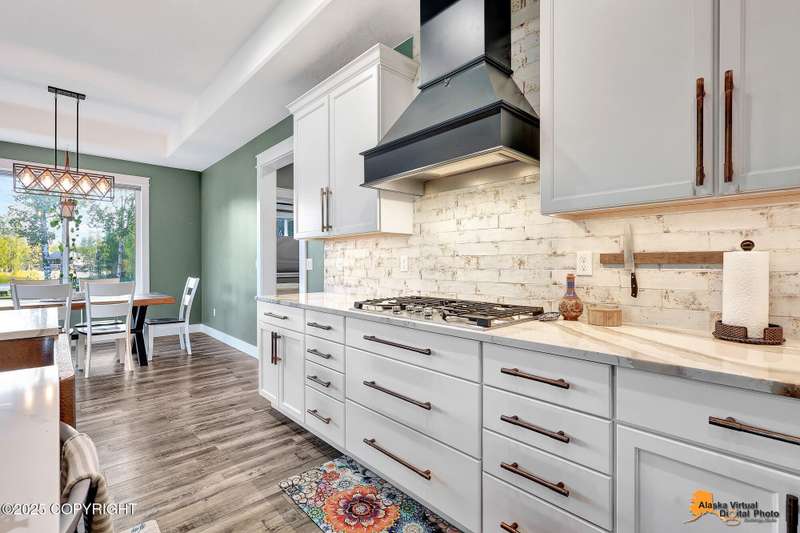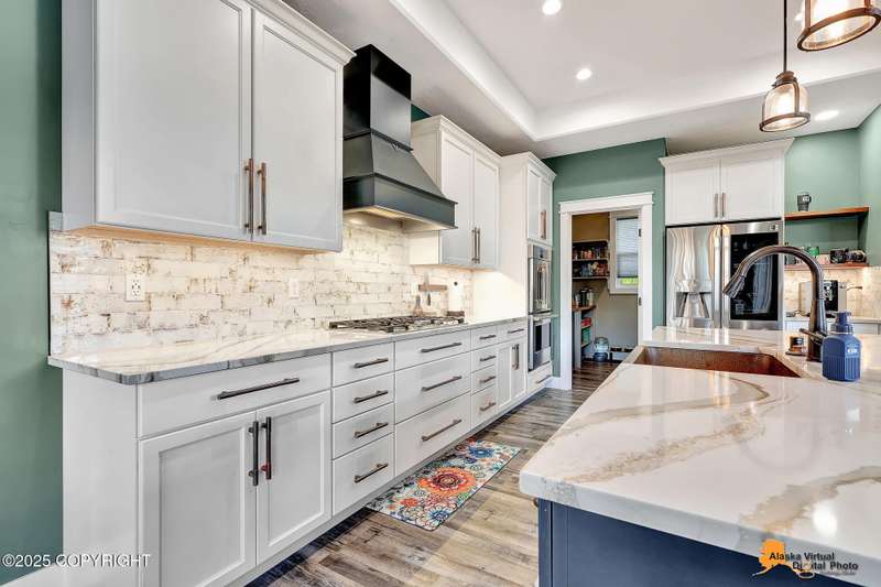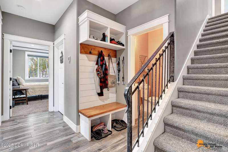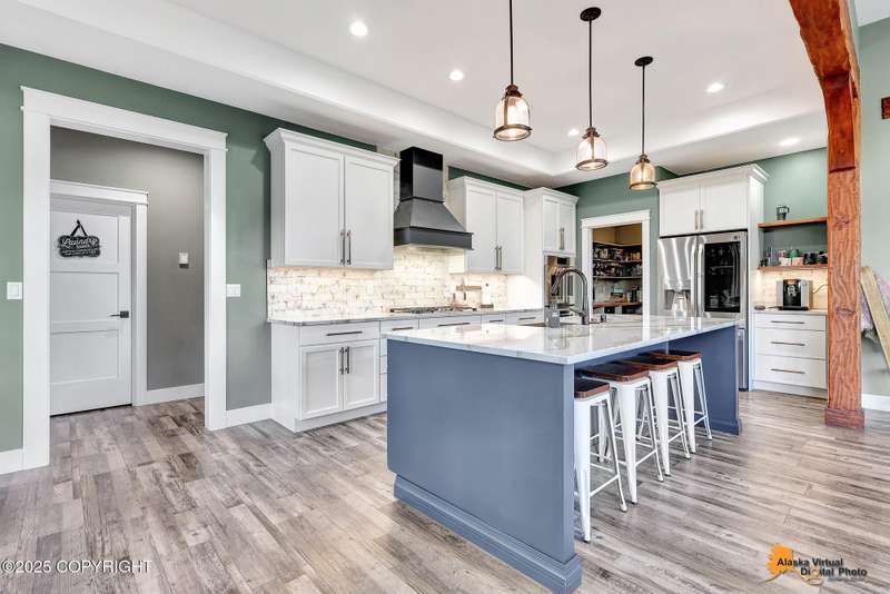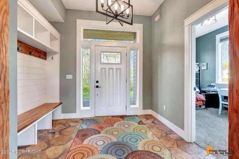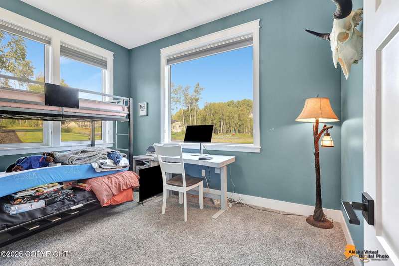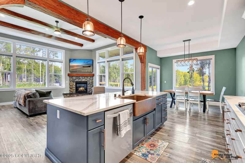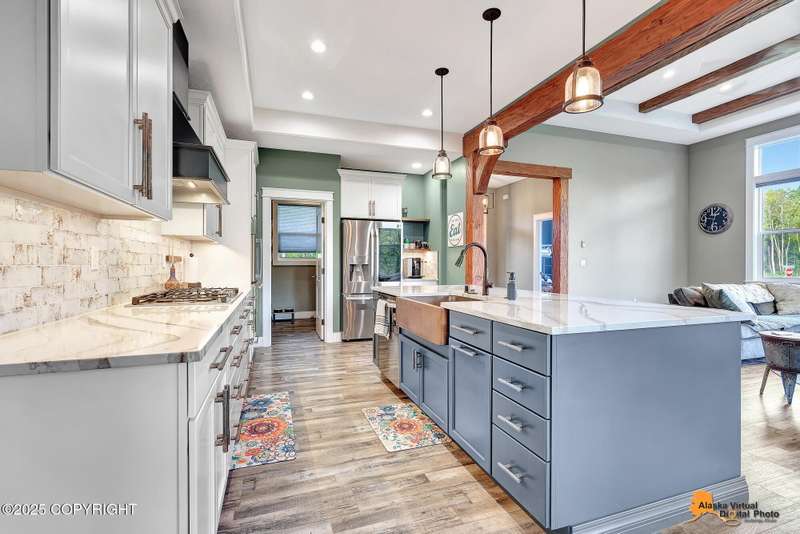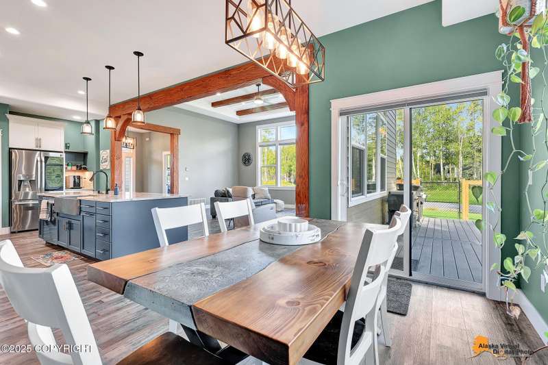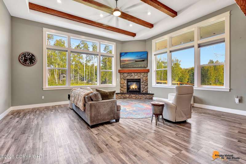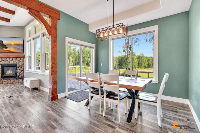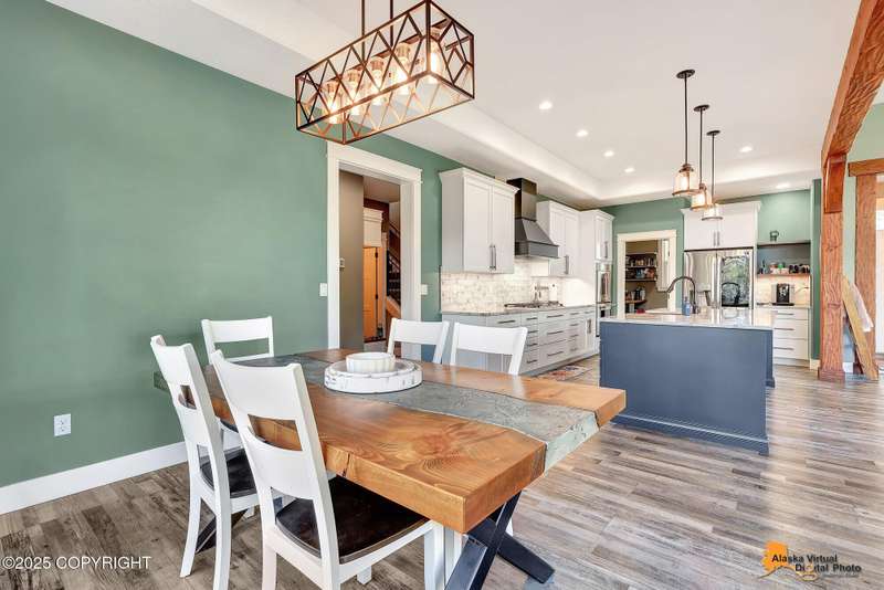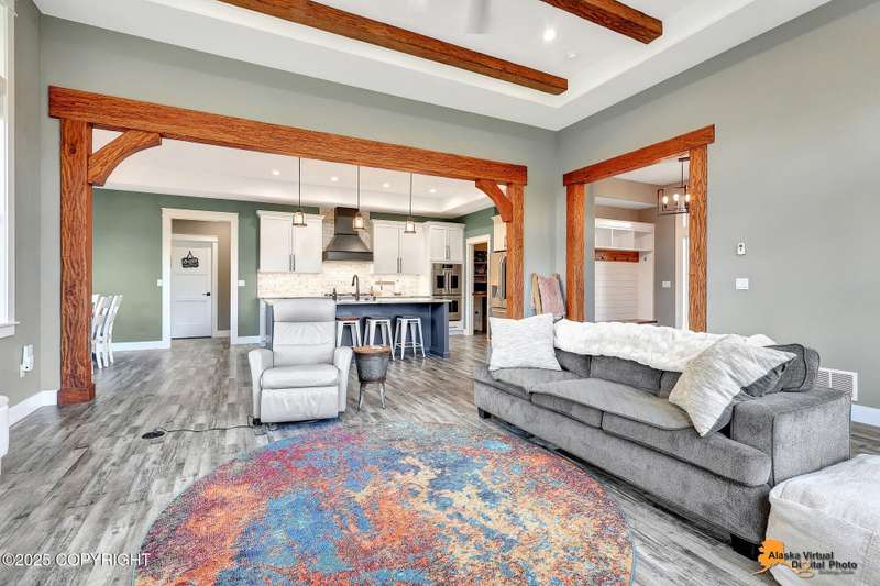 Welcome to this beautifully crafted 4 bedroom home located in one of the most prestigious neighborhoods in the Palmer Fishhook area. Built by award-winning JDL Design, this residence showcases exceptional craftsmanship and luxury finishes throughout. Step through the gorgeous timber-frame front entry into an open-concept living space featuring a cozy fireplace, spacious kitchen with walk-in pantry, and a 4th bedroom that could easily be used as a dedicated office or homeschool room. The luxurious main-floor primary suite offers a peaceful retreat, while large windows throughout the home capture beautiful mountain views. Upstairs, you'll find two oversized bedrooms, a full bath with copper accents, and a versatile bonus roomideal as a den, media room, or playroom. Outside, enjoy Alaska's beauty from your covered back deck, ideal for year-round enjoyment. The nicely landscaped and fully fenced backyard offers privacy and space to unwind. Additional features include extra RV parking, extensive paving, and an incredible 1,200 sq ft garage with a 42'' x 16' oversized third bayperfect for all your toys and storage needs. Don't miss this rare opportunity to own a truly exceptional home in one of Palmer's most sought-after neighborhoods.