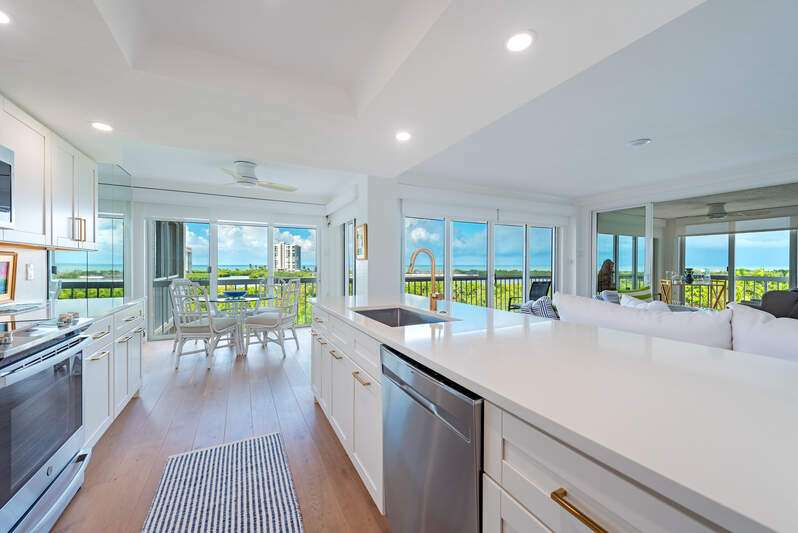 This stylishly renovated residence showcases breathtaking, panoramic GULF and BAY views, designed to maximize natural light and coastal living. Offering 2 Bedrooms + FLEX space and 2 Baths, the open floor plan features French oak flooring throughout the main living areas and a split-bedroom layout that ensures privacy for guests. St. Tropez welcomes you with its coastal-chic lobby and resort-style amenities, including two guest suites, a large pool with outdoor kitchen, social room, fitness room, and the benefit of a dedicated on-site property manager. Ideally located next to the Pelican Bay tram, you'll enjoy quick and effortless access to the BEACH. As a Pelican Bay resident, you'll experience unrivaled amenities: two beachfront restaurants/bars with attended service, a state-of-the-art fitness center, 18 Har-Tru tennis courts, kayaking, biking, a learning center, and miles of scenic nature paths. Artis-Naples, Waterside Shops, and Mercato are just minutes away!