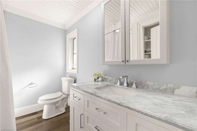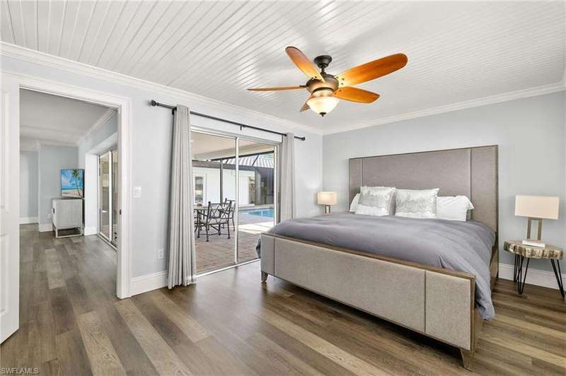 Discover your perfect oasis in this prime Marlin Drive location, just six lots from the beautiful Naples Bay. With a sun-drenched pool and highly coveted south-facing exposure, this property offers a luxurious and relaxing lifestyle. 15,000 on lift! Situated on a low-traffic street with easy access to Naples Bay, this home has been thoroughly updated in 2021 with a host of modern amenities. Upgrades include a new electrical panel, new AC unit, all new electric fixtures and switch plates, a fully renovated kitchen with stylish quartz countertops, induction flat surface stove top, new double oven and high-end appliances, including a large washer and dryer. Enjoy the convenience of new plumbing, a new hot water heater, fresh paint, crown molding, and custom wall woodwork including bead board ceilings. The property boasts a striking paver circular driveway and spacious outdoor living area with paver pool deck. The heated pool was resurfaced, with coping/edging and vibrant colored lighting. Boaters will love the quick, no-bridge access to the Gulf of Mexico, and the dock features new pilings, and new lift as of 2021. The interior of the property features modern design and decor throughout with beautiful white quartz countertops, modern white cabinetry, stainless appliances, and an open floor from the interior living to the outdoor living space Enjoy partial Bay views and marvel at sunsets or fireworks from Naples Pier during the Fourth of July. This is one of the last opportunities on Marlin Drive to own a south-facing lot with potential to build your dream home in the future. Ideally located just minutes from downtown 5th Avenue South and 3rd Street South's fine dining, world-class shopping, entertainment, and white sand beaches, this home offers the best of Naples living. Don't miss this chance to own a slice of paradise!