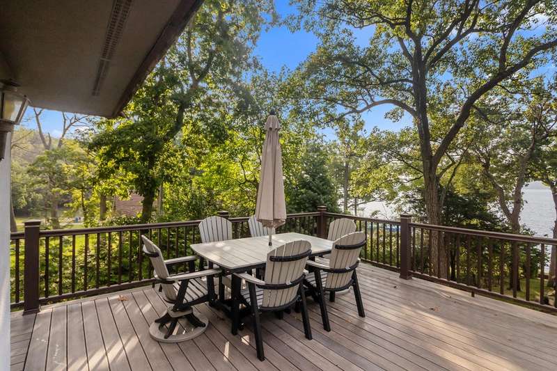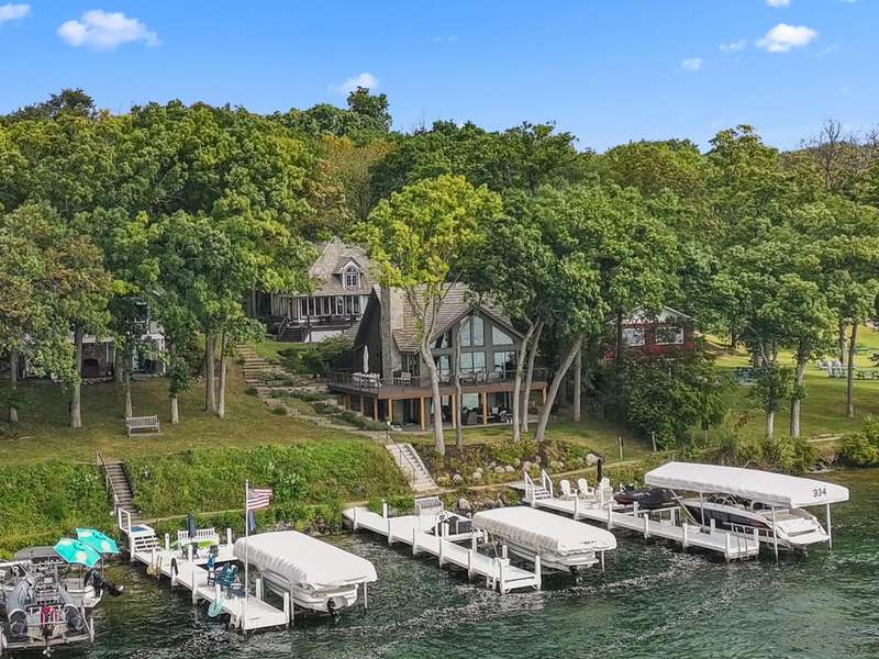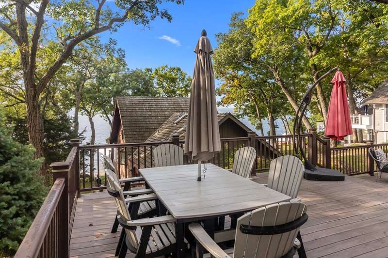 Welcome to Dartmouth Woods, an exclusive enclave of 9 homes tucked into 11 acres of greenspace with mature trees and coveted Geneva Lake frontage. Enjoy unparalleled access to the water with your private pier, designed to accommodate both a boat and wave runner, along with an additional buoy. This home makes an impression from the moment you arrive, with timeless curb appeal and captivating lake views from multiple vantage points. Inside, soaring ceilings in the great room create an elegant, light-filled ambiance. Outdoors, a newly constructed, maintenance-free wraparound deck offers multiple entertainment zones for seamless indoor-outdoor living. The walkout lower level extends the experience with access to a screened porch, perfect for enjoying tranquil lake breezes. One car garage.