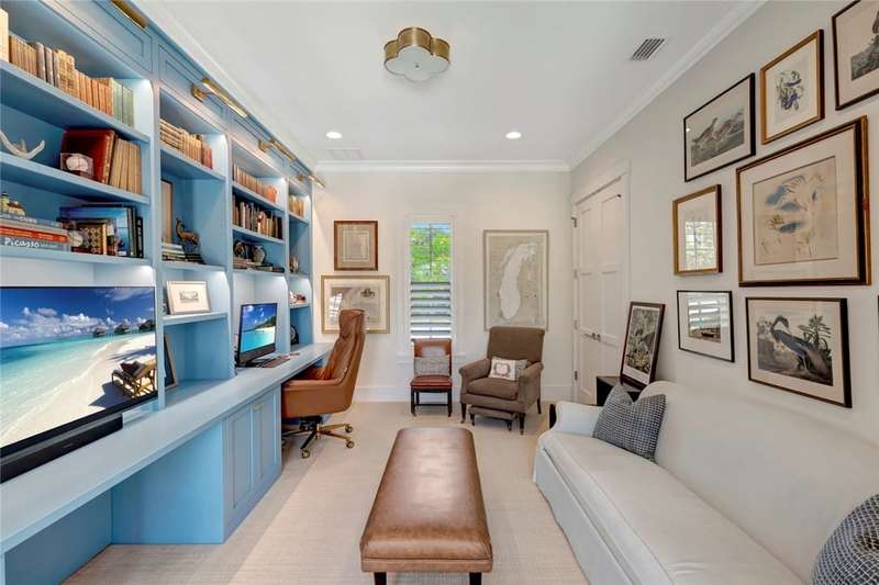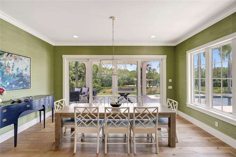 Enjoy serene canal, river, and Intracoastal views from this beautifully designed waterfront residence. Located in a secure gated community, this home blends refined indoor living with inviting outdoor spaces. The open interior boasts elegant finishes, crown molding, high ceilings, a gourmet island kitchen, and wet bar. Step outside to a private oasis featuring a fenced pool, covered porch, balcony, and lush landscaping. With direct access to the canal and Intracoastal, this home is perfect for boating enthusiasts or those seeking tranquil water views. Sizes approx./subject to error.