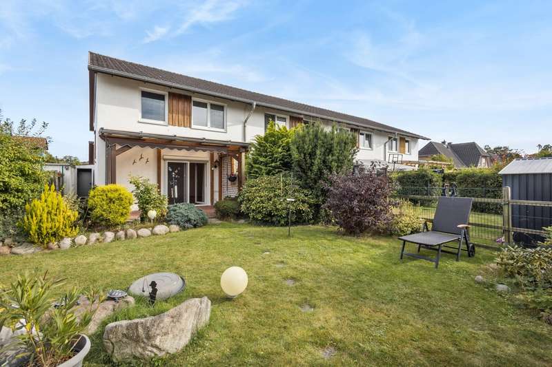 Well-maintained end-terrace house from around 1998, designed as a four-party terraced house. It is located in a quiet, family-friendly residential area and is about 500 meters from Schneverdingen town center, so that shopping facilities, schools and public amenities are easily accessible. The plot covers approx. 325 m². A garage with a paved driveway and a well-kept front garden create an inviting first impression. Behind the house there is a separate garden area with a garden pavilion, which is ideal for relaxation, garden parties or children's and hobby activities. The covered terrace offers a wide range of possibilities. On the first floor, you will find a hallway that leads to all rooms. The country-style kitchen impresses with its stylish character and offers enough space for a modern kitchen unit as well as an area for cooking together. The spacious living and dining area creates a friendly, homely atmosphere thanks to its open design; from here you have direct access to the terrace and garden - ideal for al fresco dining, barbecues or cozy evenings outdoors. There is also a practical guest WC and a utility room that can be used in a variety of ways, whether for laundry, supplies or additional storage space. You can reach the upper floor via a robust wooden staircase. A good-sized sleeping area and two children's/study rooms await you here, which can be used flexibly as bedrooms, playrooms or workspaces. A full bathroom with whirlpool bath rounds off the upper floor harmoniously and invites you to relax. A walk-in attic offers plenty of storage space and serves as an ideal expansion reserve. It can also be extended according to project or use, for example for an office, a guest room or a hobby room. Additional information: The location is quiet and family-friendly with a good neighborhood. Shopping facilities, schools and public transport are easily accessible. The house offers potential for individual design and is ideal for families, couples or investors looking for space for development. I would be happy to provide further information or arrange a viewing. I look forward to your inquiry!