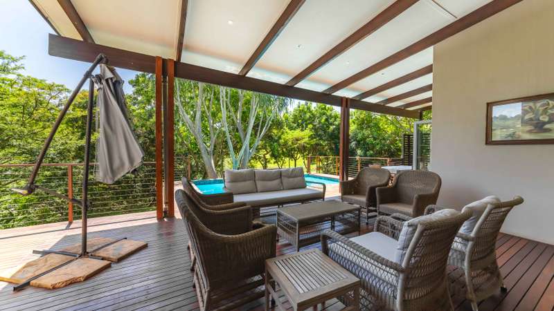 SOLE MANDATE! Nestled within the serene embrace of the picturesque Simbithi Eco Estate lies an exquisite 6-bedroom home, cradled within a lush valley. This stunning property, set upon a sprawling stand, offers a tranquil sanctuary with breathtaking views overlooking one of Simbithi's pristine dams, creating an idyllic backdrop for everyday living. Adjacent to enchanting walking trails, this residence seamlessly blends luxury with nature's beauty, inviting residents to indulge in a lifestyle of both serenity and adventure. Boasting 5 bathrooms, a home office, and a homely kitchen, this meticulously designed home caters to both comfort and practicality. The heart of the home opens onto a beautiful patio adorned with a sparkling pool, perfect for basking in the warm sun or entertaining guests against the backdrop of verdant surroundings. With a double garage ensuring convenience and security, every aspect of this property is crafted to provide a harmonious living experience, where the distinction between indoor elegance and outdoor splendor fades into a seamless continuum of tranquil living. Welcome home to a haven where luxury, nature, and sophistication converge to create an unparalleled living experience in the heart of Simbithi's enchanting landscape.