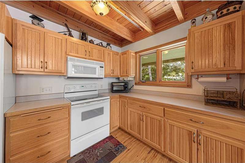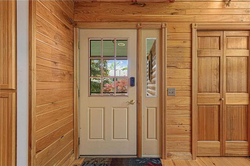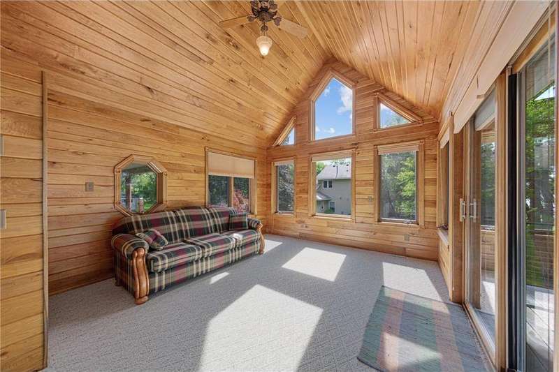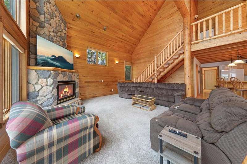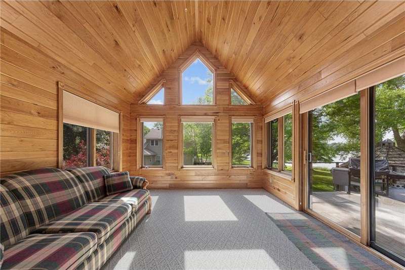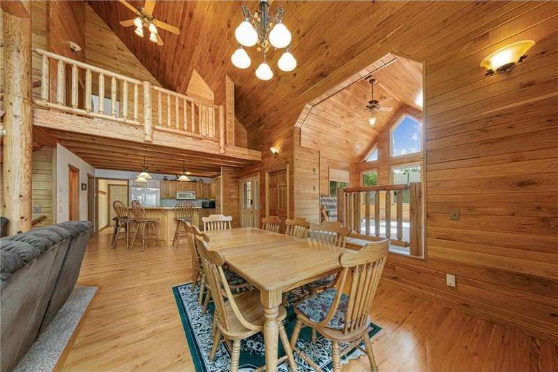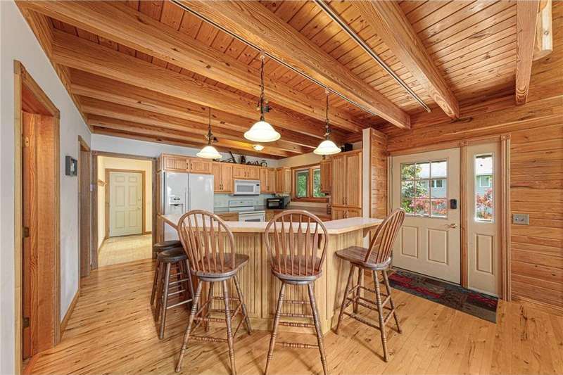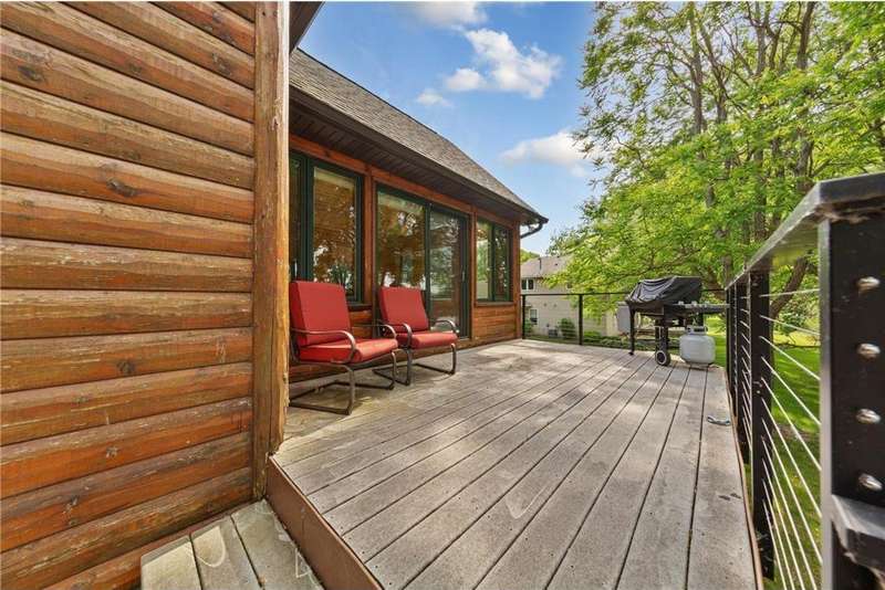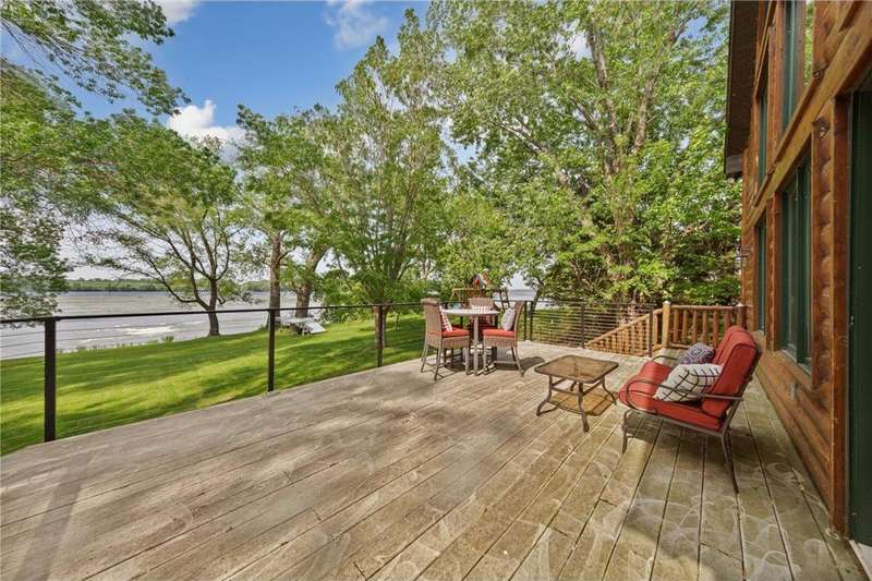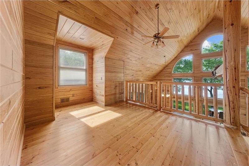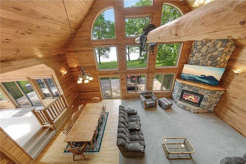 With picturesque views, this grand log cabin home offers the perfect blend of rustic charm and modern comfort! Nestled on the serene shores of Cannon Lake surrounded by towering pines and lush greenery, the home boast expansive windows that provide breathtaking views of the water and flood the interior with natural light! Crafted from rich hand sawn logs, the home features a spacious open floor plan with vaulted ceilings, a stone fireplace, and exposed wooden beams that add warmth and character. The kitchen is fully equipped with an island making it ideal for both quiet family meals and entertaining guest. Step outside onto the oversized deck to enjoy morning coffee with the sounds of nature, or host gatherings that spill out into the beautiful backyard. Just steps from the house a charming wooden gazebo sits nestled among the trees- perfect for lazy afternoons, outdoor dining, or evening stargazing by the water! With direct lake access for boating, fishing, or simply relaxing on the private dock, this property is a peaceful retreat that captures the essence of lakeside living. And we can't forget the potential of the partially finished basement. With separate auxiliary heat in the basement and garage floors, one can only enhance the comforts of this stunning home! Don't miss out on seeing this one up close!