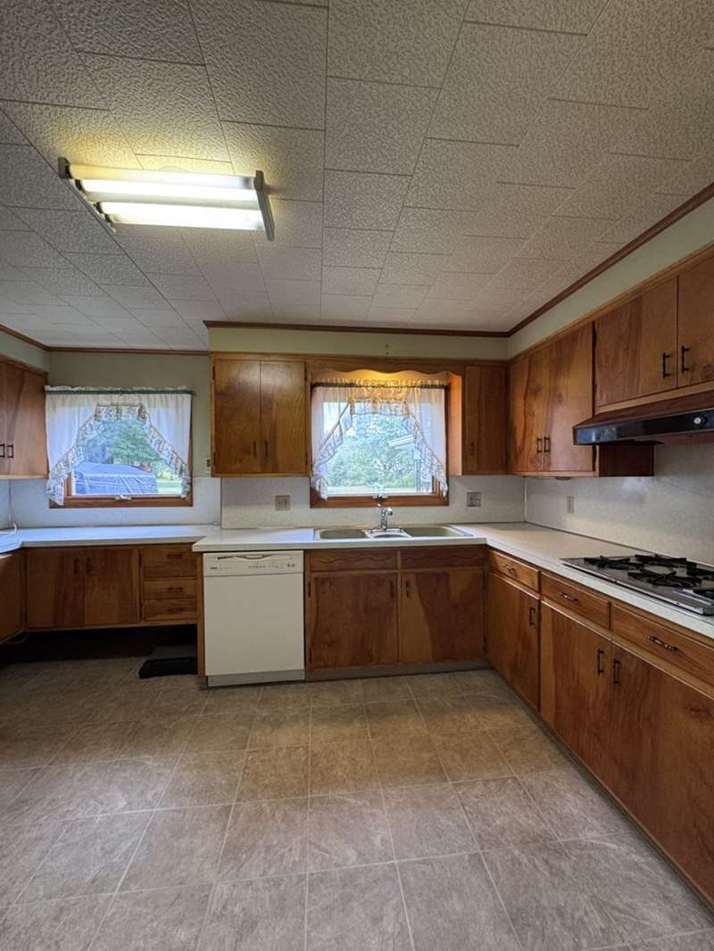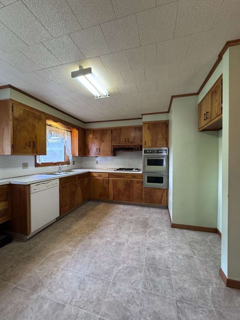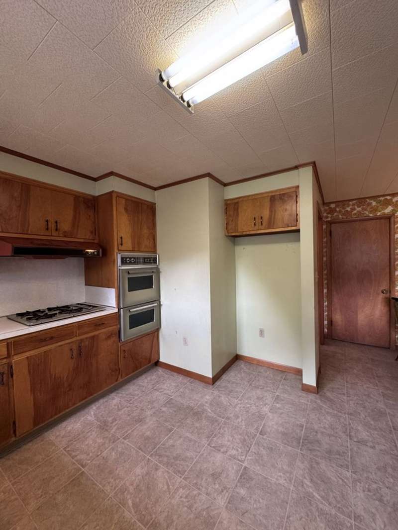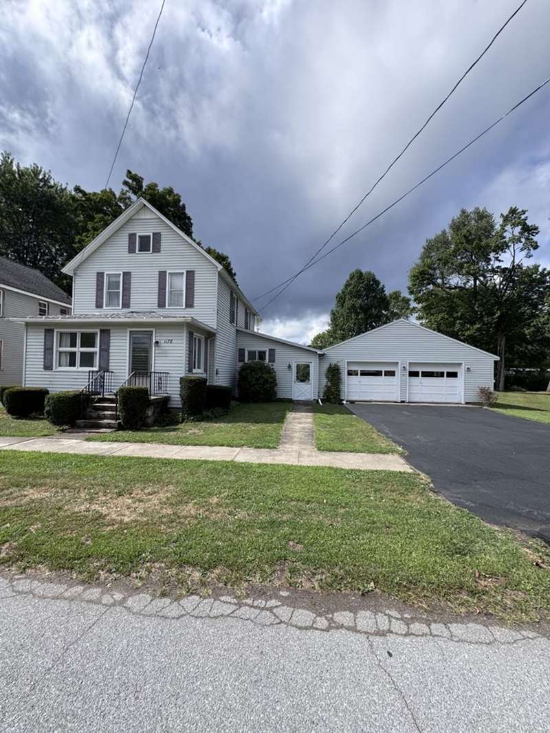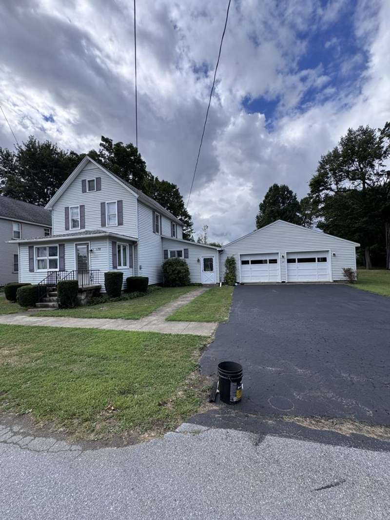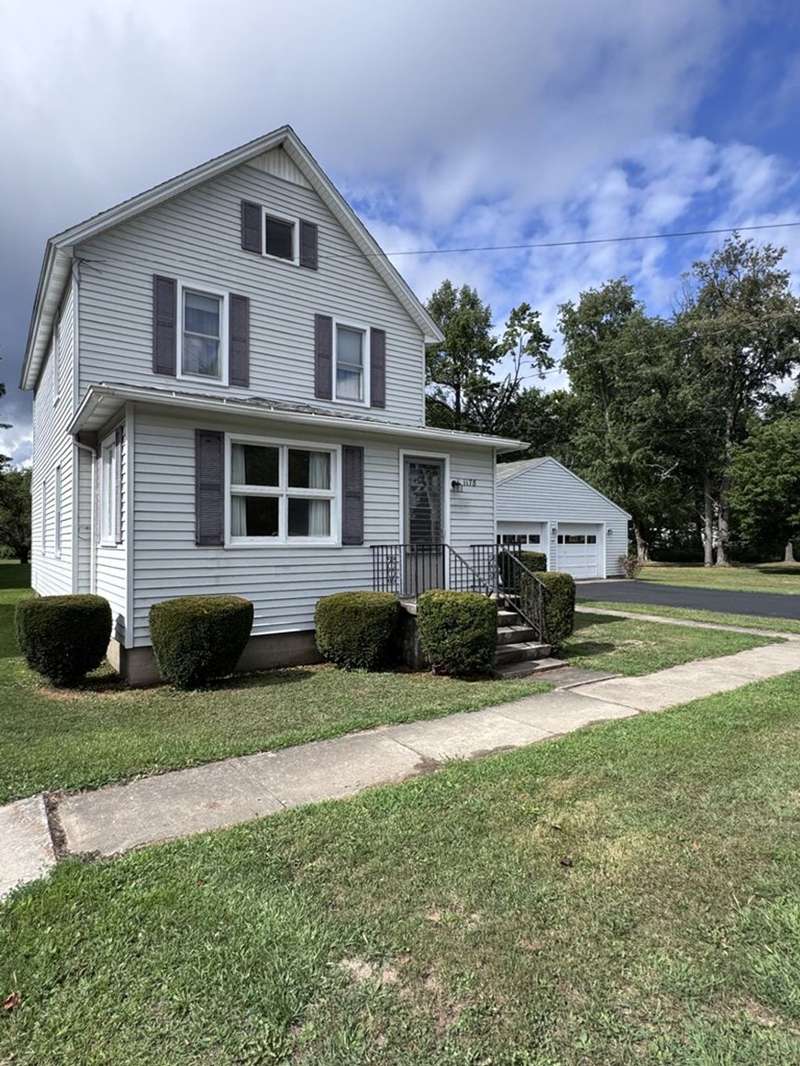 Large level lot containing 1.38 acres beside a gently flowing stream. Inside, discover a warm and inviting atmosphere, ideal for both relaxation and entertaining. This charming two-story home has three bedrooms/full bathroom. Custom made solid wood kitchen cabinets with appliances. Numerous closets throughout the home. This property features a spacious, oversized two-car garage, perfect for hobbyists or extra storage, and a sleek blacktop driveway that enhances its curb appeal. Attached to the garage is an additional storage area with garage door. Concrete patio between the home and the garage. The front enclosed porch needs additional supports to be replaced or repaired. The large level lot gives ample space for a pool. Hard to find a large lot as this in town. Call today.
