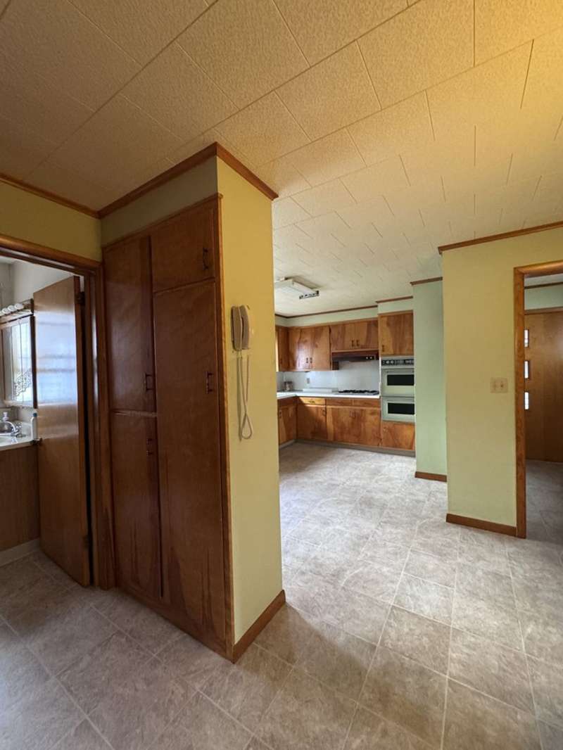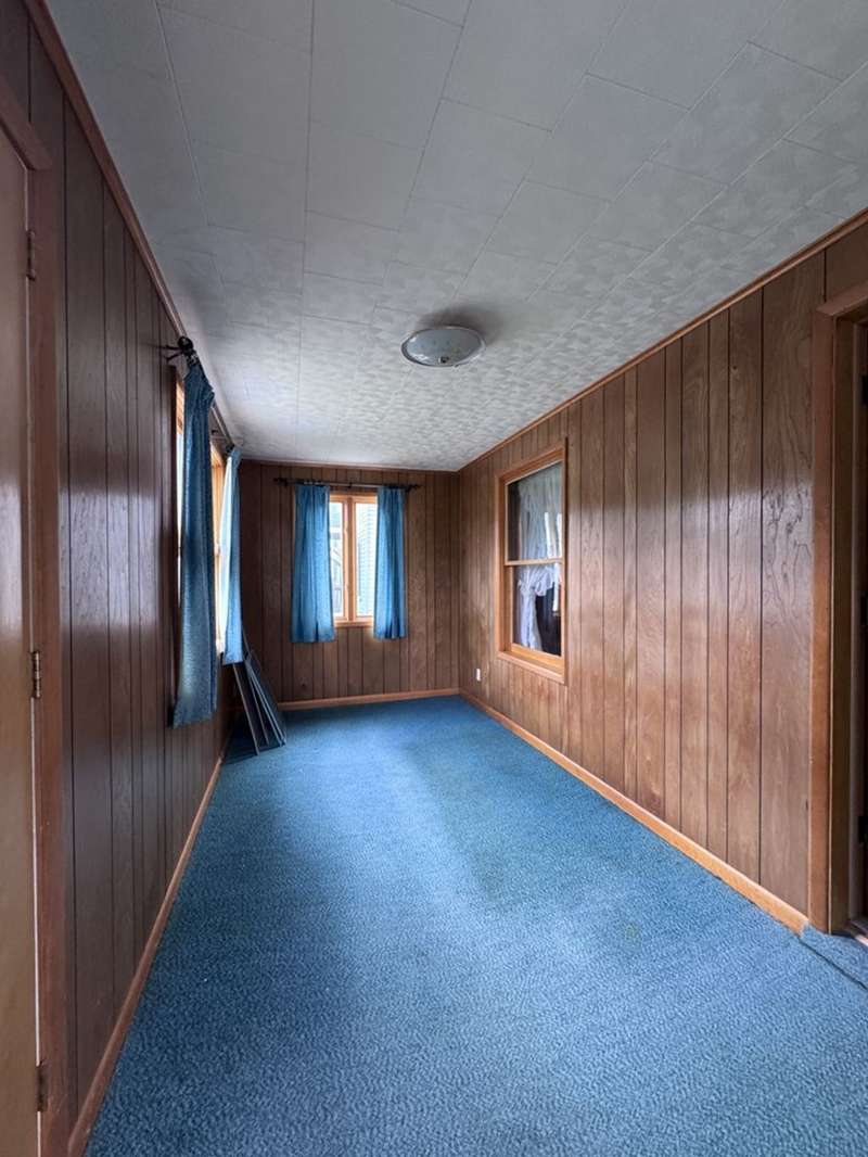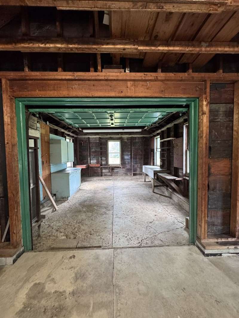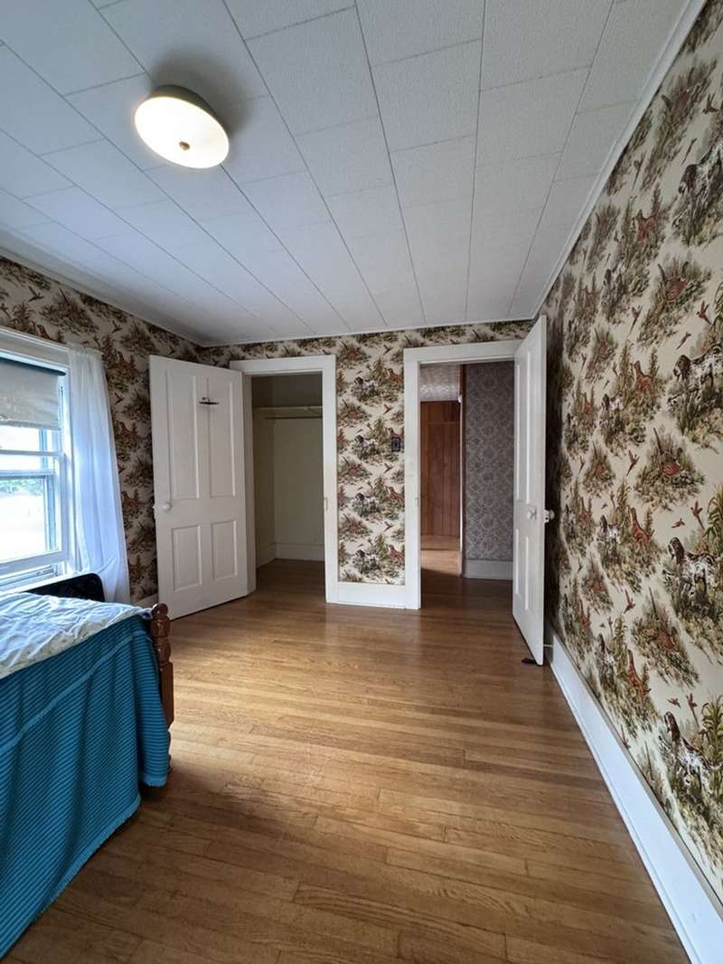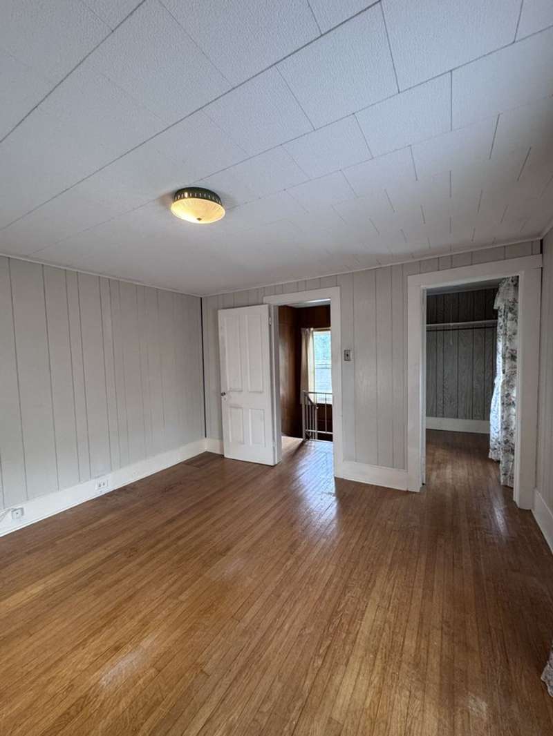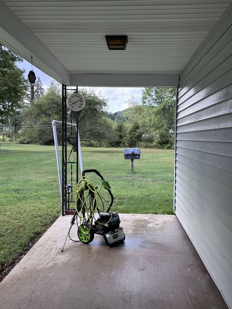Large level lot containing 1.38 acres beside a gently flowing stream. Inside, discover a warm and inviting atmosphere, ideal for both relaxation and entertaining. This charming two-story home has three bedrooms/full bathroom. Custom made solid wood kitchen cabinets with appliances. Numerous closets throughout the home. This property features a spacious, oversized two-car garage, perfect for hobbyists or extra storage, and a sleek blacktop driveway that enhances its curb appeal. Attached to the garage is an additional storage area with garage door. Concrete patio between the home and the garage. The front enclosed porch needs additional supports to be replaced or repaired. The large level lot gives ample space for a pool. Hard to find a large lot as this in town. Call today.