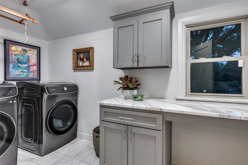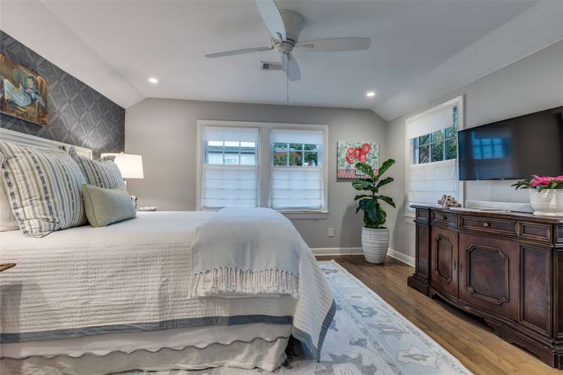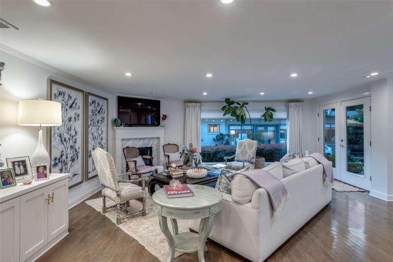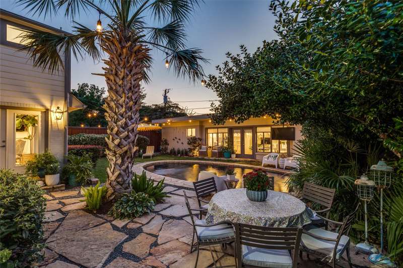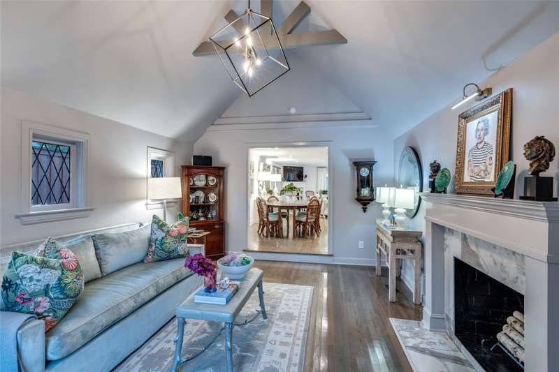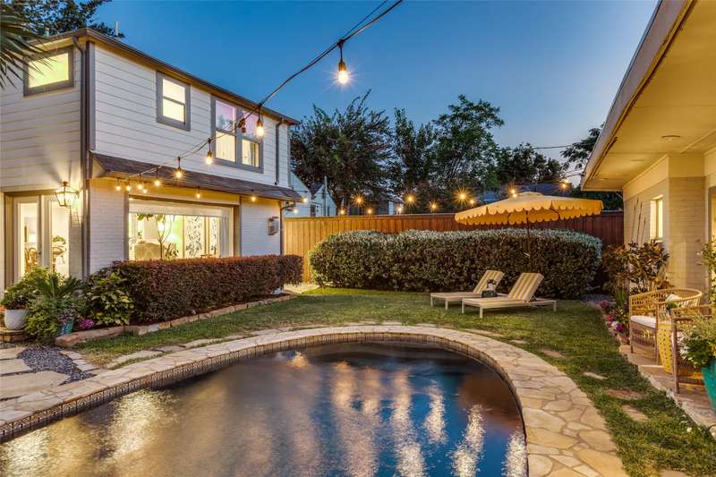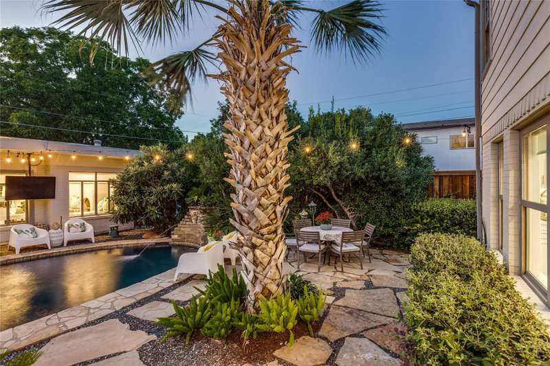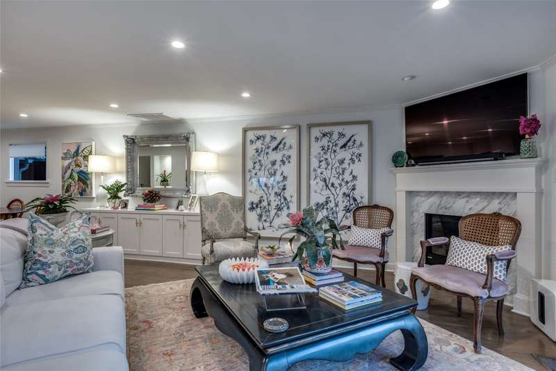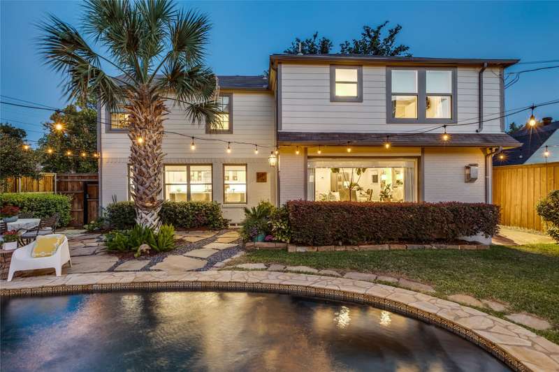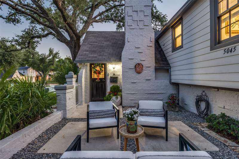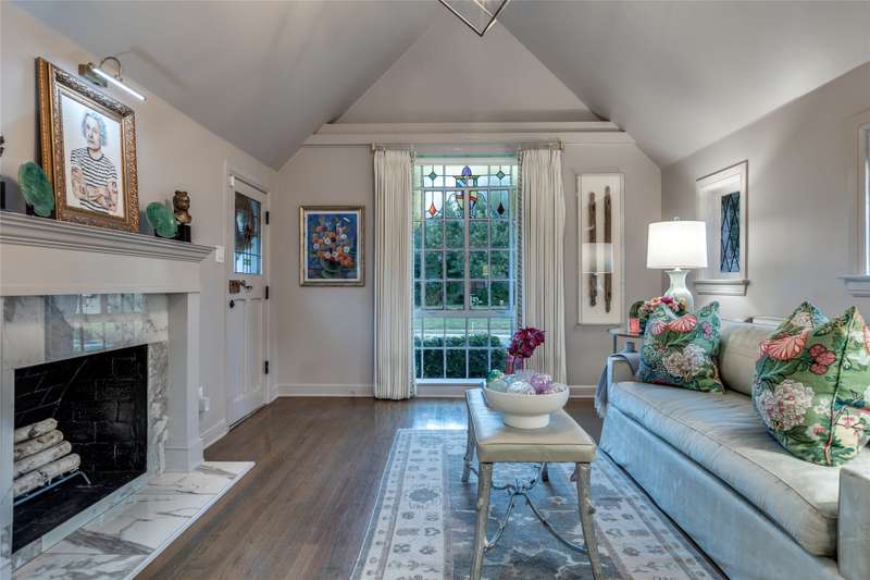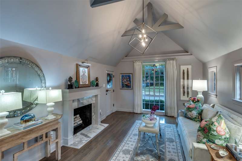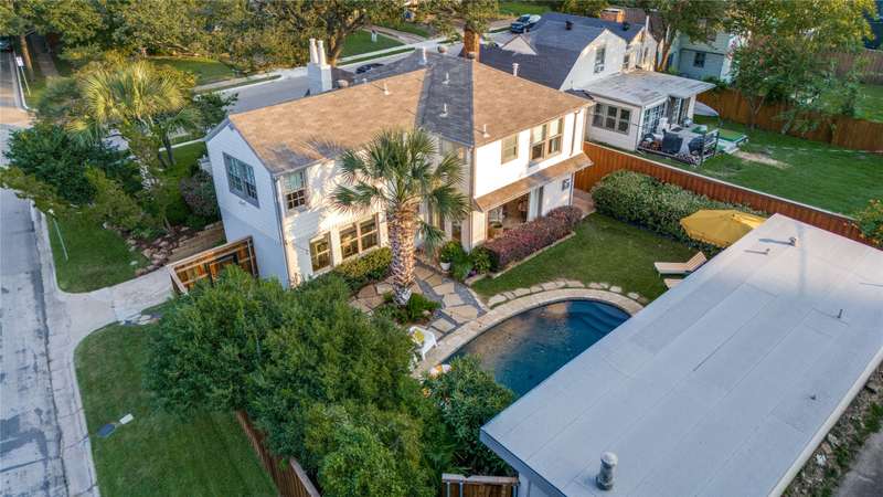 This Tudor home is a rare Charles Dilbeck design, reimagined in 2018 to embrace modern living while preserving its architectural soul. From the moment you arrive, the professionally landscaped gardens and gated stone patio set a tone of privacy and warmth, inviting you inside. Through the whimsical stained-glass front door, the formal living room unfolds like a page from a storybook. A soaring vaulted ceiling with exposed beams frames the space, where hardwood floors gleam through a breathtaking 1956 floor-to-ceiling stained-glass window. A marble fireplace anchors the room, offering both elegance and comfort.The heart of the home is the open family room and chefs kitchenspaces designed for gathering and entertaining. Here, the views stretch to the backyard oasis. The kitchen itself is a culinary dream: Calcutta white marble countertops and a waterfall island with seating for six, professional-grade Bertazzoni appliances, custom cabinetry, a built-in Fisher & Paykel refrigerator, and thoughtful details like a walk-in pantry, coffee bar, and solar shades. Beyond the French doors, the outdoors beckon. A sparkling pool crowned with a Poseidon water fountain, surrounded by flagstone walkways and patio, a full bath cabana, and lush landscaping. Upstairs, the primary suite is a sanctuary of its own. Vaulted ceiling and recessed lighting create a sense of serenity, while dual walk-in closets with custom built-ins offer convenience. The spa-inspired bath feels indulgent with soft blue cabinetry, double vanities topped in white marble, a soaking tub, and a walk-in shower. Two additional bedrooms, a full bath, a laundry room, and a versatile office or third living space complete the upper level, offering room to grow, work, and retreat. Centrally located, this home places you just moments from Dallass most beloved amenitiesacclaimed restaurants, vibrant nightlife, serene parks, and the Katy Trail.This residence is ready to welcome its next chapter of memories!
