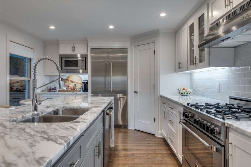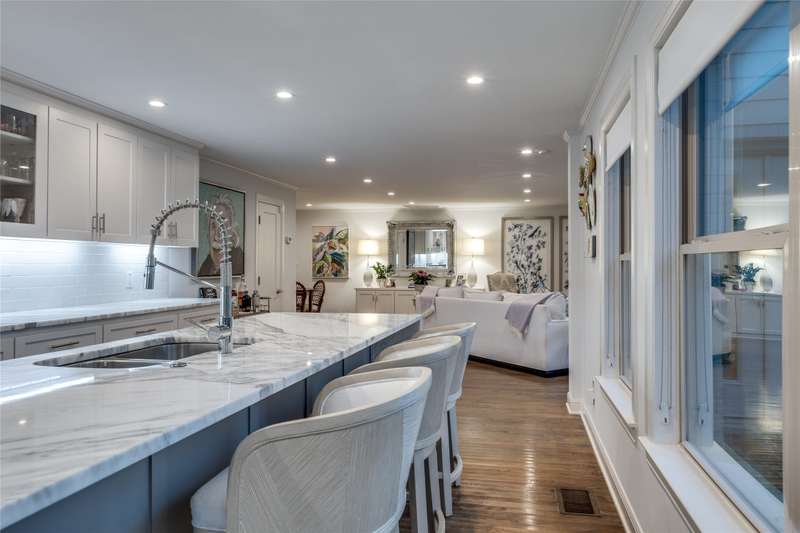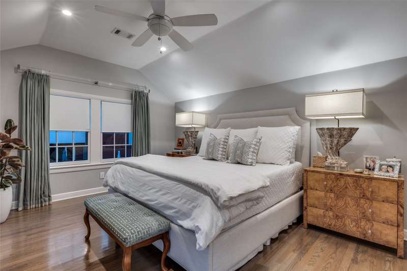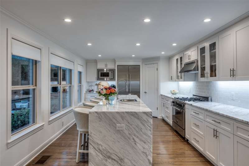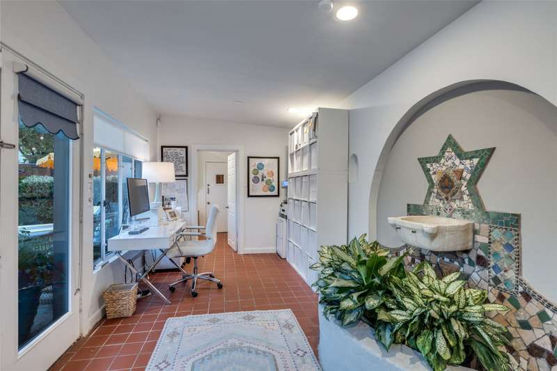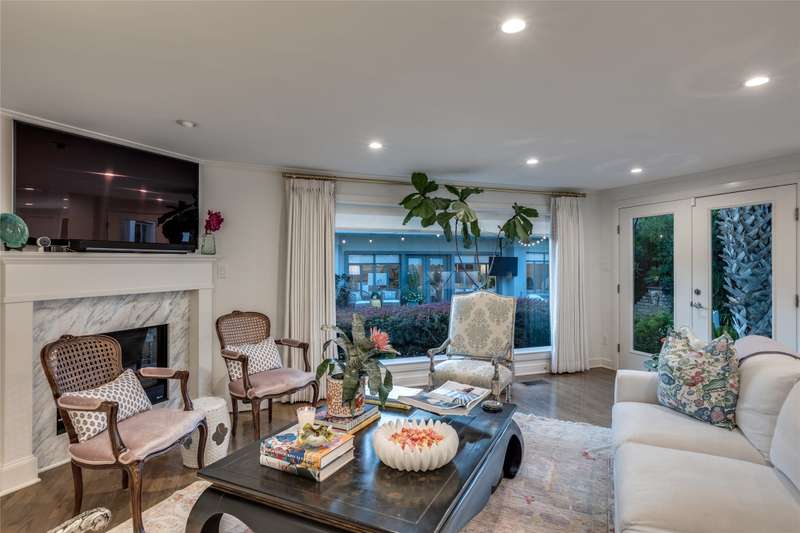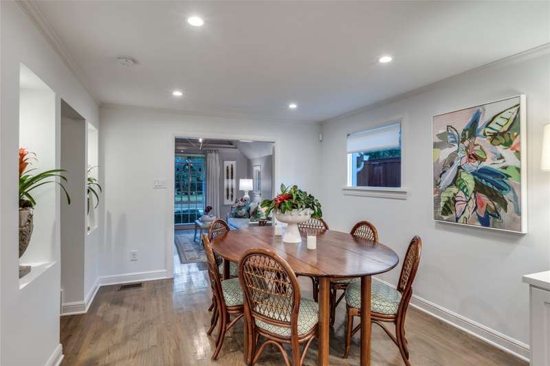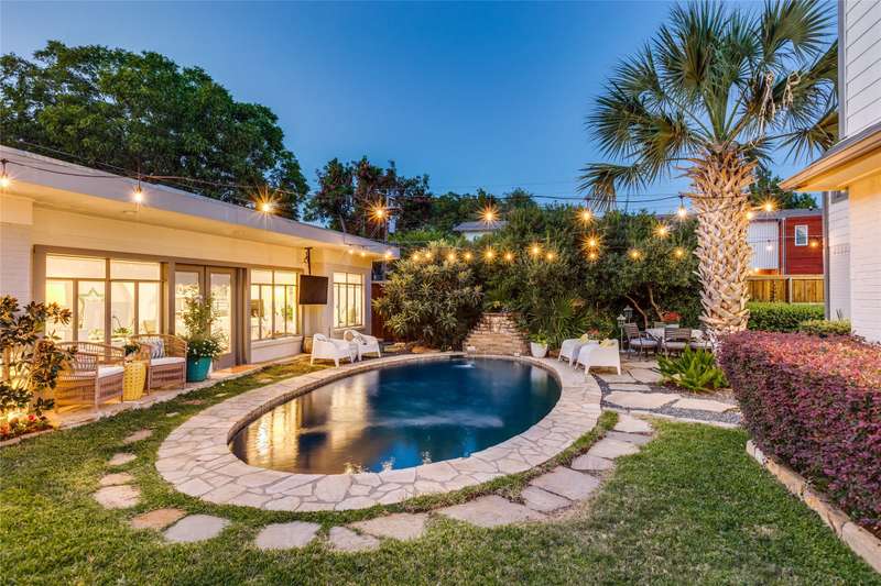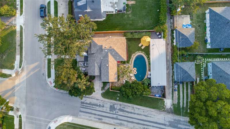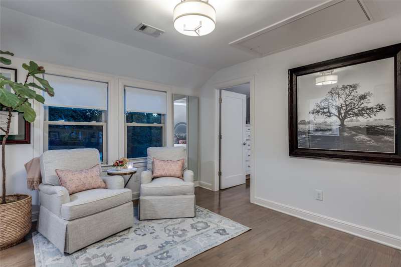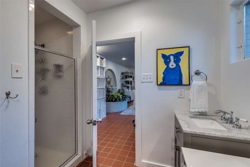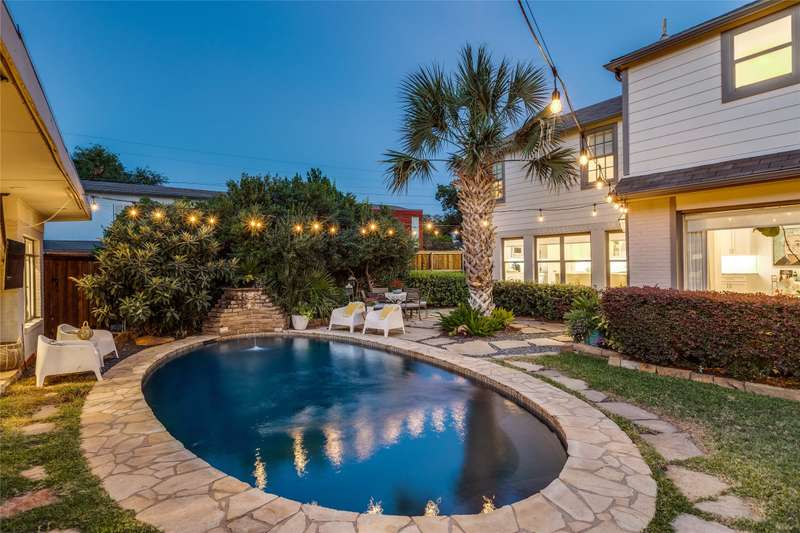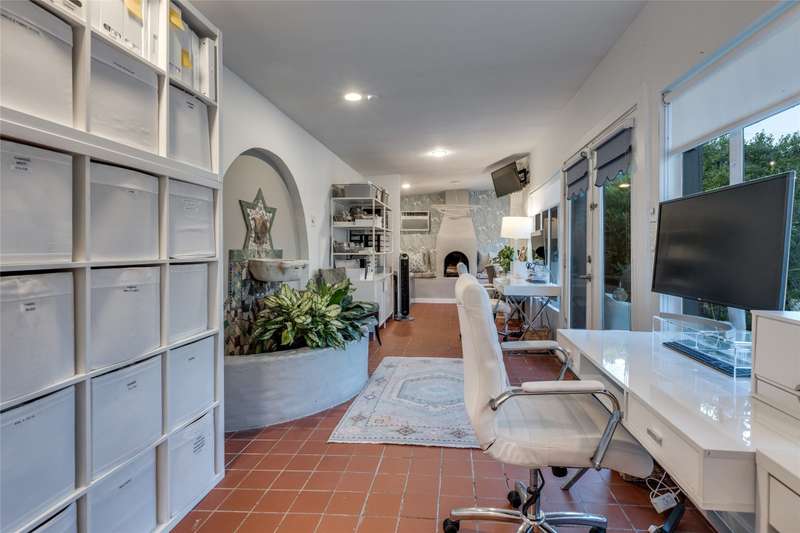 This Tudor home is a rare Charles Dilbeck design, reimagined in 2018 to embrace modern living while preserving its architectural soul. From the moment you arrive, the professionally landscaped gardens and gated stone patio set a tone of privacy and warmth, inviting you inside. Through the whimsical stained-glass front door, the formal living room unfolds like a page from a storybook. A soaring vaulted ceiling with exposed beams frames the space, where hardwood floors gleam through a breathtaking 1956 floor-to-ceiling stained-glass window. A marble fireplace anchors the room, offering both elegance and comfort.The heart of the home is the open family room and chefs kitchenspaces designed for gathering and entertaining. Here, the views stretch to the backyard oasis. The kitchen itself is a culinary dream: Calcutta white marble countertops and a waterfall island with seating for six, professional-grade Bertazzoni appliances, custom cabinetry, a built-in Fisher & Paykel refrigerator, and thoughtful details like a walk-in pantry, coffee bar, and solar shades. Beyond the French doors, the outdoors beckon. A sparkling pool crowned with a Poseidon water fountain, surrounded by flagstone walkways and patio, a full bath cabana, and lush landscaping. Upstairs, the primary suite is a sanctuary of its own. Vaulted ceiling and recessed lighting create a sense of serenity, while dual walk-in closets with custom built-ins offer convenience. The spa-inspired bath feels indulgent with soft blue cabinetry, double vanities topped in white marble, a soaking tub, and a walk-in shower. Two additional bedrooms, a full bath, a laundry room, and a versatile office or third living space complete the upper level, offering room to grow, work, and retreat. Centrally located, this home places you just moments from Dallass most beloved amenitiesacclaimed restaurants, vibrant nightlife, serene parks, and the Katy Trail.This residence is ready to welcome its next chapter of memories!