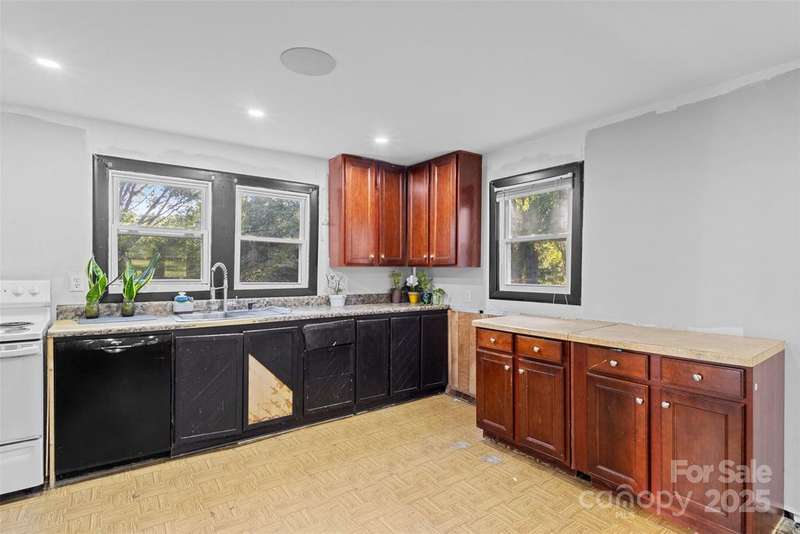 Calling for investors and homebuyers looking to build instant EQUITY. This property presents a rare opportunity on an expansive 0.52 acre lot, offering privacy and endless possibilities. Step inside to discover an open-concept living space, where the living room, dining room and kitchen flow together. The kitchen is ready for complete transformation, allowing you to design the culinary space of your dreams. With some walls already removed to create the open layout, the home is prepped for you to install seamless flooring.The open concept living area and kitchen are equipped with flush-mouth in-ceilling speakers, perfect for creating an immersive audio experience without the clutter of wires.This property offers an incredible half-acre lot, providing ample space for gardening, entertaining, or future expansion. A large detached shed offers excellent storage for tools, equipment or could be converted into a workshop.