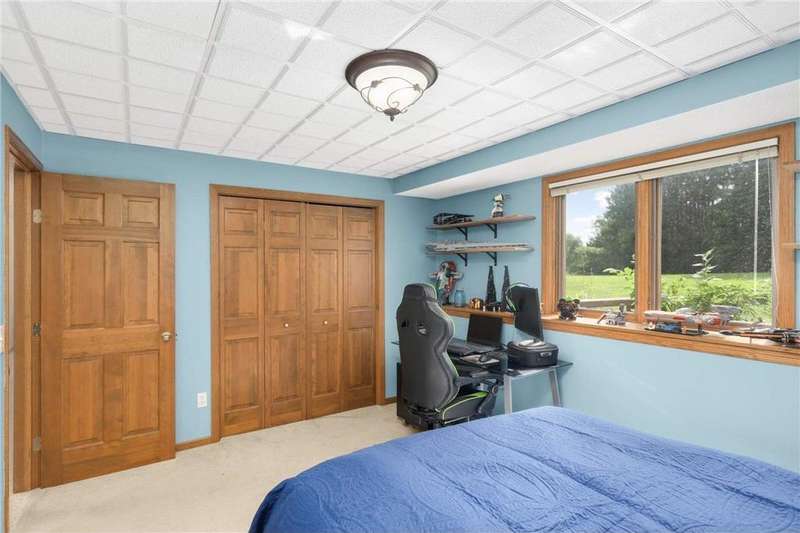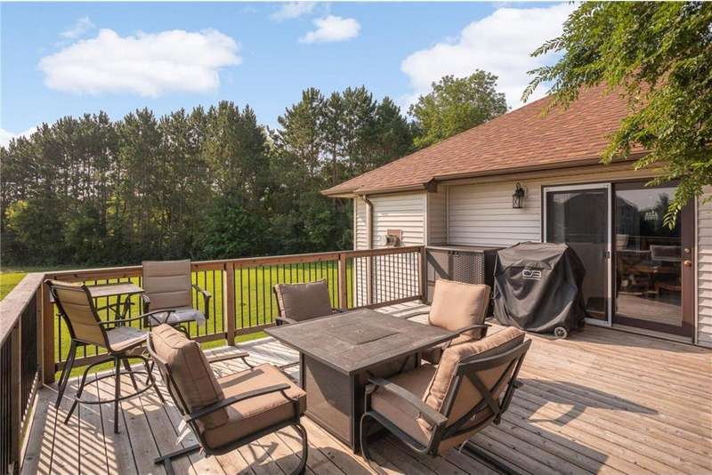 Step into tranquility with this stunning walk-out rambler, gracefully perched on a peaceful dead-end road in the sought-after Hampstead On The River neighborhood, set on an expansive, private two-acre canvas. As you enter, a welcoming foyer leads effortlessly into the heart of the home—a beautifully appointed, eat-in kitchen. Bright and inviting, this space opens into the formal dining area and flows seamlessly into the living room, where a glowing fireplace creates a warm, intimate gathering spot. Your sanctuary awaits in the thoughtfully designed primary suite, complete with a spacious walk-in closet and a well-appointed full bath. Nearby, the second bedroom, a ¾ bath, mudroom, and convenient laundry room add daily practicality. Descend to the walk-out lower level to discover two additional bedrooms, a generous family room featuring a cozy gas fireplace, a ¾ bath, and a versatile workout area that is primed to be transformed into a home theater, office, or creative studio. With extra storage space in the oversized three stall garage, every inch of this home is both functional and inviting. Outside, entertain or unwind on the newer deck while enjoying the serene setting and plenty of yard space—perfect for gardening, leisure, and creating memories. Schedule your private tour today!