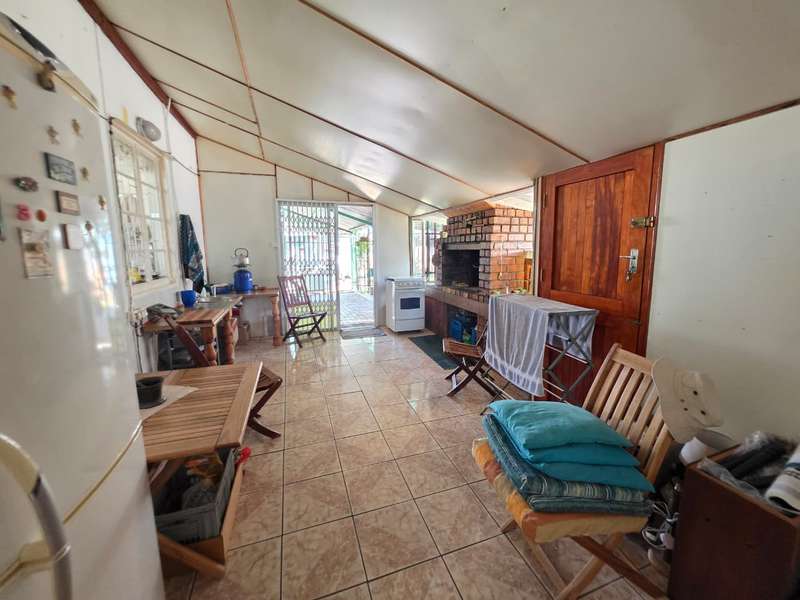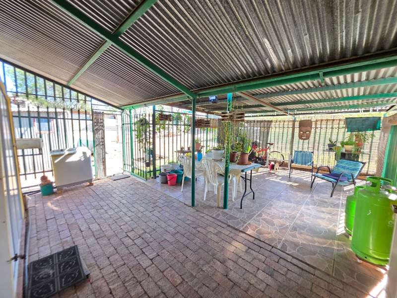 Step into this inviting three-bedroom Nutec home, set on a generous in-town plot that gives you all the breathing space a family could want. Designed for easy, everyday living, the layout balances comfort with convenience. At its heart is a well-sized kitchen that feels like the home’s gathering point, while the dining room and enclosed porch offer sunny spots to relax or host friends. The dedicated braai room, complete with its own bathroom, makes entertaining effortless and when the weather turns, the enclosed backyard entertainment area keeps the good times going. Practicality is built in: two bathrooms serve the home, a solar geyser helps cut costs, and burglar bars on all windows add peace of mind. Outside, you’ll find two carports and a single garage, providing plenty of parking and storage. Please note: water tanks are not included in the sale. This property isn’t about show, it’s about substance. A spacious, secure, and adaptable family home at a price that makes sense.