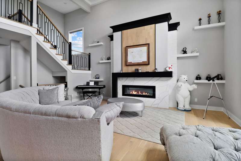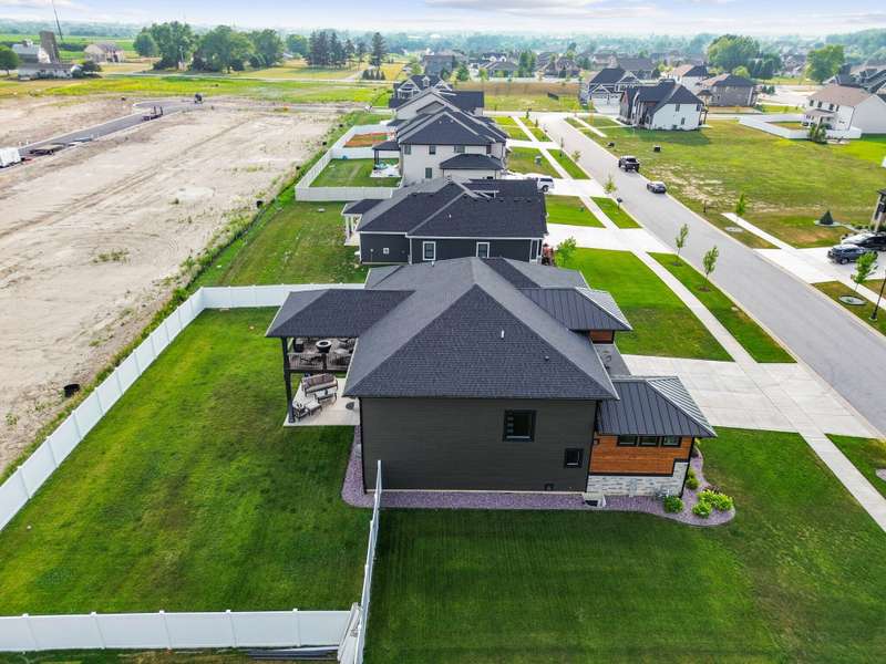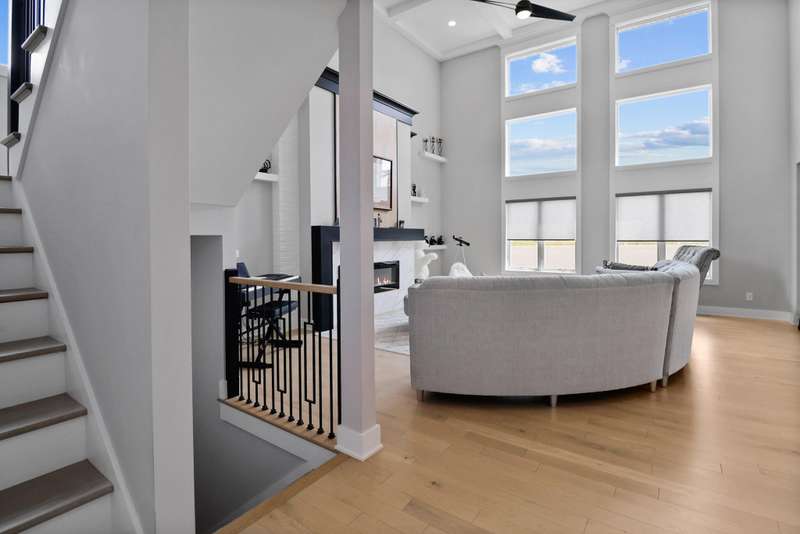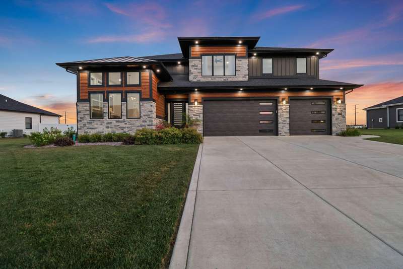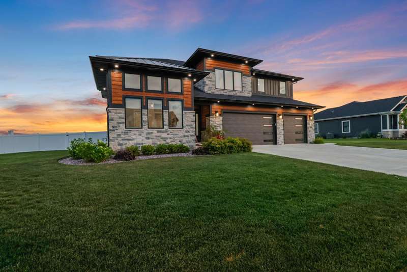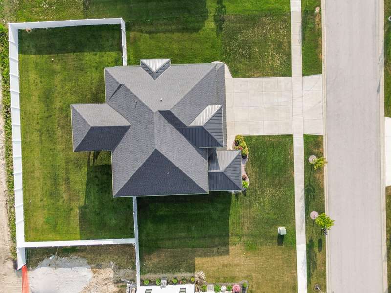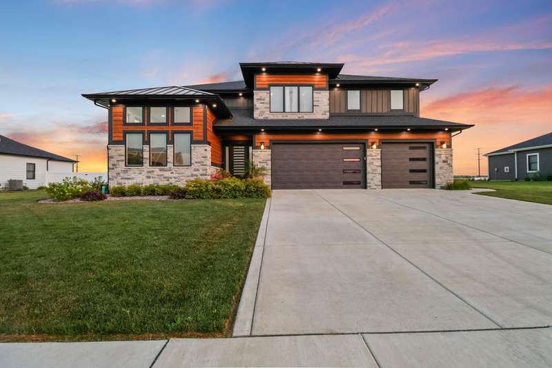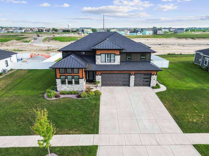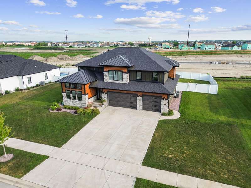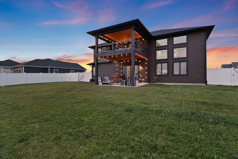This custom-built home showcases a perfect blend of elegance and functionality, spanning over 5,000 finished square feet. With 2,200 square feet of solid oak flooring and distinctive brick interior pillars, custom ceilings and walls throughout, it offers a unique aesthetic. Numerous windows amplify natural light, while the great room features a striking fireplace with wood accents as its focal point. The main level includes a convenient 3/4 bath for guests, along with a gourmet kitchen that boasts a massive waterfall island, double ovens, and a wine bar. The oversized master suite presents a luxurious spa-like bathroom, complete with a soaker tub and a custom tiled walk-in shower, along with a private cedar deck. Each generously sized bedroom contributes to the spacious feel. The finished basement offers a cozy TV area, a game space, entertainment area and an additional bedroom, and a bathroom. Set on a large lot with a sprinkler irrigation system, the home includes an oversized 3.5 car garage that's fully finished with epoxy flooring and 220-amp service for electric vehicle charging. Additional features include a durable metal roof, a covered patio, a custom front door, maintenance-free fencing, and 22 can lights for a stunning nighttime display. Conveniently located near major commute routes, schools, shopping centers, and restaurants, this home truly has it all.