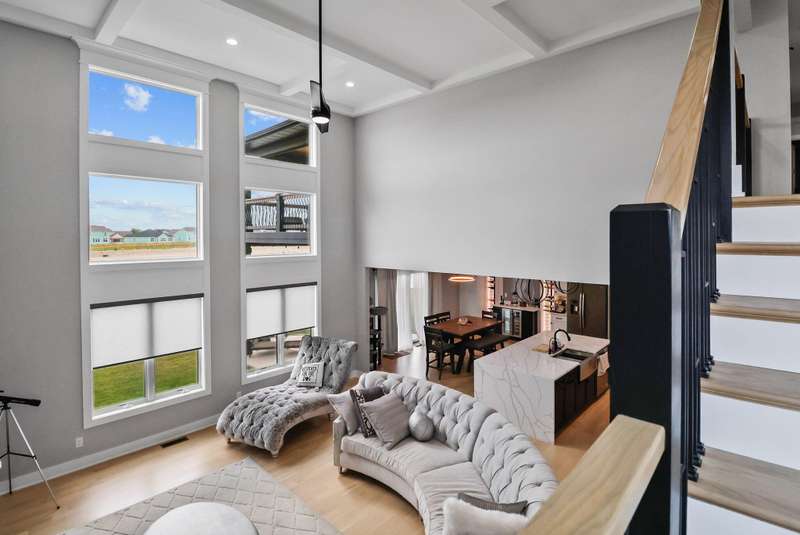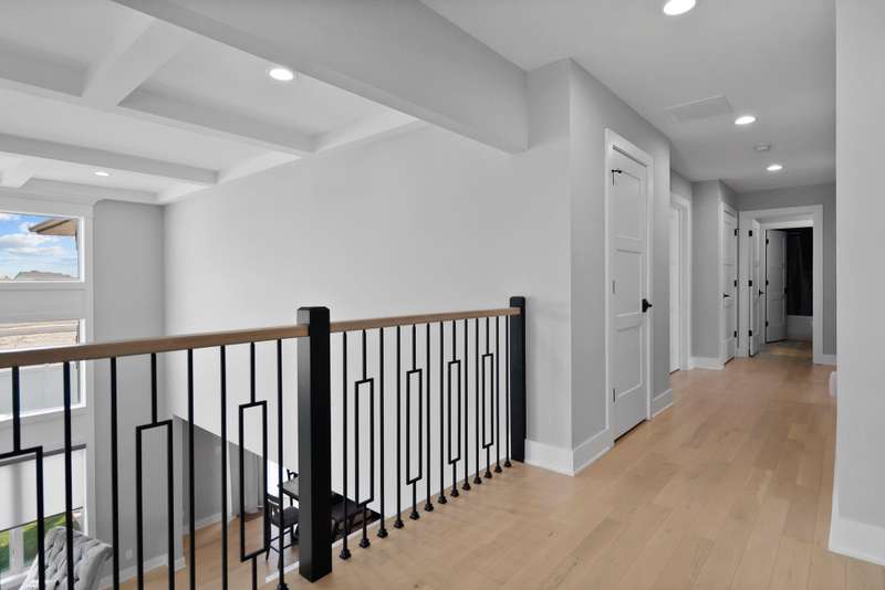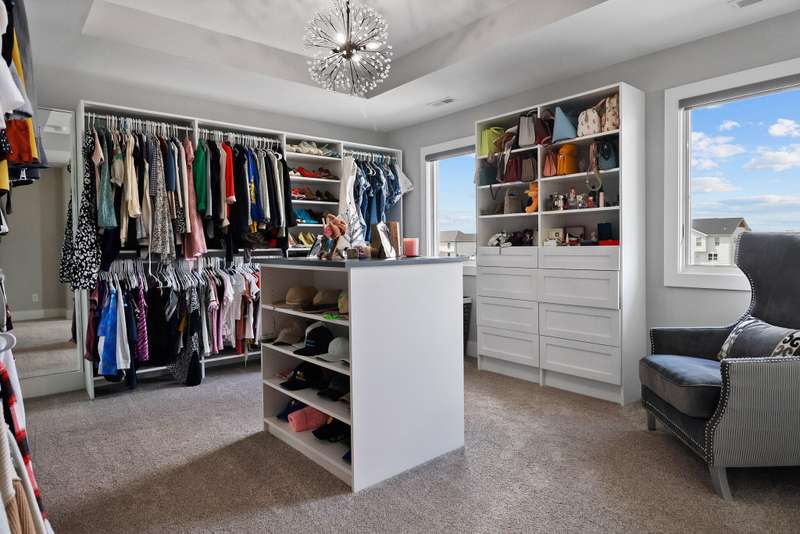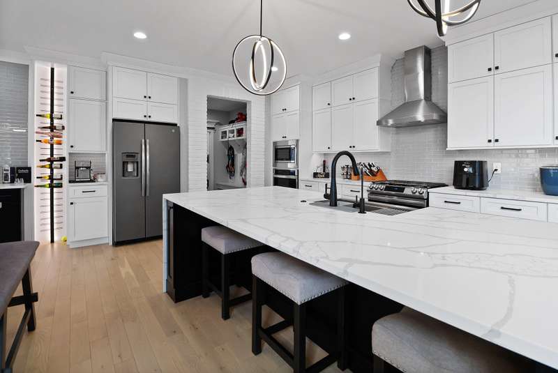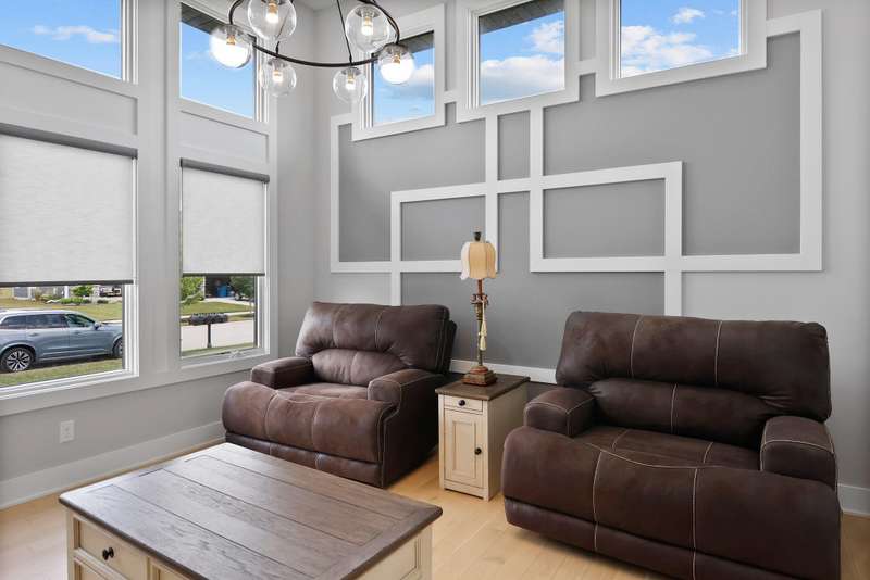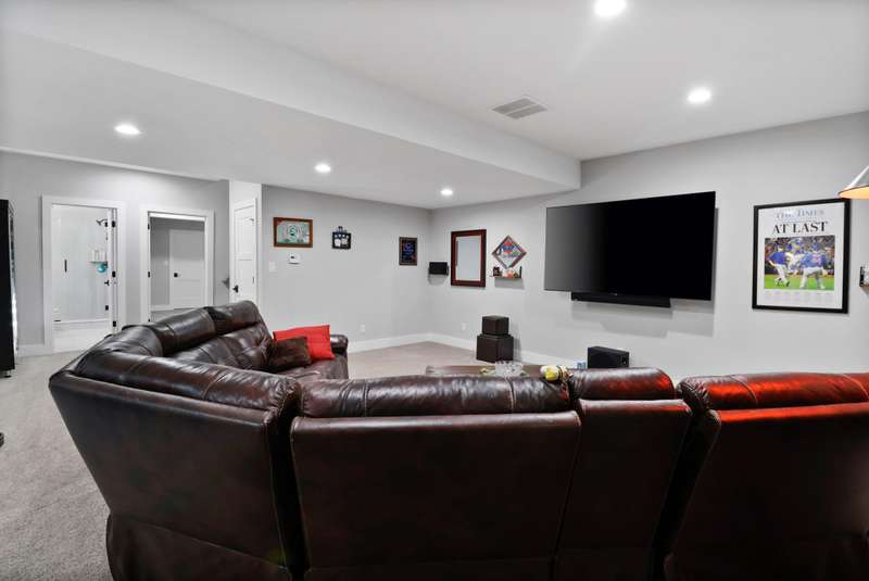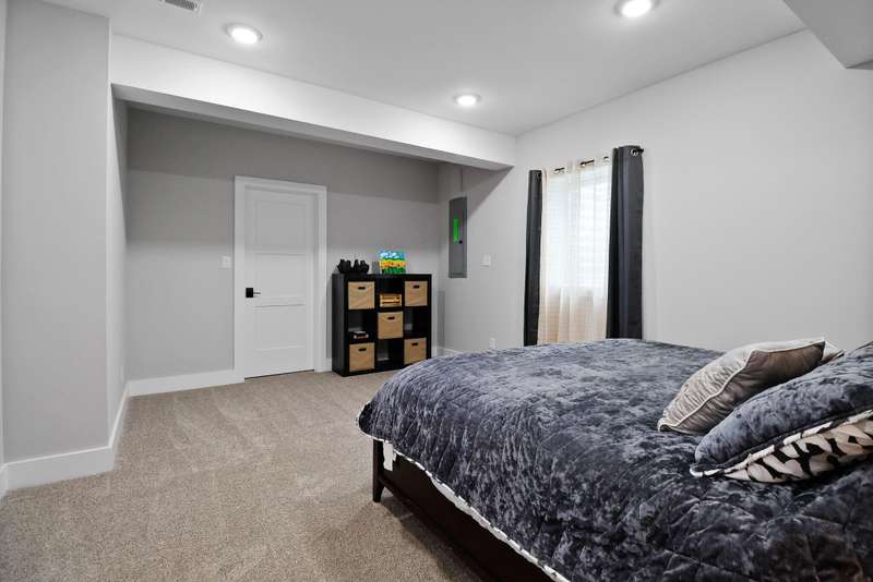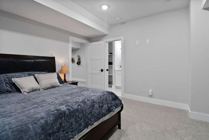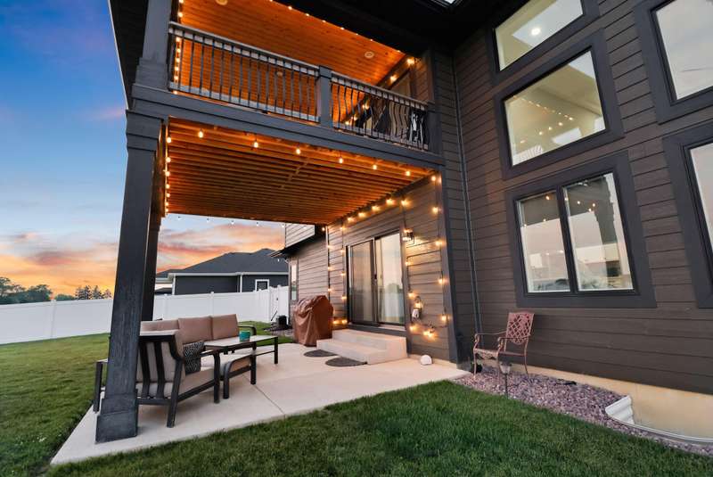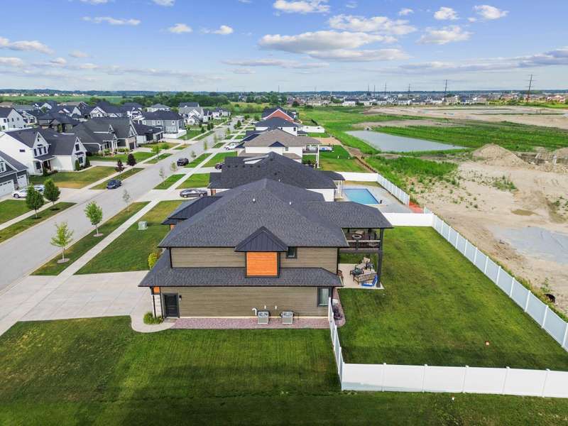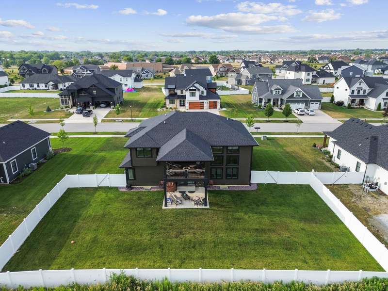 This custom-built home showcases a perfect blend of elegance and functionality, spanning over 5,000 finished square feet. With 2,200 square feet of solid oak flooring and distinctive brick interior pillars, custom ceilings and walls throughout, it offers a unique aesthetic. Numerous windows amplify natural light, while the great room features a striking fireplace with wood accents as its focal point. The main level includes a convenient 3/4 bath for guests, along with a gourmet kitchen that boasts a massive waterfall island, double ovens, and a wine bar. The oversized master suite presents a luxurious spa-like bathroom, complete with a soaker tub and a custom tiled walk-in shower, along with a private cedar deck. Each generously sized bedroom contributes to the spacious feel. The finished basement offers a cozy TV area, a game space, entertainment area and an additional bedroom, and a bathroom. Set on a large lot with a sprinkler irrigation system, the home includes an oversized 3.5 car garage that's fully finished with epoxy flooring and 220-amp service for electric vehicle charging. Additional features include a durable metal roof, a covered patio, a custom front door, maintenance-free fencing, and 22 can lights for a stunning nighttime display. Conveniently located near major commute routes, schools, shopping centers, and restaurants, this home truly has it all.