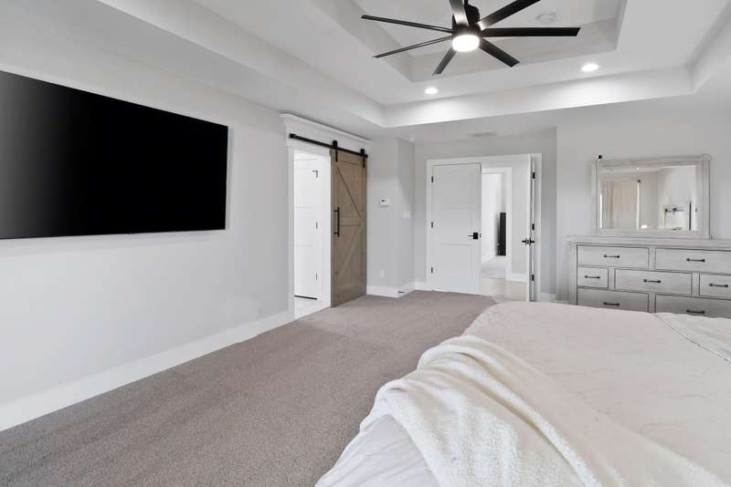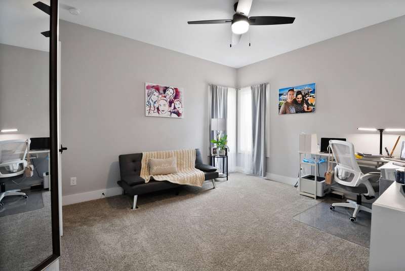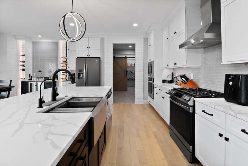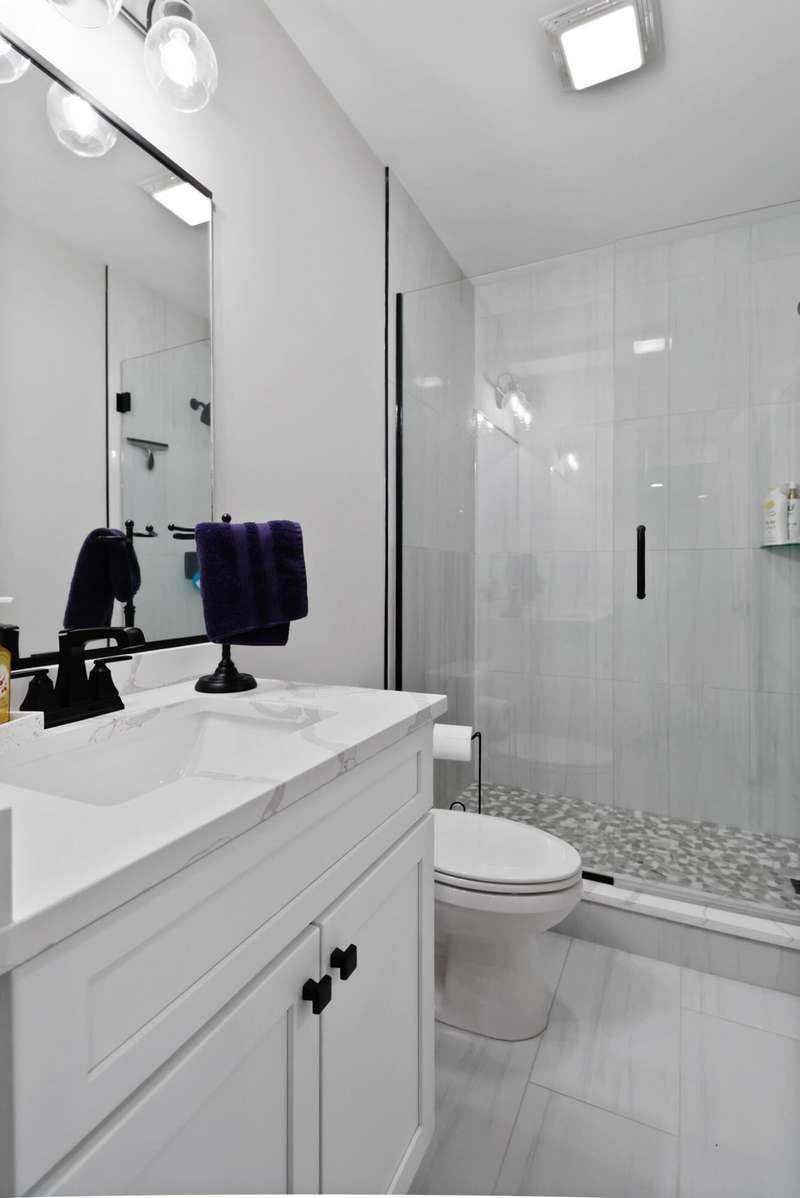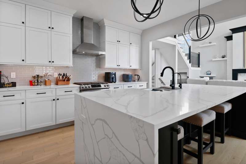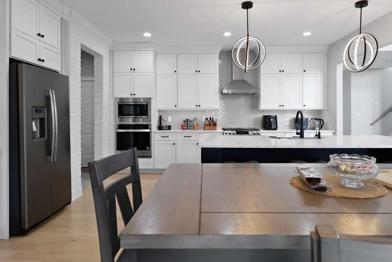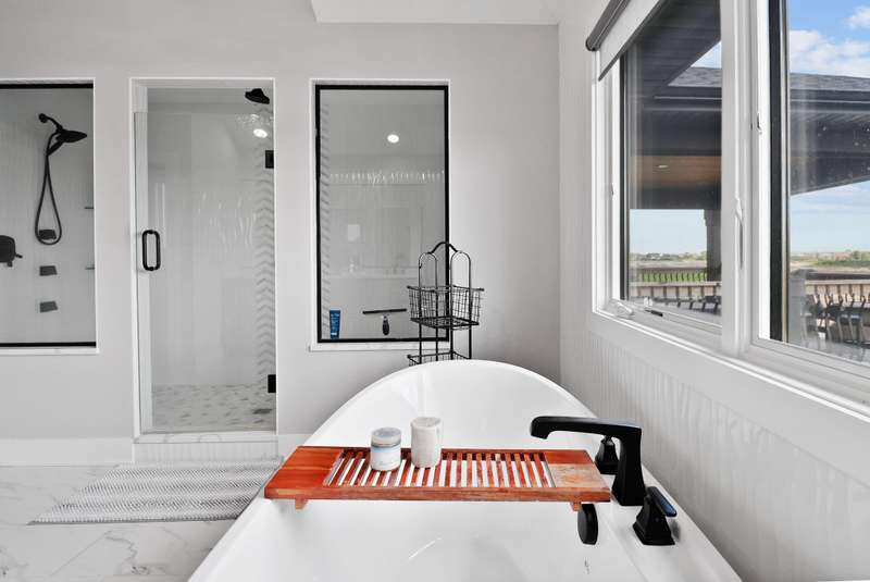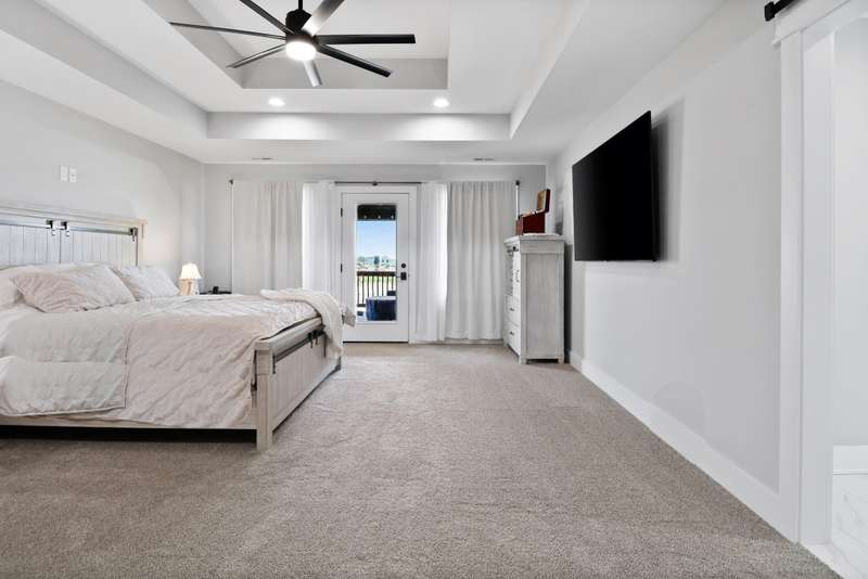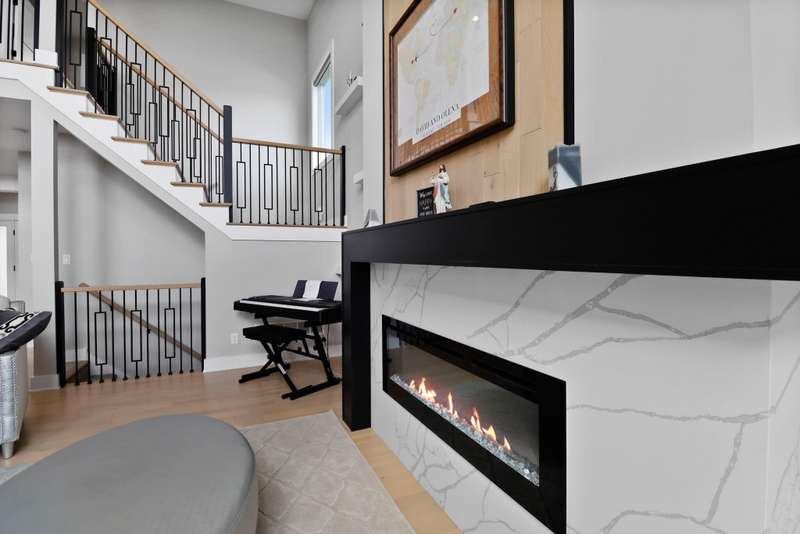 This custom-built home showcases a perfect blend of elegance and functionality, spanning over 5,000 finished square feet. With 2,200 square feet of solid oak flooring and distinctive brick interior pillars, custom ceilings and walls throughout, it offers a unique aesthetic. Numerous windows amplify natural light, while the great room features a striking fireplace with wood accents as its focal point. The main level includes a convenient 3/4 bath for guests, along with a gourmet kitchen that boasts a massive waterfall island, double ovens, and a wine bar. The oversized master suite presents a luxurious spa-like bathroom, complete with a soaker tub and a custom tiled walk-in shower, along with a private cedar deck. Each generously sized bedroom contributes to the spacious feel. The finished basement offers a cozy TV area, a game space, entertainment area and an additional bedroom, and a bathroom. Set on a large lot with a sprinkler irrigation system, the home includes an oversized 3.5 car garage that's fully finished with epoxy flooring and 220-amp service for electric vehicle charging. Additional features include a durable metal roof, a covered patio, a custom front door, maintenance-free fencing, and 22 can lights for a stunning nighttime display. Conveniently located near major commute routes, schools, shopping centers, and restaurants, this home truly has it all.
