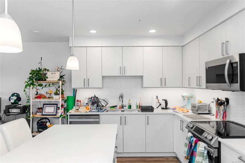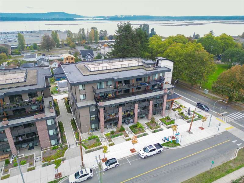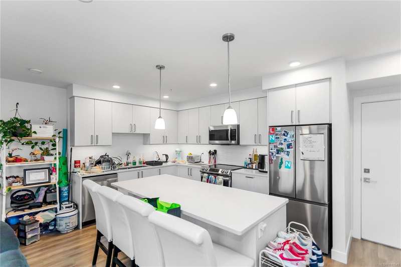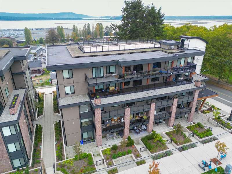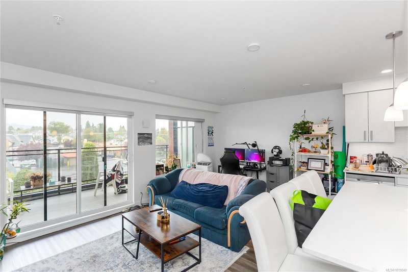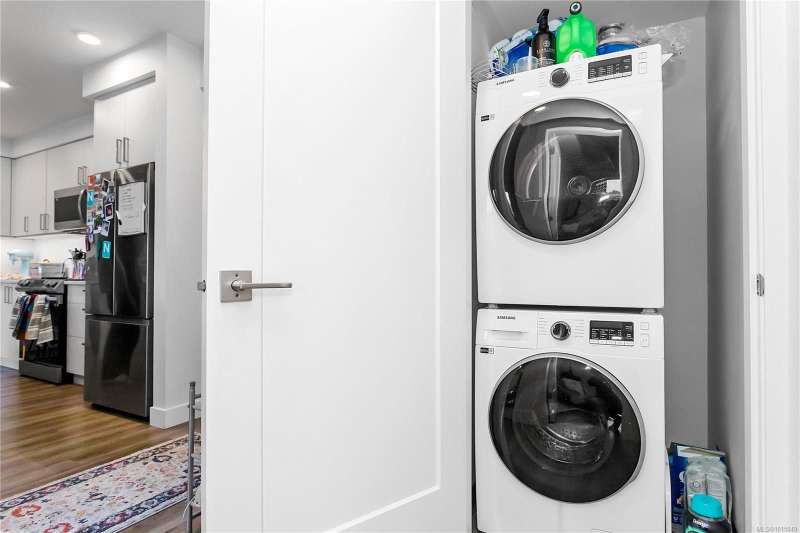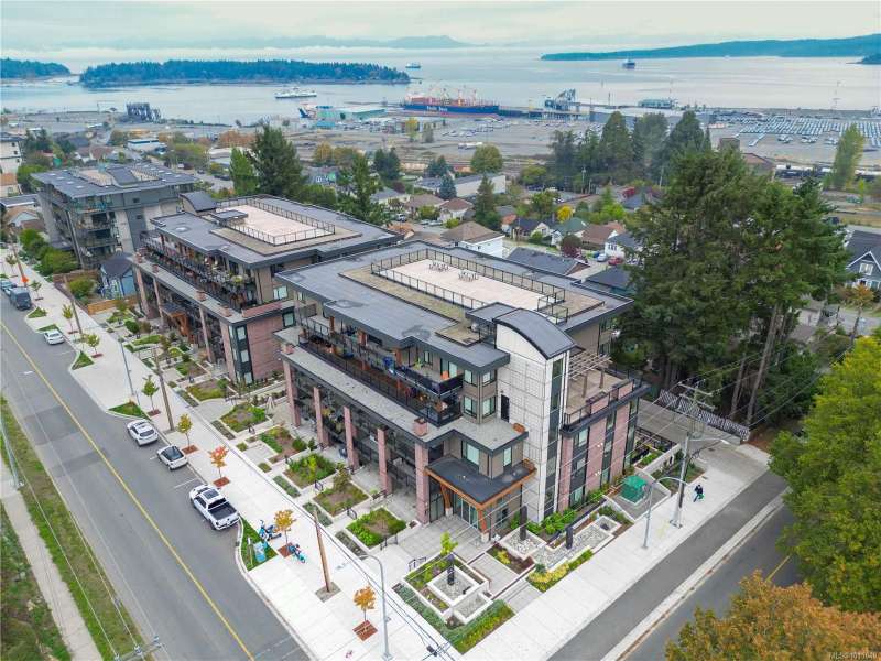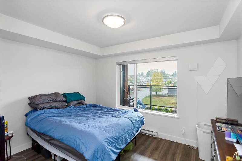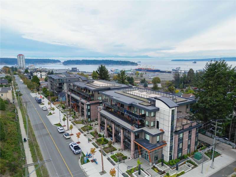 Welcome to Unit 502 at 147 Haliburton Street in South Nanaimo—a bright and modern 1 bedroom, 1 bathroom condo on the top floor with stunning Mount Benson views. This thoughtfully designed condo features a stylish kitchen with stainless steel appliances, quartz countertops, and a large island, flowing seamlessly into the open-concept living space. Step out onto your spacious balcony to enjoy sunsets and fresh air. The generous bedroom is paired with a full 4-piece bath and convenient in-suite laundry. Residents will also appreciate the common rooftop patio, offering incredible city and mountain views. With low strata fees, secure entry, and excellent tenants already in place, this home is ideal for both investors and homeowners alike. Situated in a growing neighbourhood close to downtown amenities, the waterfront, and transit, this property offers modern living in a prime location.