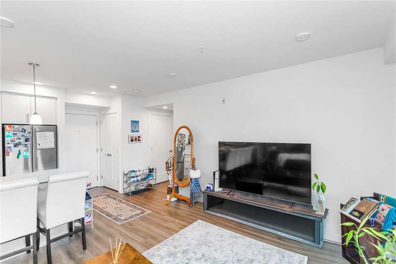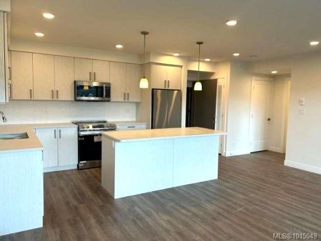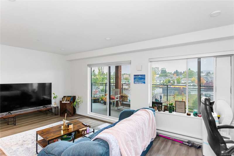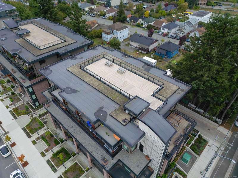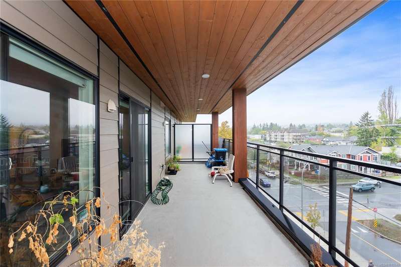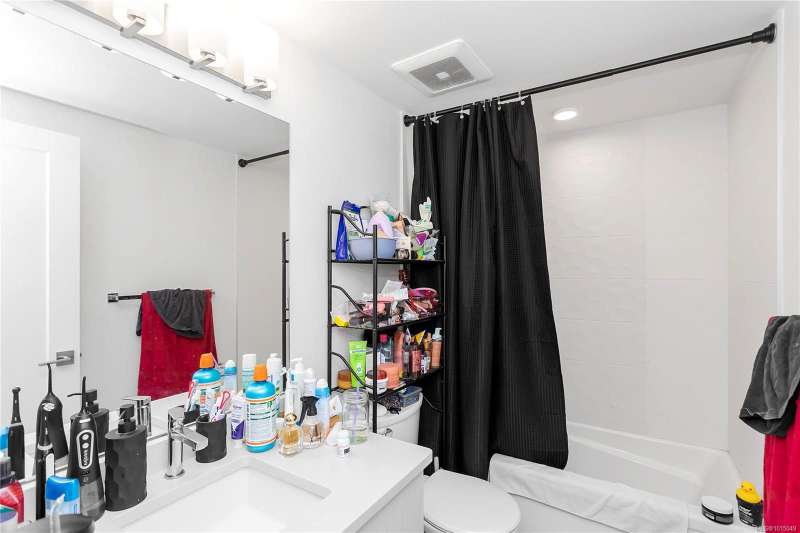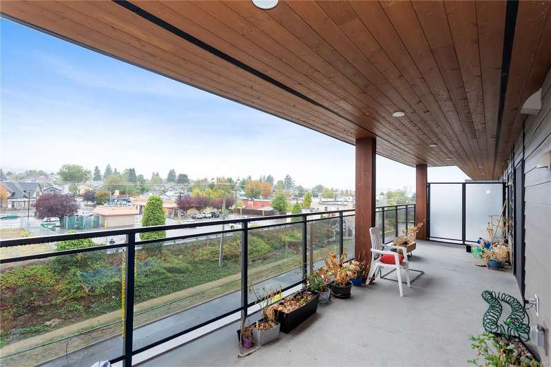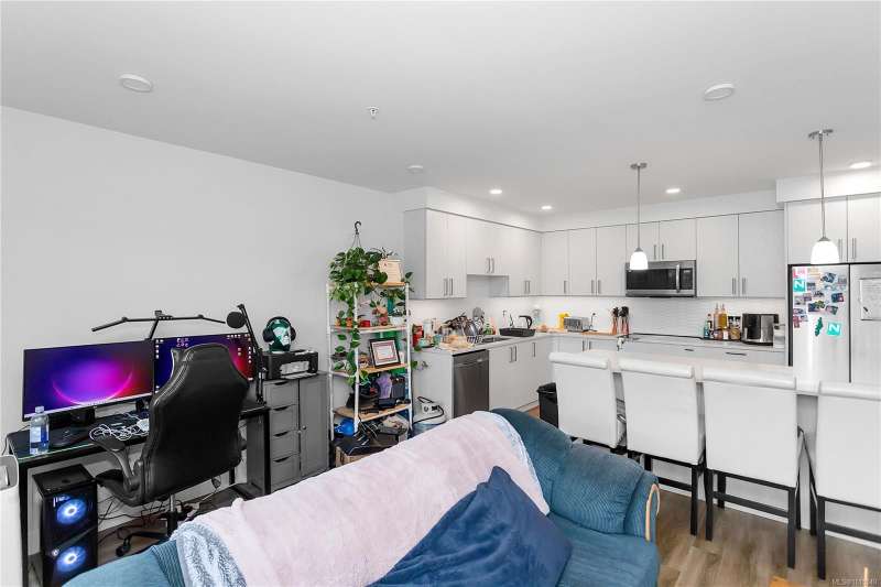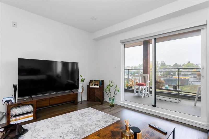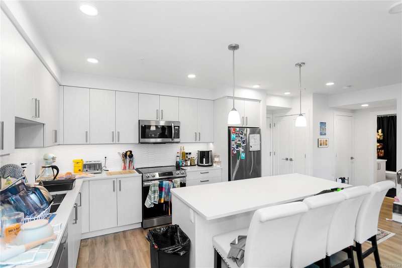 Welcome to Unit 502 at 147 Haliburton Street in South Nanaimo—a bright and modern 1 bedroom, 1 bathroom condo on the top floor with stunning Mount Benson views. This thoughtfully designed condo features a stylish kitchen with stainless steel appliances, quartz countertops, and a large island, flowing seamlessly into the open-concept living space. Step out onto your spacious balcony to enjoy sunsets and fresh air. The generous bedroom is paired with a full 4-piece bath and convenient in-suite laundry. Residents will also appreciate the common rooftop patio, offering incredible city and mountain views. With low strata fees, secure entry, and excellent tenants already in place, this home is ideal for both investors and homeowners alike. Situated in a growing neighbourhood close to downtown amenities, the waterfront, and transit, this property offers modern living in a prime location.