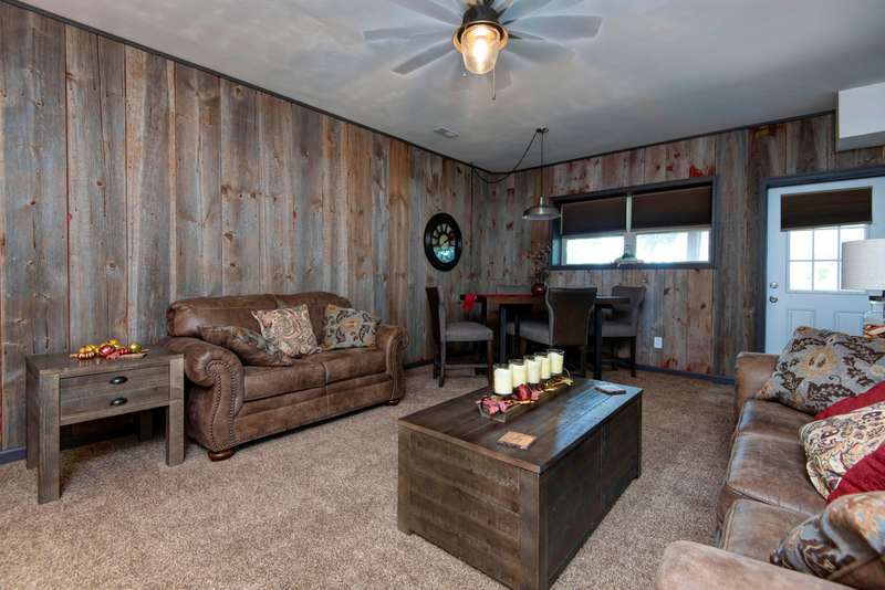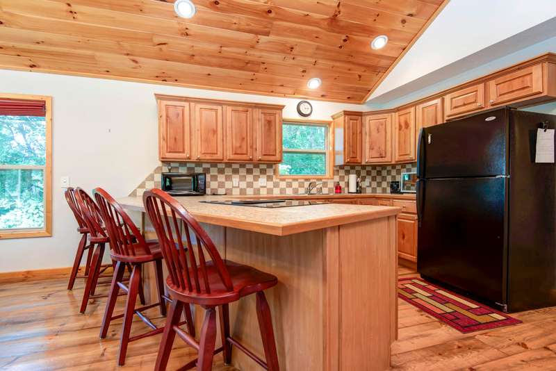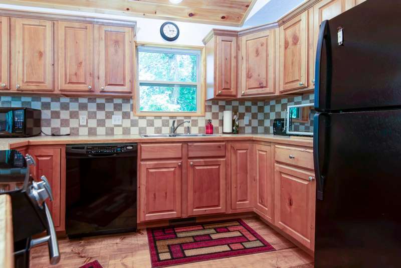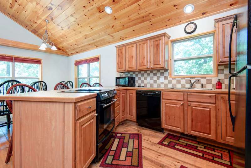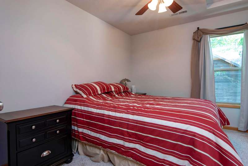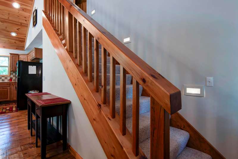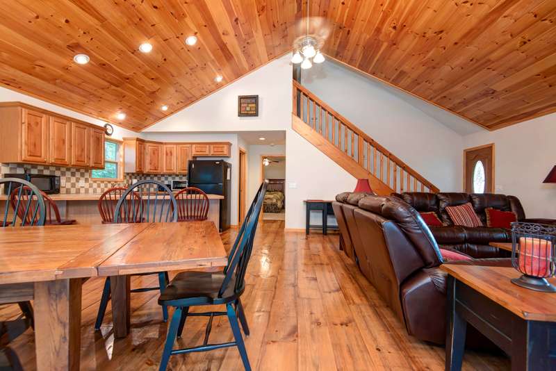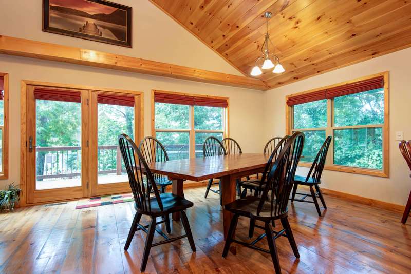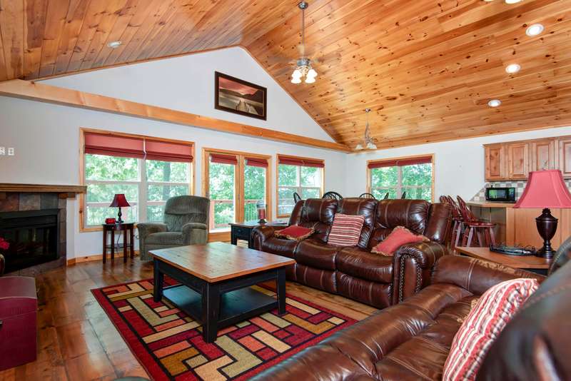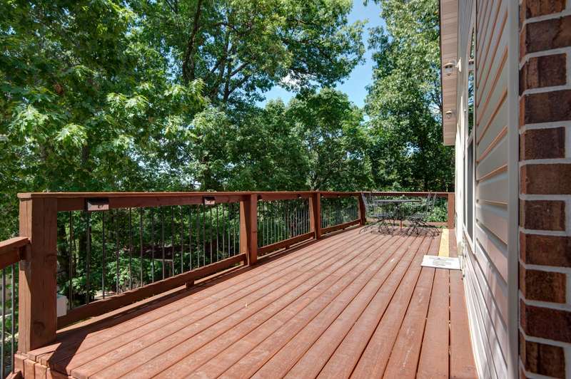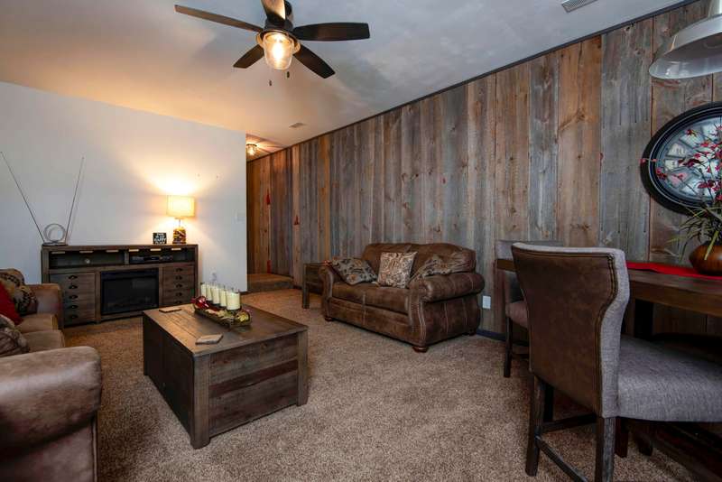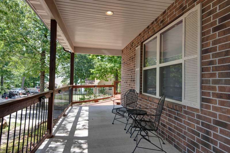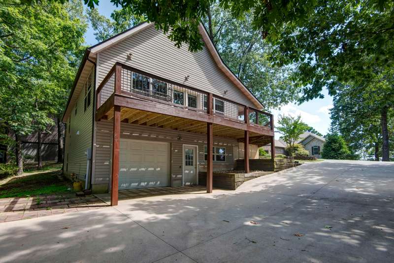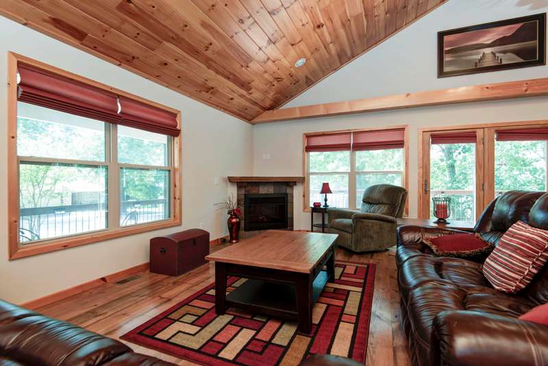 This NICELY FURNISHED 4-Bedroom, 4-Bath Home has the charm of a lodge home and is conveniently located near Table Rock Lake. Only minutes to Thunder Ridge Arena and Big Cedar Lodge; its just off the beaten path in quiet Lakewood Terrace Subdivison. The interior boasts an open floor plan with high vaulted knotty pine ceilings in the great room, a spacious dining area for large gatherings, wide plank wood flooring, and a kitchen with alder wood cabinets & eating bar. The main level has oversized master bedroom with walk-in closet, laundry room, and 2 baths. The upper level has 2 bedrooms & 1 bath. The lower level has 1 bedroom, 1 bath, a family room with exterior exit, plus a 1-car garage. Outside, a fully covered front porch provides perfect cover for relaxing with a cup of coffee on rainy days, in addition to a side wood deck. This home would make a great vacation or second home. It has been a second home with the current owner, and has been well maintained with very little normal wear & tear! Plus, wonderful furnishings are included! It has a very limited winter lakeview from the deck, but the lake is closeby.
