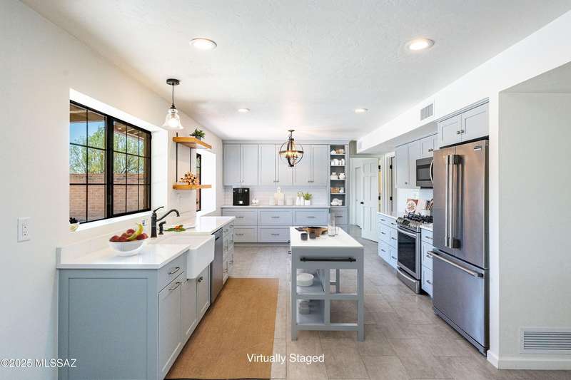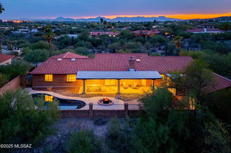 This updated, impeccable Chastain-built home on .77 ac in River Hills Estates will be a treasure for its new owner! Tranquil backyard with pool has unparalleled privacy, views of mountains, desert, sunrise, open skies. Sunset views from front. Incredibly appointed 'Chef's Kitchen' is equally elegant and functional. Gas beehive fireplace in adj great room adds ambiance, as do formal living/dining areas. Owner's suite has a clerestory window, luxurious bath, lg walk-in. Two add'l bedrooms, hall bath. Fourth bedroom/guest room w/en-suite bath. Detached matching studio is heated/cooled. Newer tile flooring, HVAC unit, water heater, electrical panel, pool equip.. Live in a quiet foothills area, yet enjoy the convenience of Whole Foods, Walgreens, Natural Grocers, Petco...four minutes away!