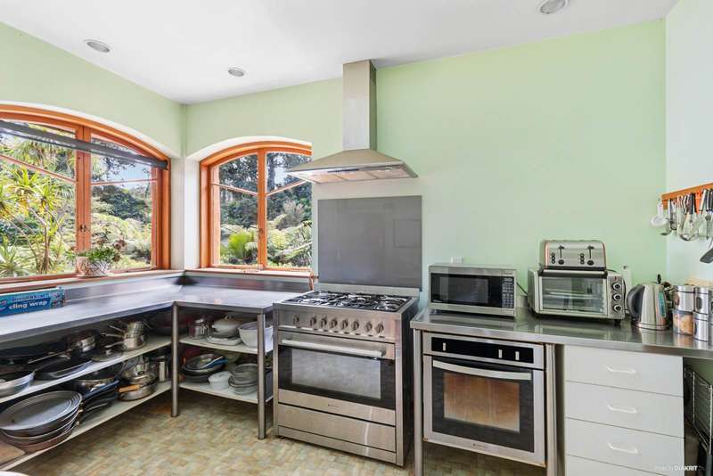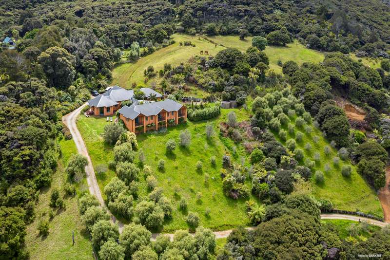 This luxurious family retreat is situated on 5 hectares featuring panoramic vistas over lush native bush, Tryphena Harbour, the Coromandel and Rangitoto Island in the background. Impressive in its substantial lodgings and surrounding natural beauty. The main building consists of a spacious and relaxing lounge that showcases the stunning view, a large kitchen, entrance foyer, basement wine cellar and sumptuous master bedroom with ensuite. Connected via covered walkways and beautiful landscaping are three units each with their own bathroom and tea/coffee making facilities that can be utilised by friends and family. Each of the three double rooms open onto their own private balcony where guests can enjoy the spectacular water and valley views - a place to relax in the sun and listen to the birds symphony. Whether you're seeking a tranquil escape or entertaining friends and family, this property offers a truly idyllic island experience. With a helicopter pad at the top of the site or a short drive to the Stonewall Store, Currach Irish Pub and Tryphena village, convenience meets luxury in this exclusive retreat. This is an exceptional property in an exceptional location, the vendors have reduced their price to sell! Call now!