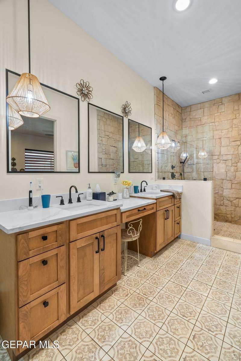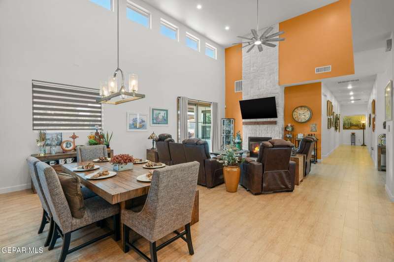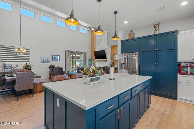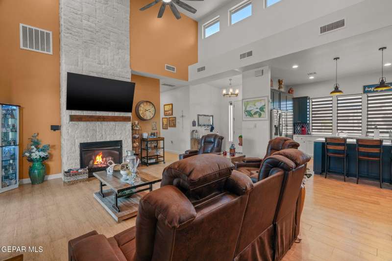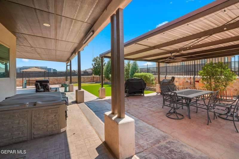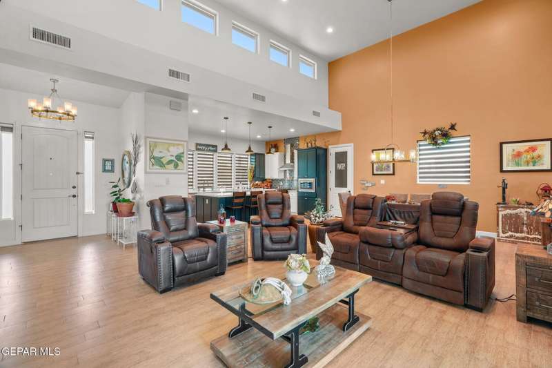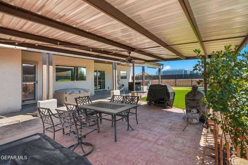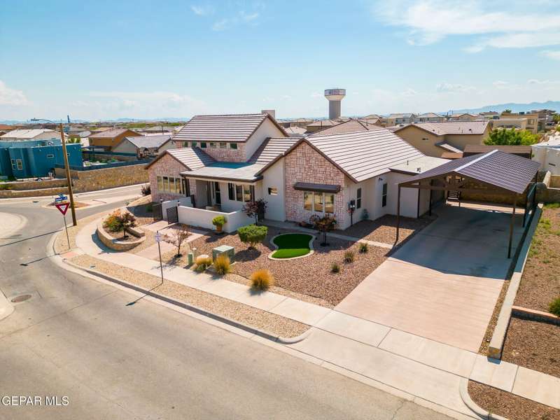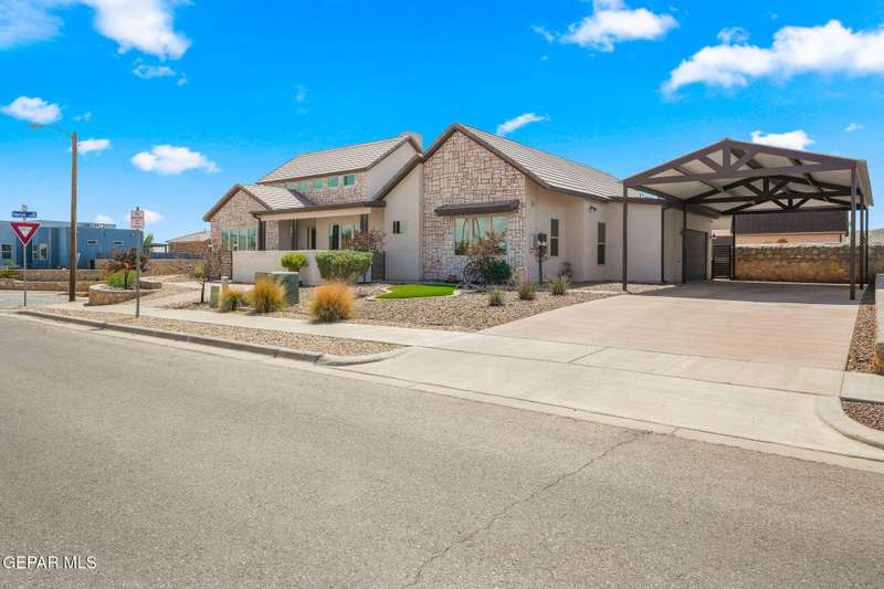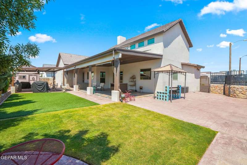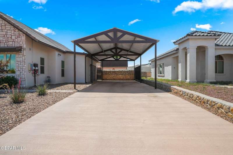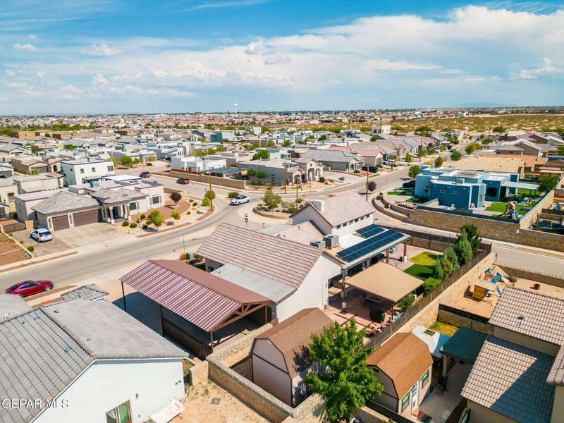 Step into luxury and lifestyle at this custom Kayton Lee masterpiece. With 4 bedrooms, 3 bathrooms, and 2,792 sq. ft. of living space, this home sits on an oversized double lot (11,752 sq. ft.) designed for comfort, entertaining, and modern living. Inside, soaring high ceilings and an open floor plan lead you into a gourmet kitchen fit for the inspired chef. Designer lighting and premium finishes carry throughout, creating a space that feels both stylish and inviting. Outside, your backyard transforms into an oasis with tiled patio, metal pergola, privacy fence, and low-maintenance Lawn Tuff turf in front and back. A metal carport, Tuff Shed, and seamless gutters add practicality while preserving curb appeal. This home's next-level upgrades: Erus Energy Solar System (pai Tankless AO Smith water heater + water softener Health Way Super V whole house air cleaner Pella sliding doors with silver security tint Designer lighting & perfection blinds throughout UL Class 3 50-Year Roof with insurance discount