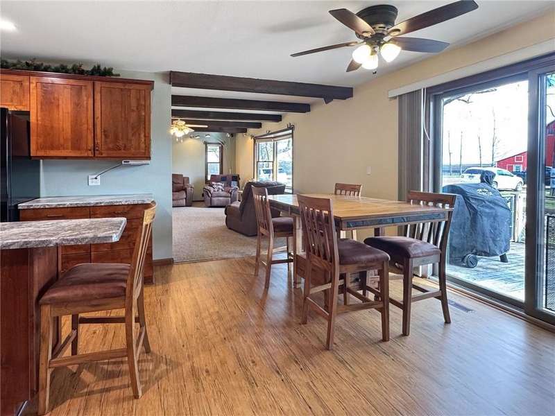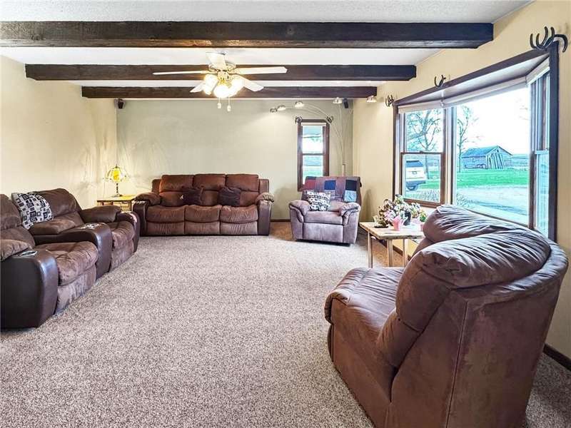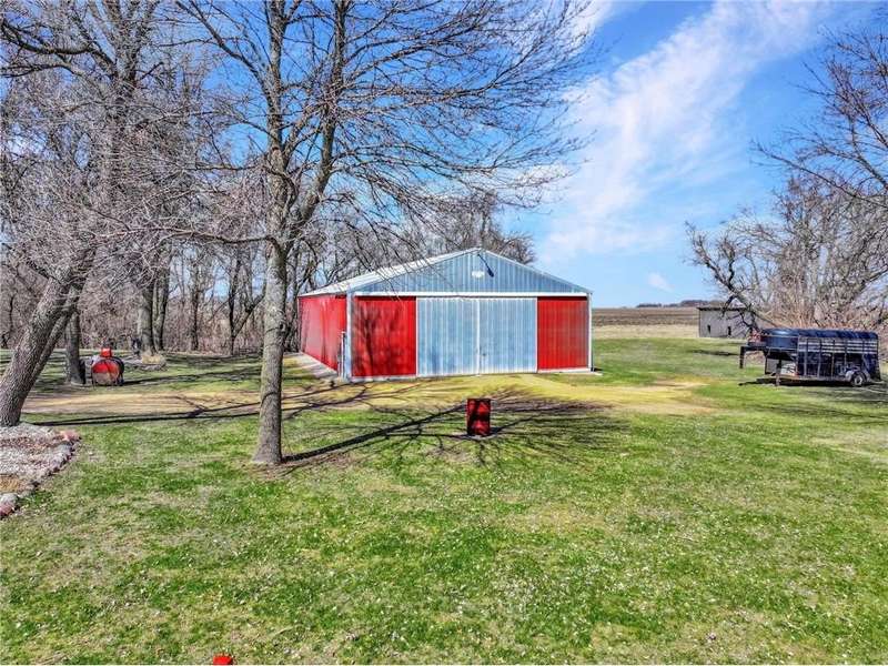 Country Living with Modern Comfort on 9.24 Acres – Right Off Hwy 59! Enjoy peaceful rural living with the convenience of paved highway access! This beautifully updated 3-bedroom, 2-bathroom home sits on 9.24 acres right along Hwy 59, offering the best of both worlds—privacy and easy access. Step inside to a stunning remodeled kitchen featuring knotty alder cabinets, ideal for gatherings and everyday living. The main floor boasts a large full bathroom with laundry, making single-level living completely possible. You'll also find a cozy living room, a dedicated office space, and additional living space in the finished basement—plenty of room to spread out. Outside, you'll love the functional outbuildings: A 40x60 machine shed with concrete floors—perfect for equipment, vehicles, or workshop space. A 38x40 barn with a classic tin roof and lean-tos on each side—ready for livestock or storage. A 22x28 attached garage plus a 20x24 detached garage—no shortage of space for your vehicles and toys. This is a rare opportunity to own a well-kept rural property that’s move-in ready and set up for hobby farming, storage, or simply enjoying open space. Whether you're looking to homestead, work from home, or just soak in the country air—this one's a must-see!
